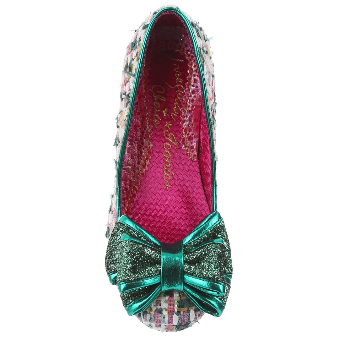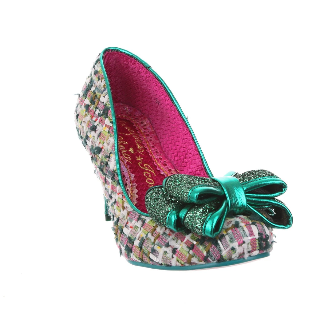 Something fabulous on your feet, these tweed mid heel courts are the perfect way to add something classy but fun to your wardrobe! The gorgeous green textured tweed is paired with a deep forest glitter bow on the toe and a shimmering jade tone metallic wrapped heel. Classically IC and sure to become instant faves!