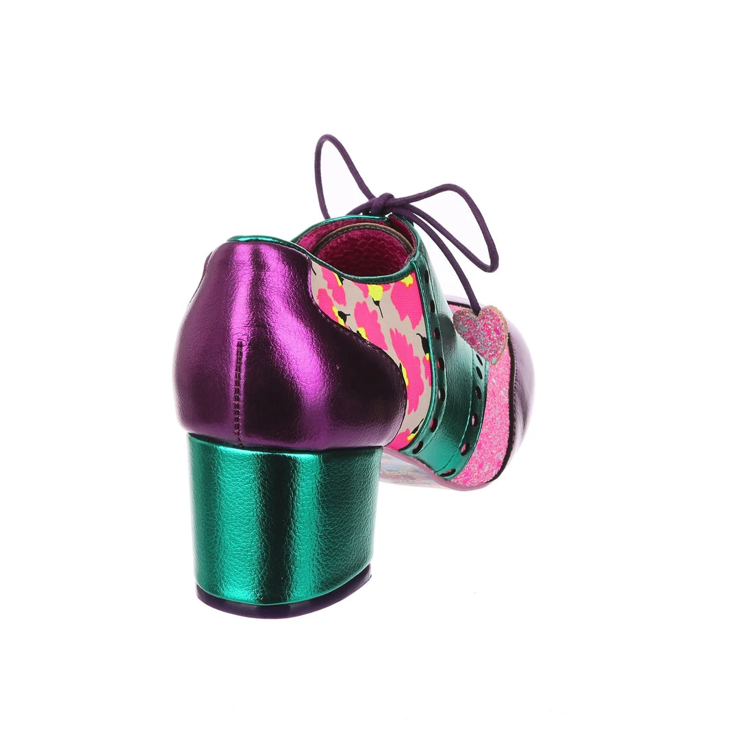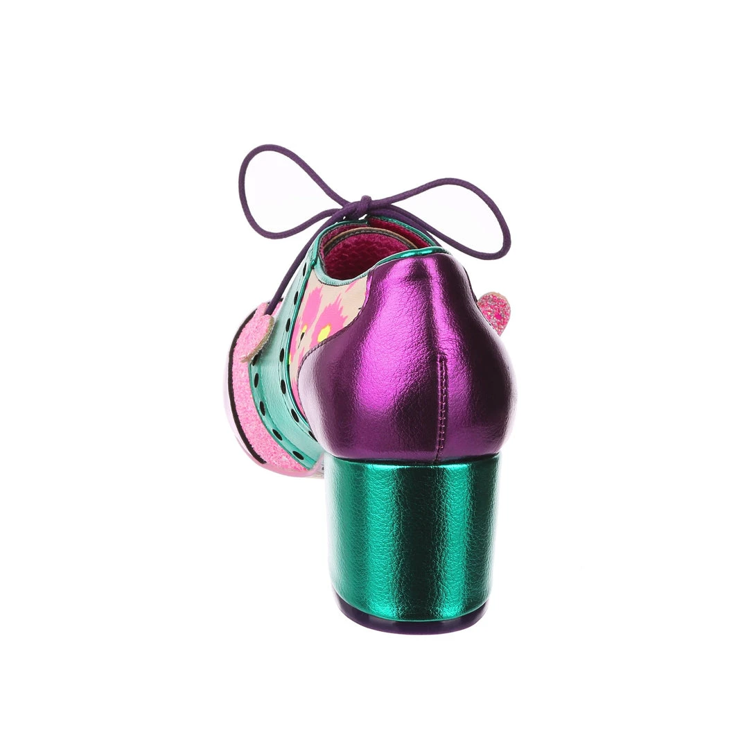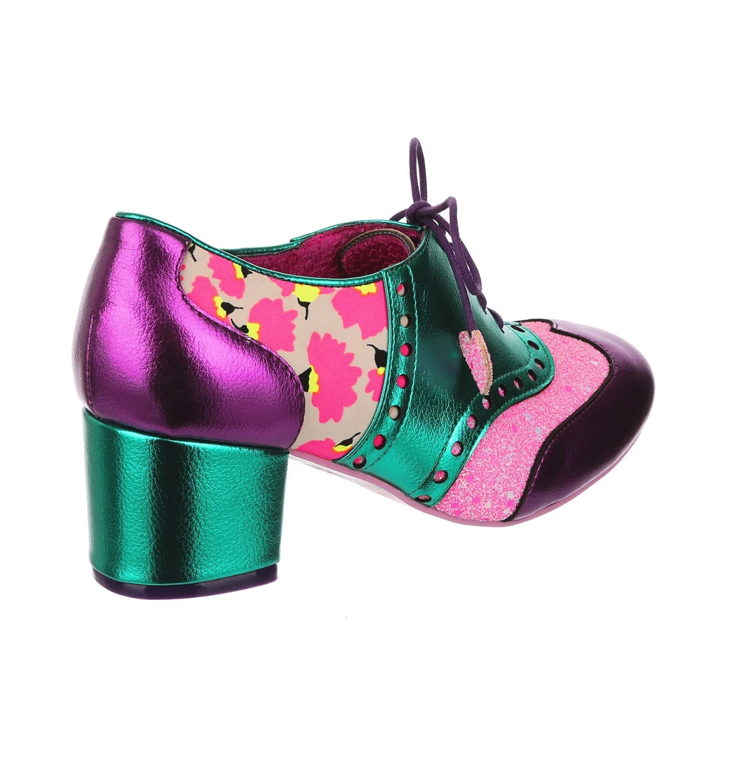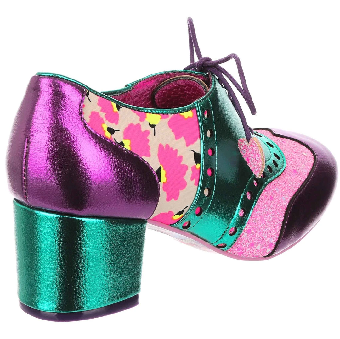 Lace up something lovely! A romantic brogue style pink shoe with a low wearable heel is the perfect shoe for the colder months. The mismatched panelled tones of pink in brushed metallic, iridescent glitter and brocade are all tied together with an elegant shoestring bow, tipped with glitter hearts! Perfect to pull any preppy outfit together, add them to your collection today!