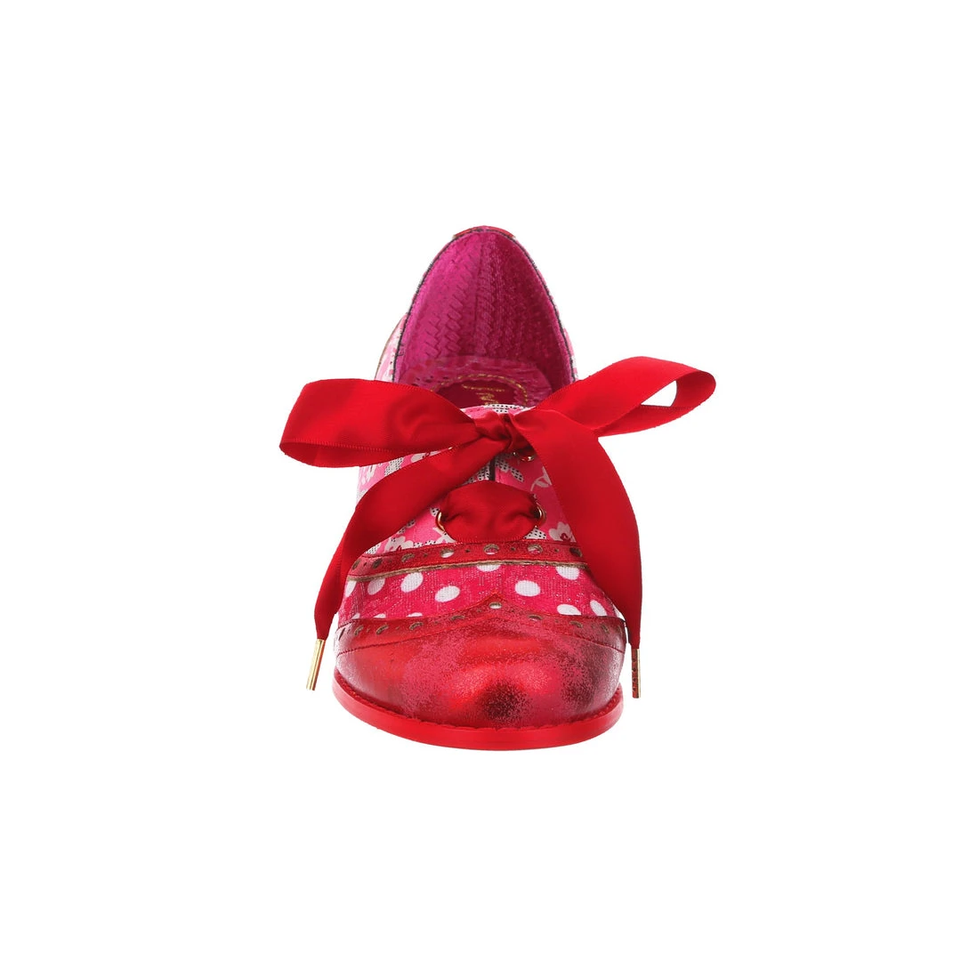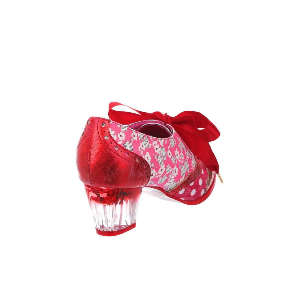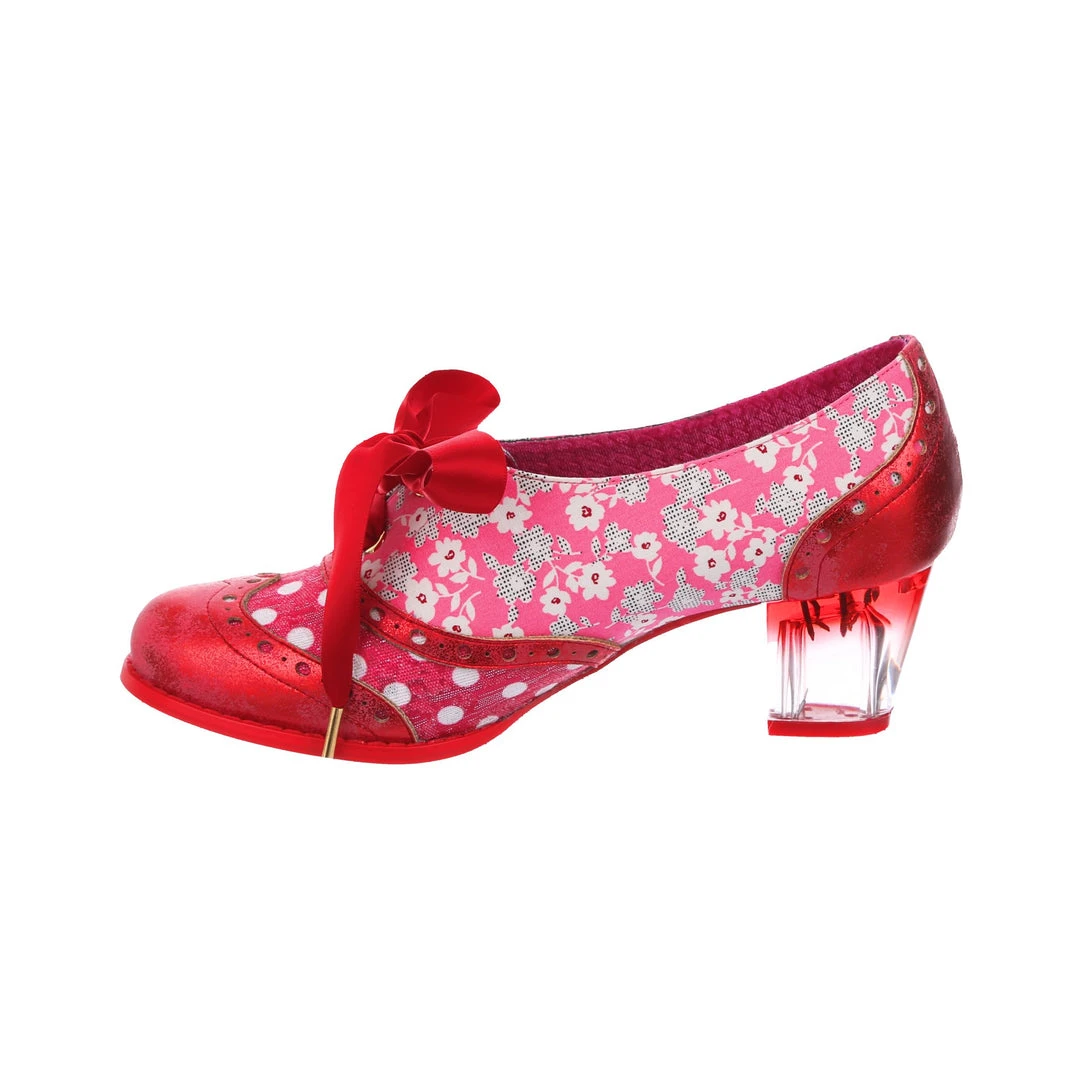 Lace up something lovely with these adorable vintage style mid heels! A combination of red toned floral, polkadots and metallics, these comfortable but fun heels have ribbon laces for ease of getting on and off and also feature our fave lucite heel – in a wearable midi height! Poised, preppy and perfect for you!