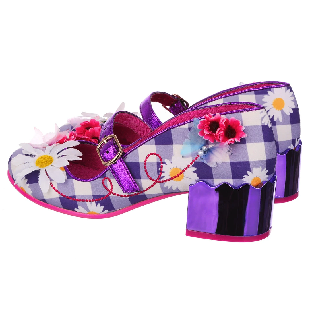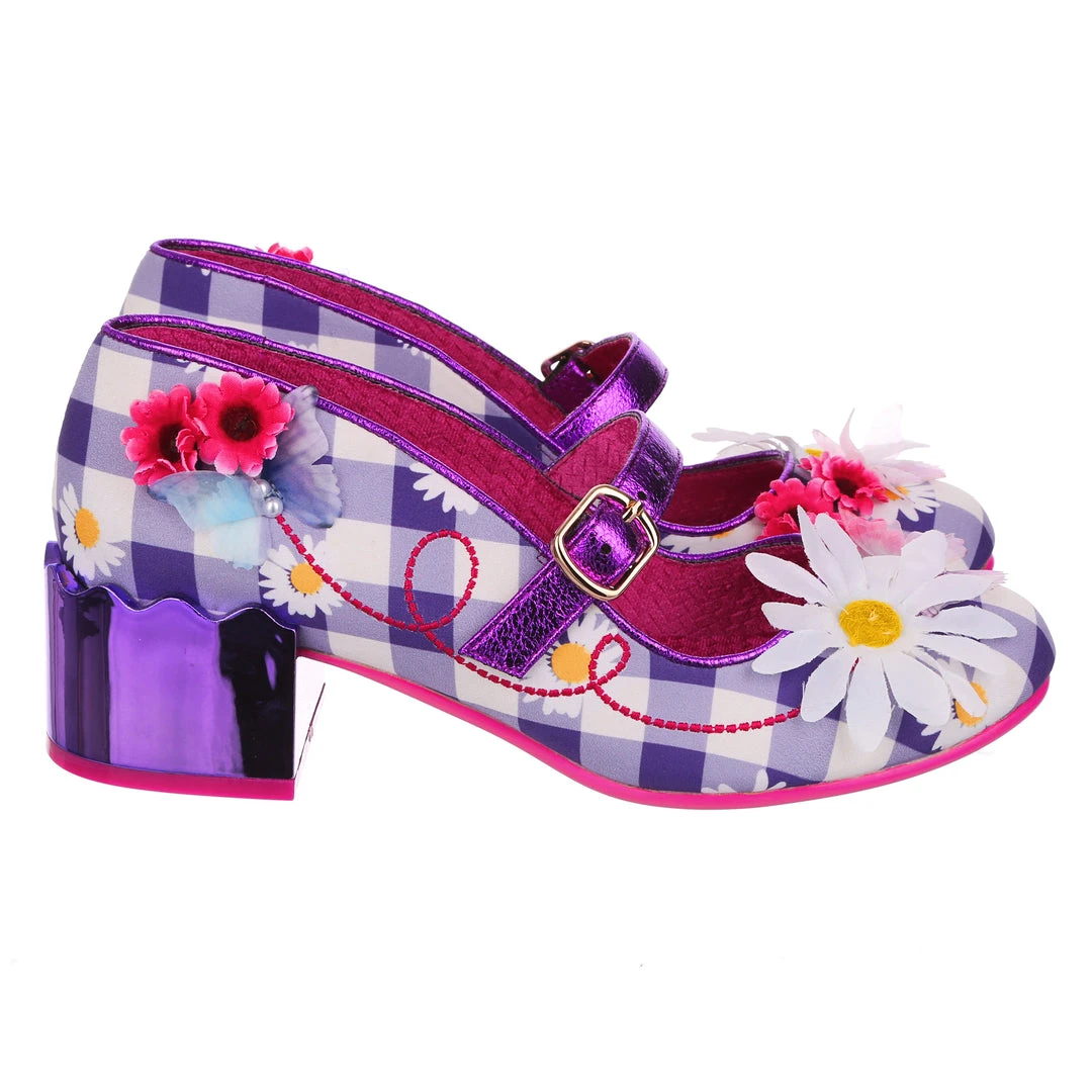 Buzzzzz buzzzzzzz… you’ll be buzzing along in these gingham mid heel beauties! Perfect posies are paired with gorgeous gingham in purple and white hues on these fabulous Mary Janes! The statement chunky mid heel is comfy and painted in a metallic plum, which matches the strap across the front of the shoes. 3D flowers are dotted around the toe and heel, accented with little butterflies and embroidered flight lines in hot pink around the edge of the foot! Perfect for all you summer lovers, and sure to brighten up any look!