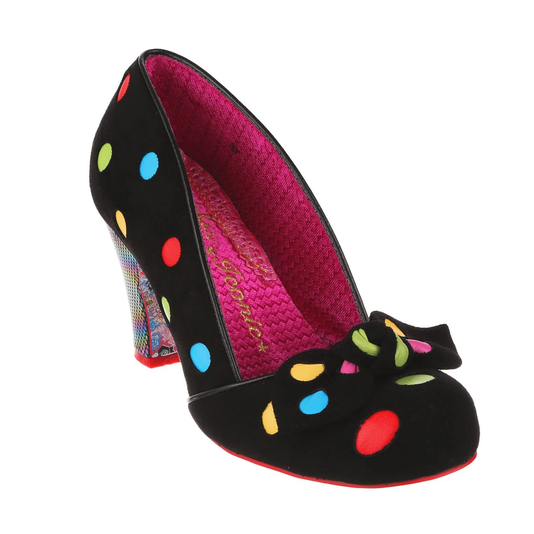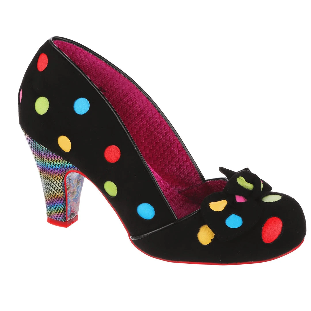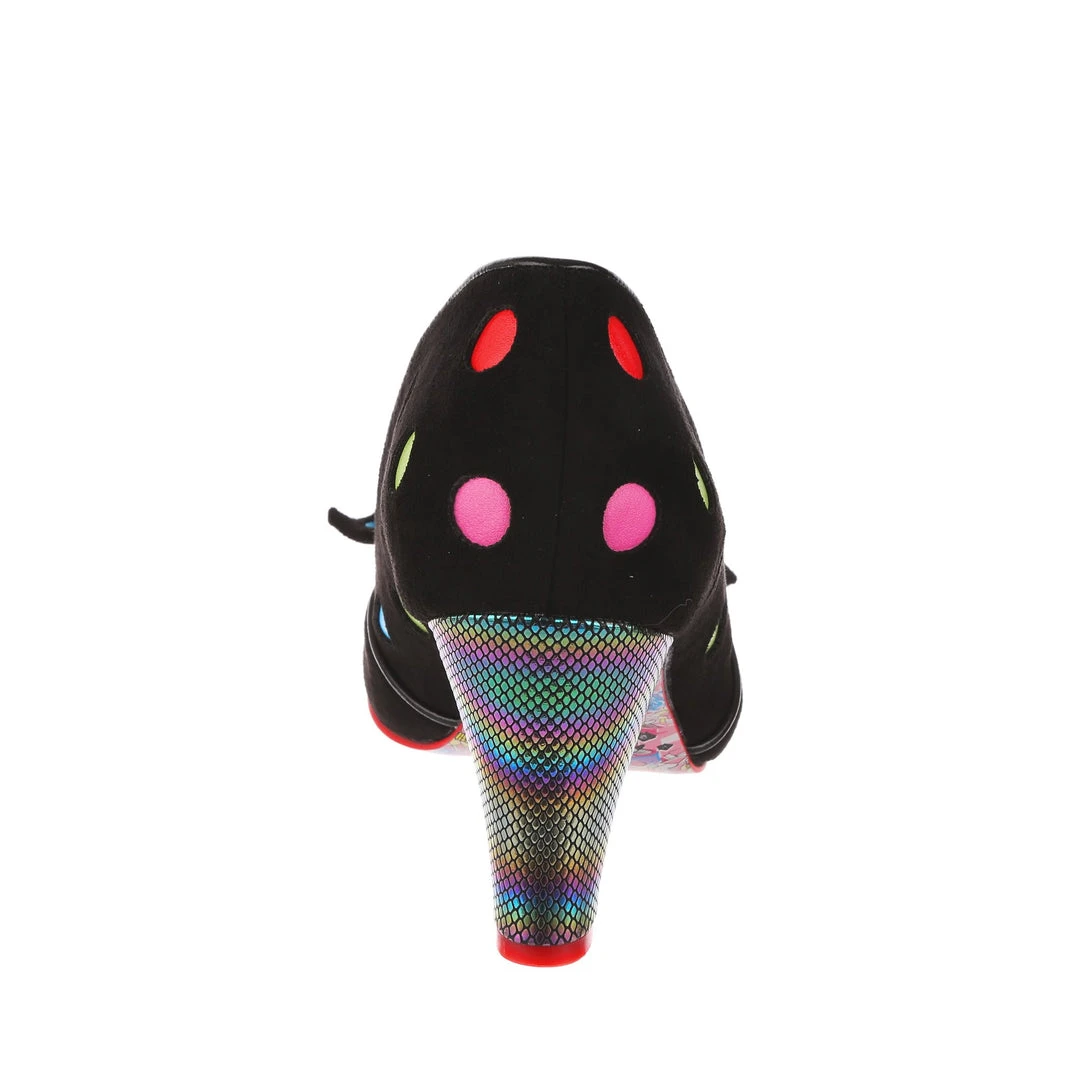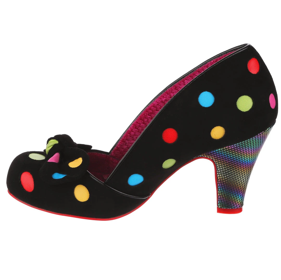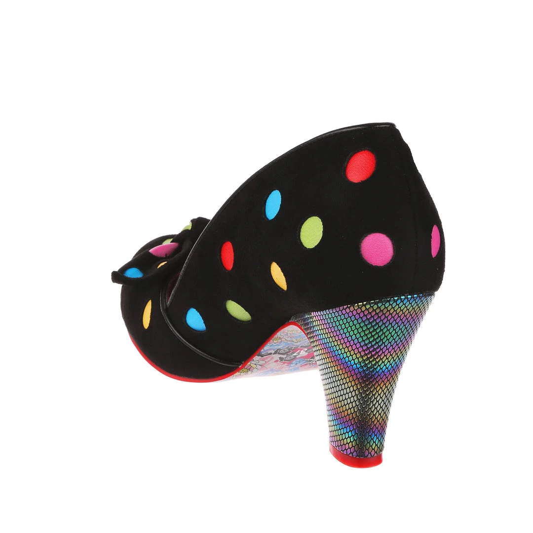 Can you spot the dot? These adorable heels are covered in super cute dot cutouts that reveal the multicoloured hues underneath! The upper is a fabulous black tone, which is complemented by the iridescent heel and sleek bound edge! Perfect to add a little POP of something fun to any outfit, take a look at these beauties today!
