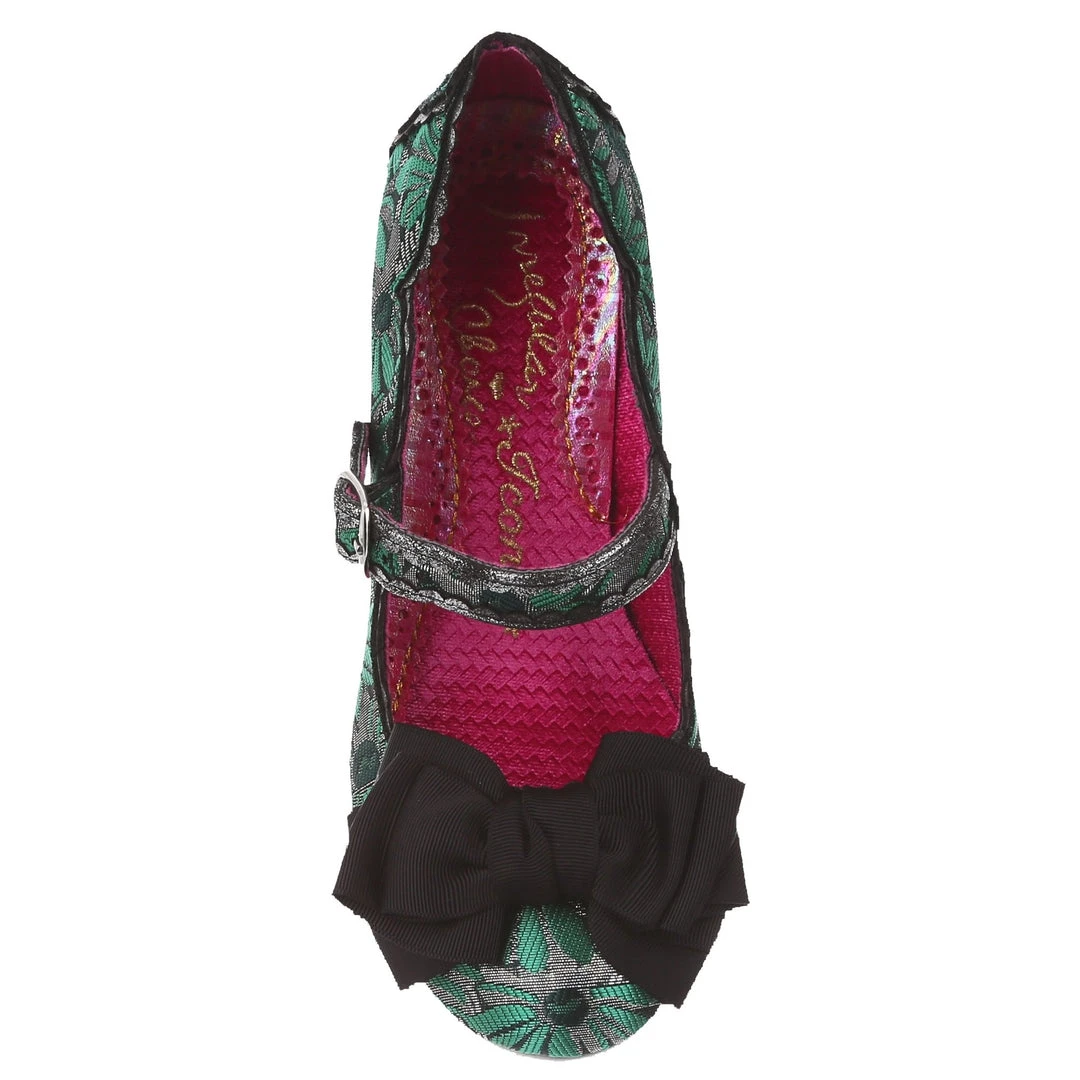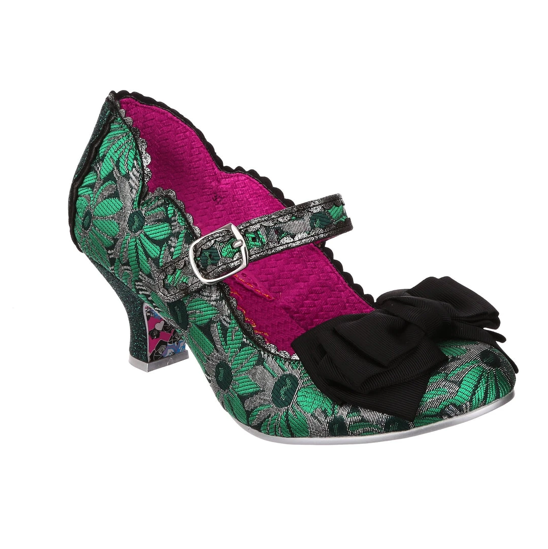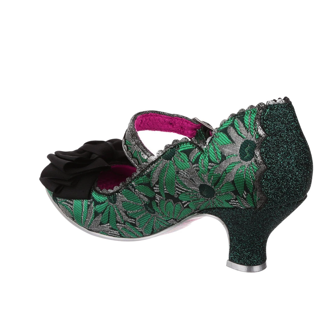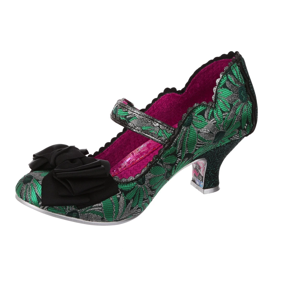 Oh who doesn’t love our classic Summer Breeze mary jane style? These fan favourite mid heels are back, this time in a stunning green and silver brocade – accented with a black bow, and a dark green metallic wrapped heel with matching back panelling. These vintage style shoes are bright, fun and fabulous!