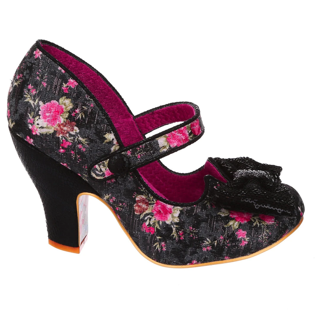 Florals are fabulous, and now you can wear them on your feet too! Our fave Fancy That mary jane heels is reimagined this season with this stunning black, pink and green floral pattern, paired with a black crackle metallic bow on the toe and a mary jane strap for ultimate comfort! A real IC classic – perfect to wear with tights or trousers, a great way to dress any outfit up!