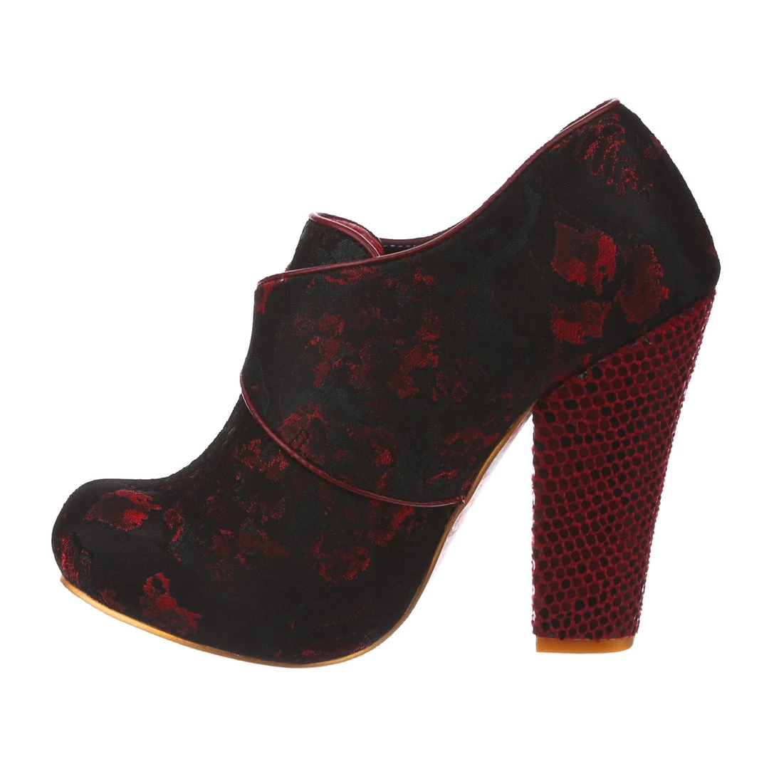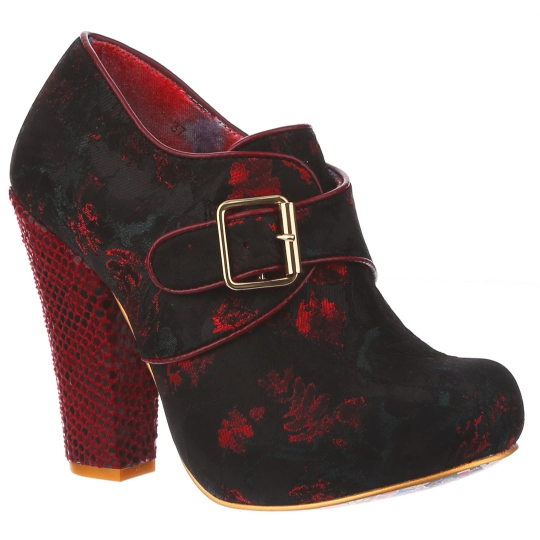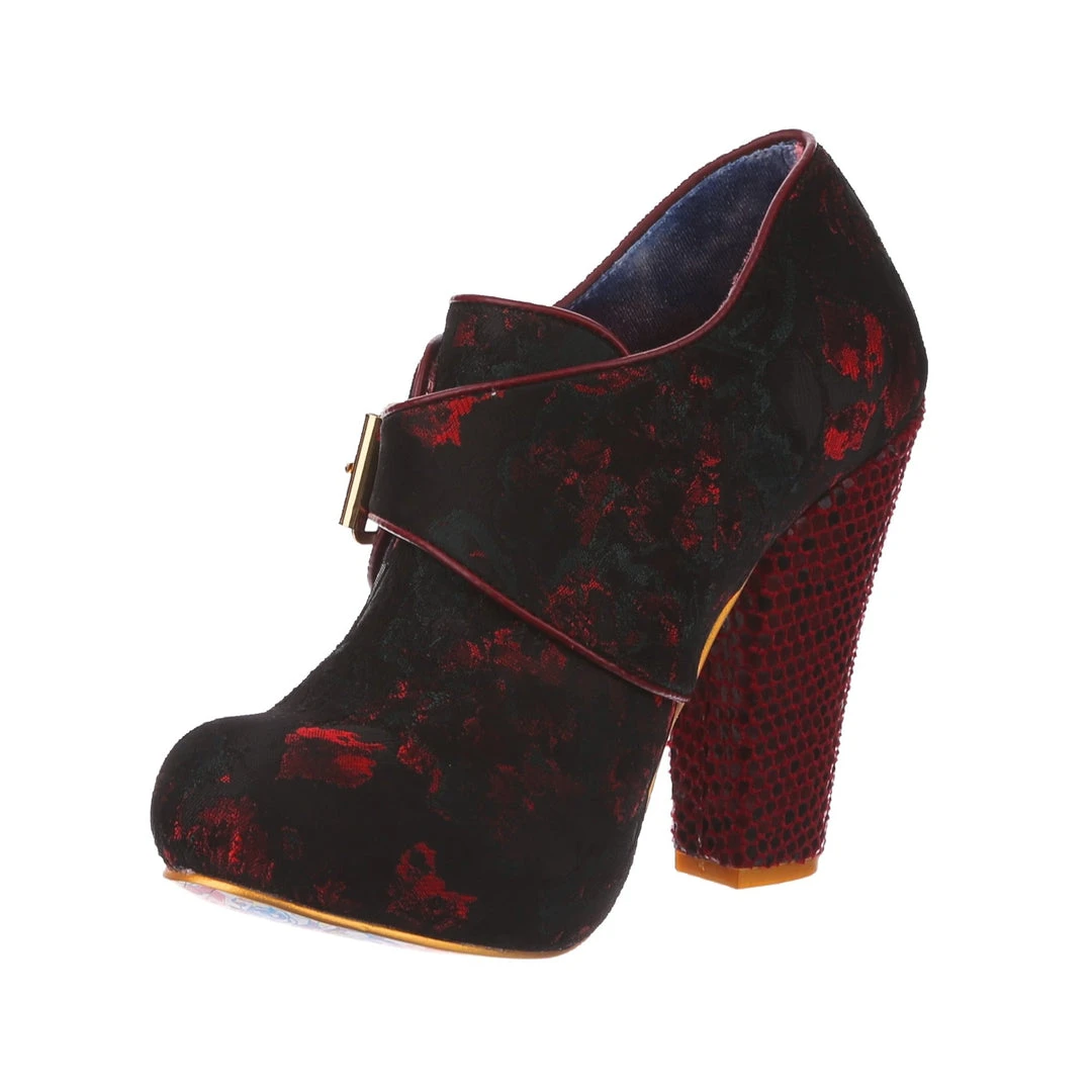 Feel absolutely fabulous in the gorgeous heels! A luscious deep red patterned upper is fastened with a statement buckle and accented with a chunky heel for the ultimate retro cool look!