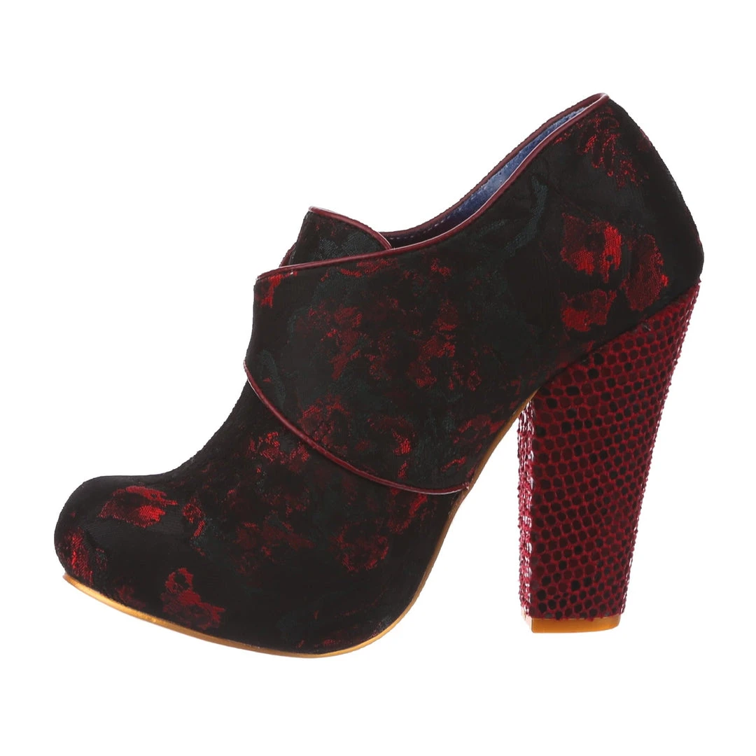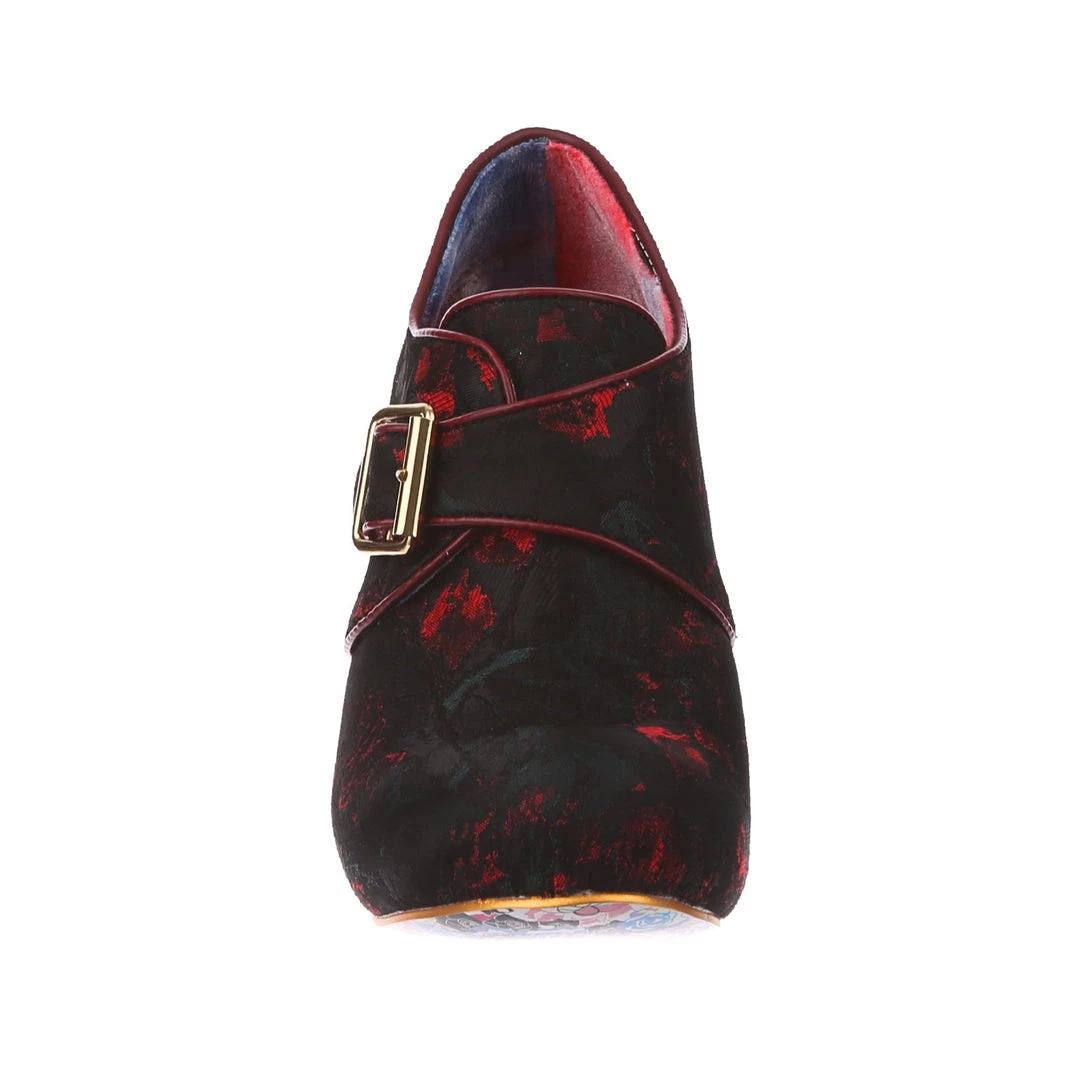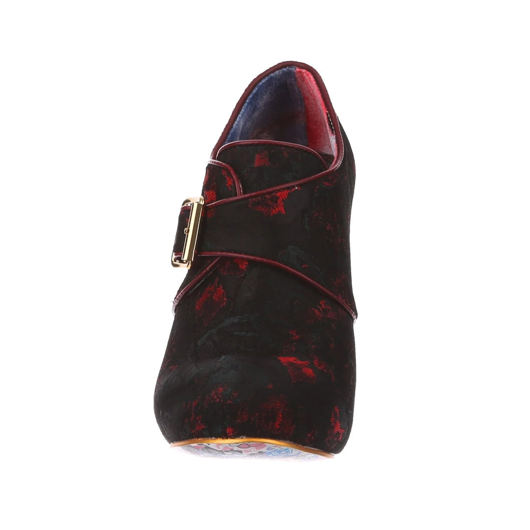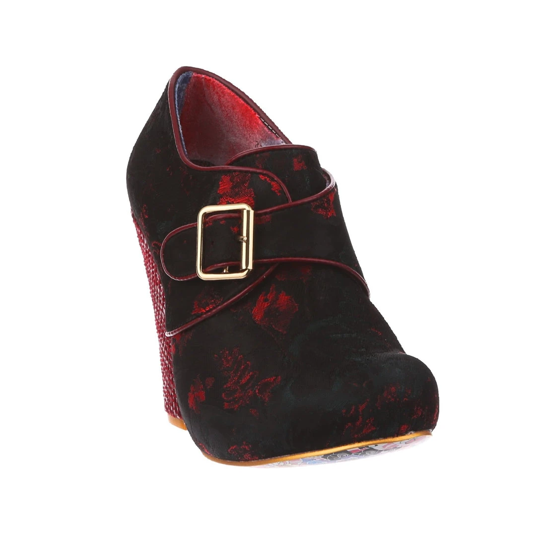 Feel absolutely fabulous in the gorgeous heels! A luscious deep red patterned upper is fastened with a statement buckle and accented with a chunky heel for the ultimate retro cool look!