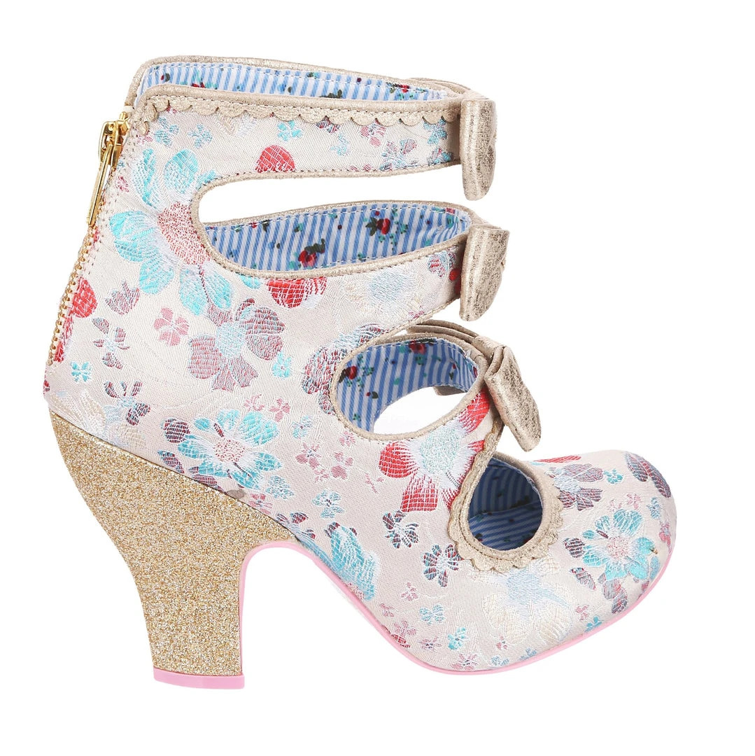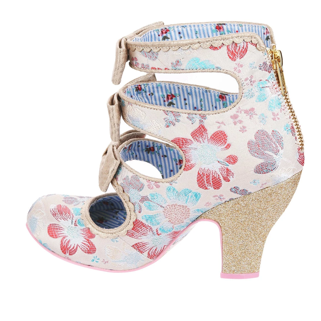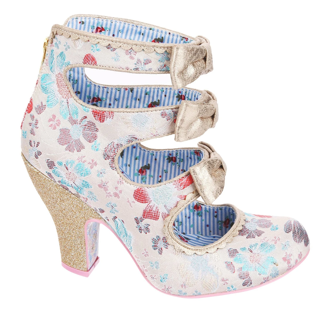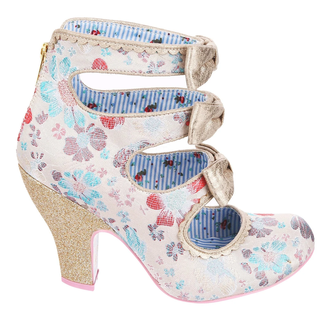 All finished with a bow! Wrap yourself in these elegant ivory embroidered cut out high heels. The gold piping, three perfect matching bows and a gold glitter heel create a luxurious feel to these bridal shoes. A handy zip fastening at the back of the boot means they slip on and off comfortably. Add these bow-tiful stunners to your wedding outfit today!