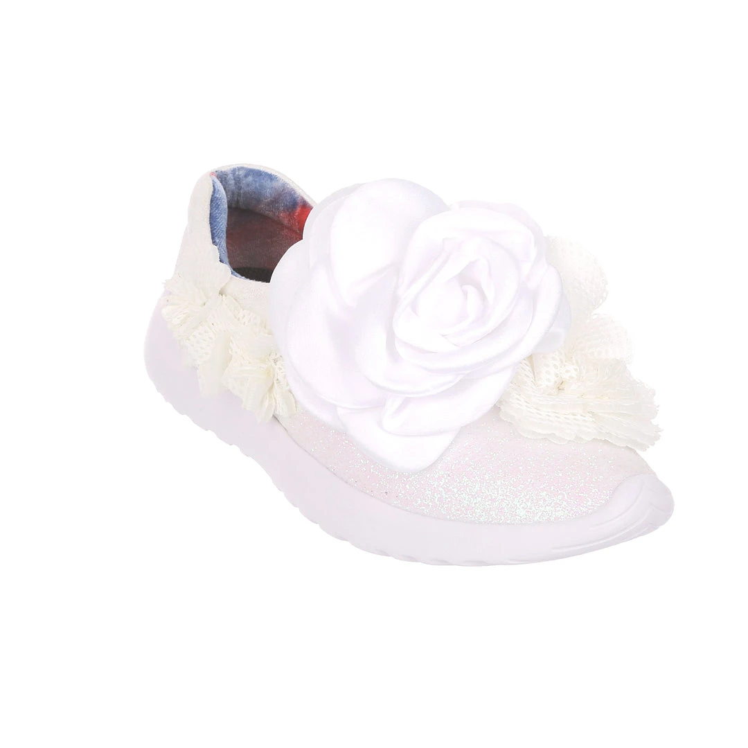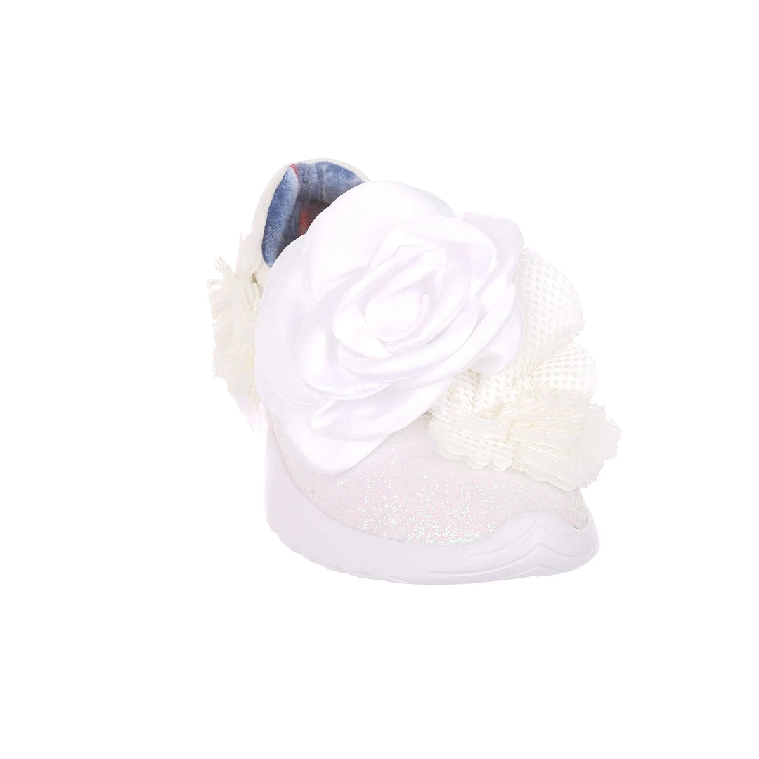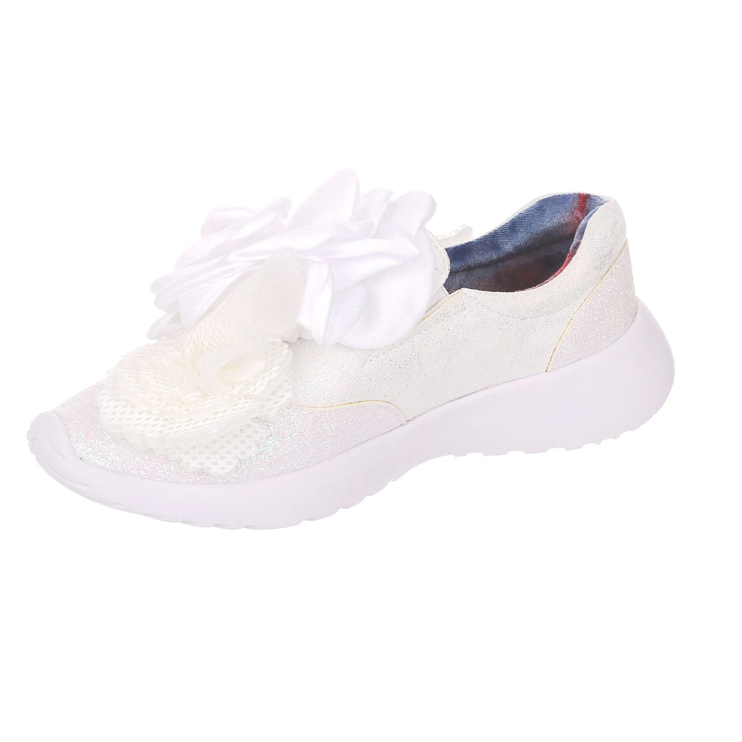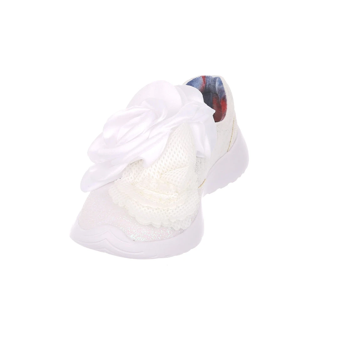 Don’t give up your right to comfort, even on your wedding day – you can feel divine in our Iconic Rambling Rose wedding trainers! Huge fabric flowers and delicate trims nestle on a glinting iridescent white glitter background, with a comfy white outsole to give you extra bounce on the dance floor. Absolutely stunning, exactly how any bride wants to feel on their big day!