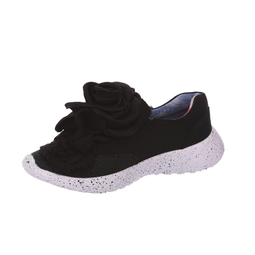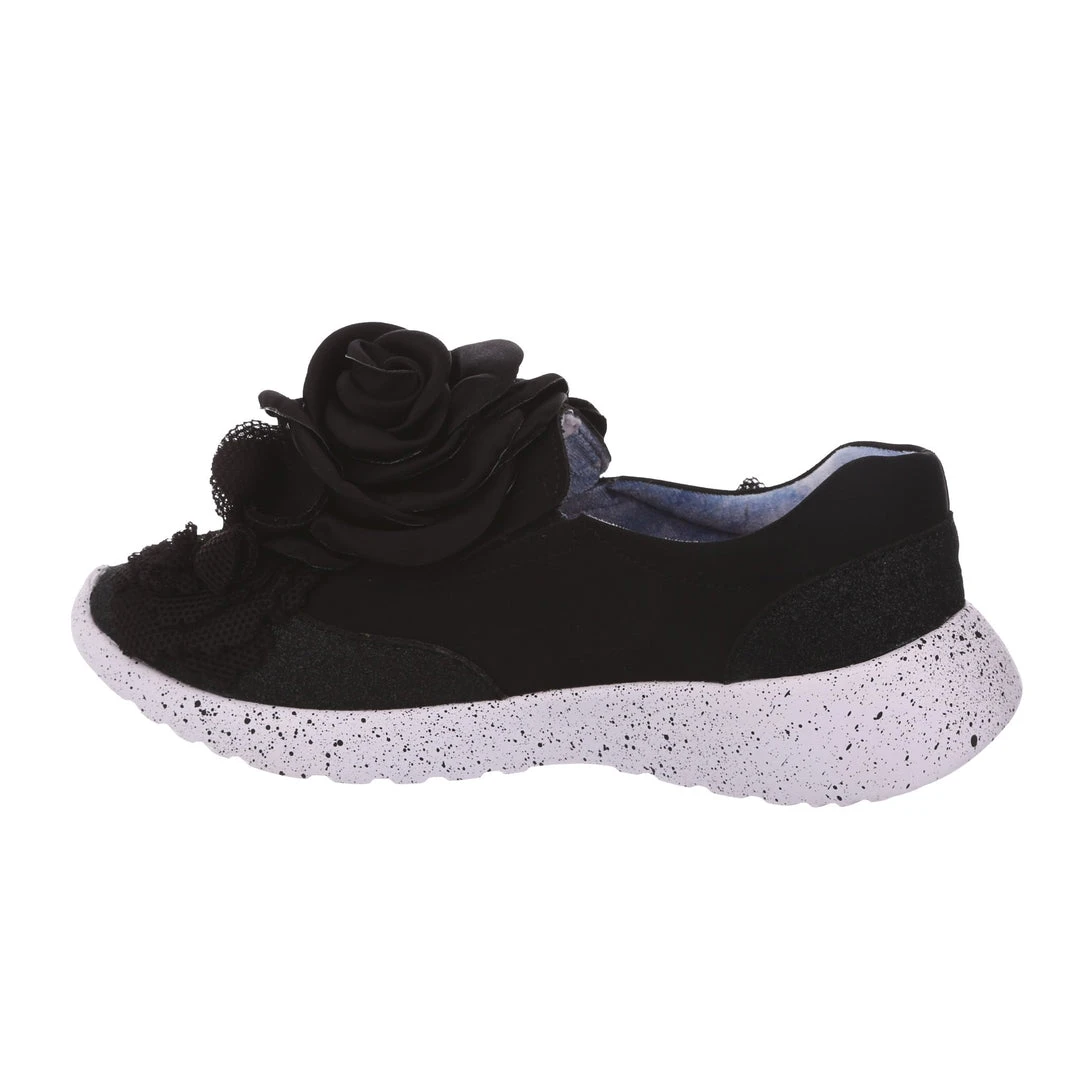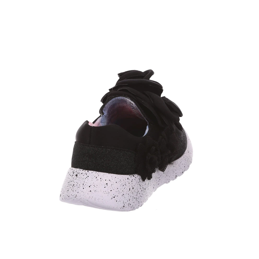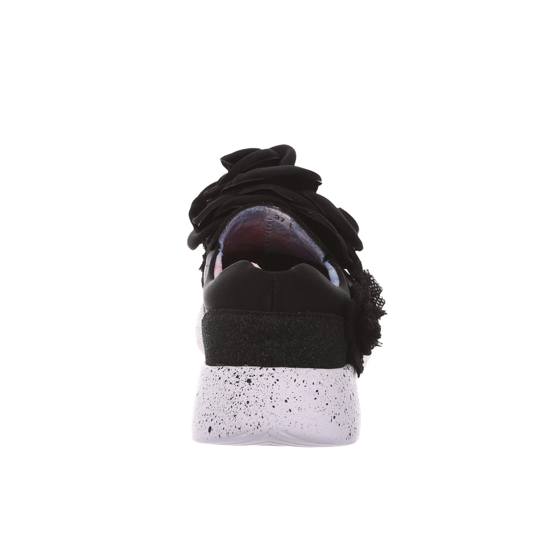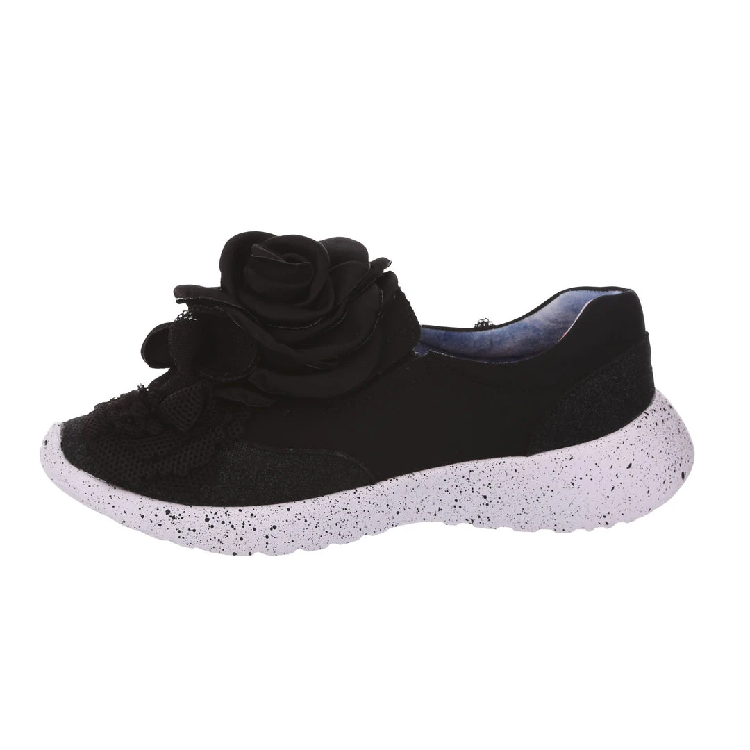 Soft shoe shuffle your way into sporty comfort in our new season Rambling Roses! Huge fabric flowers and delicate trims nestle on a glinting iridescent black glitter background.