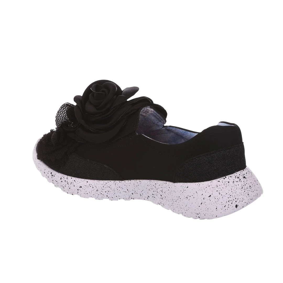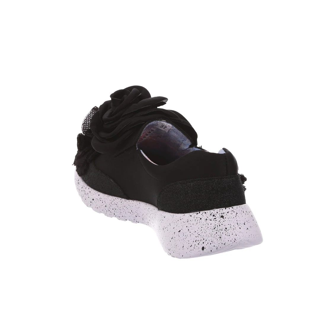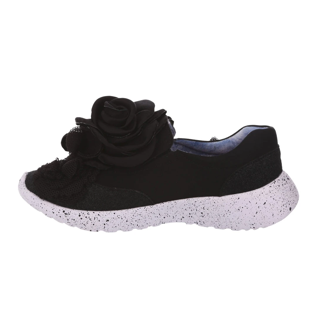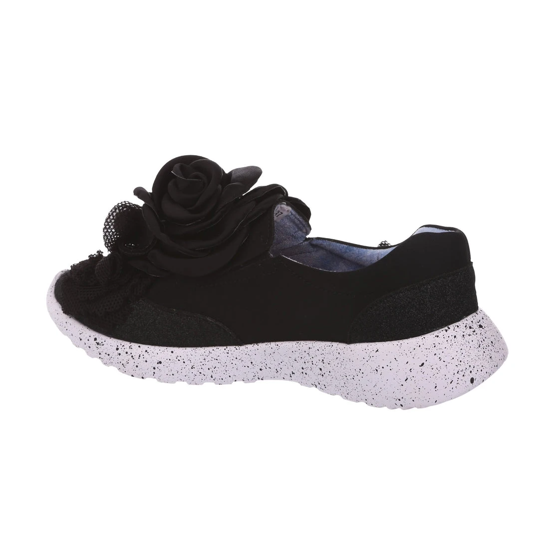 Soft shoe shuffle your way into sporty comfort in our new season Rambling Roses! Huge fabric flowers and delicate trims nestle on a glinting iridescent black glitter background.