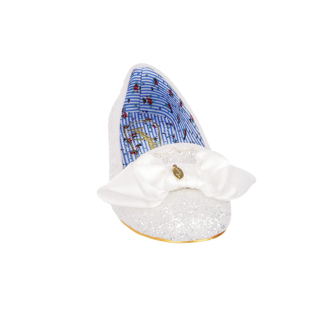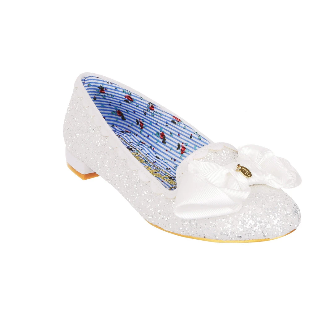 Sparkle from wedding day to night! This angelic little slipper is a comfortable flat sent from heaven. These flat wedding shoes come with a lacy glittery upper, scalloped edging and a delicate folded bow. The perfect slip-ons for every bride!