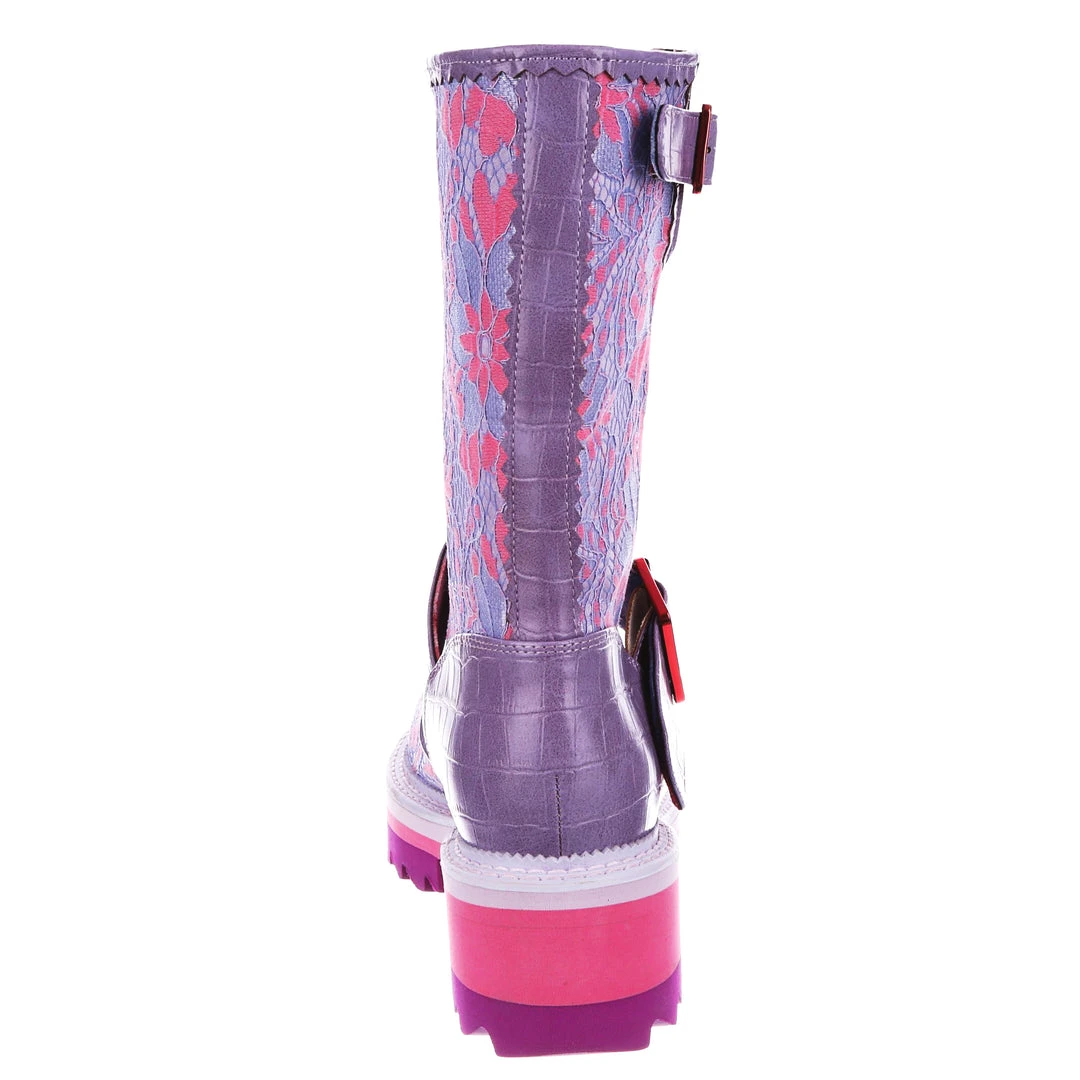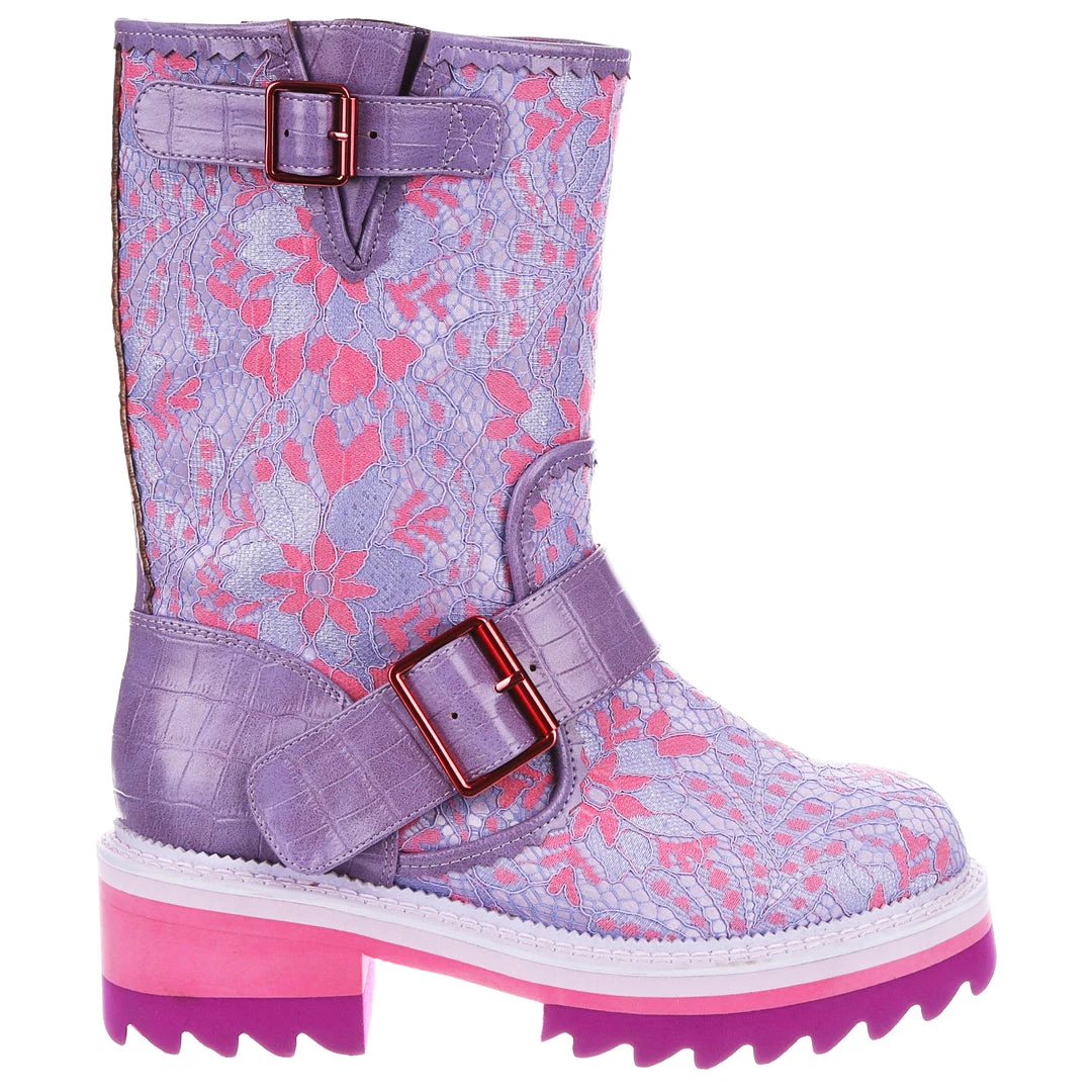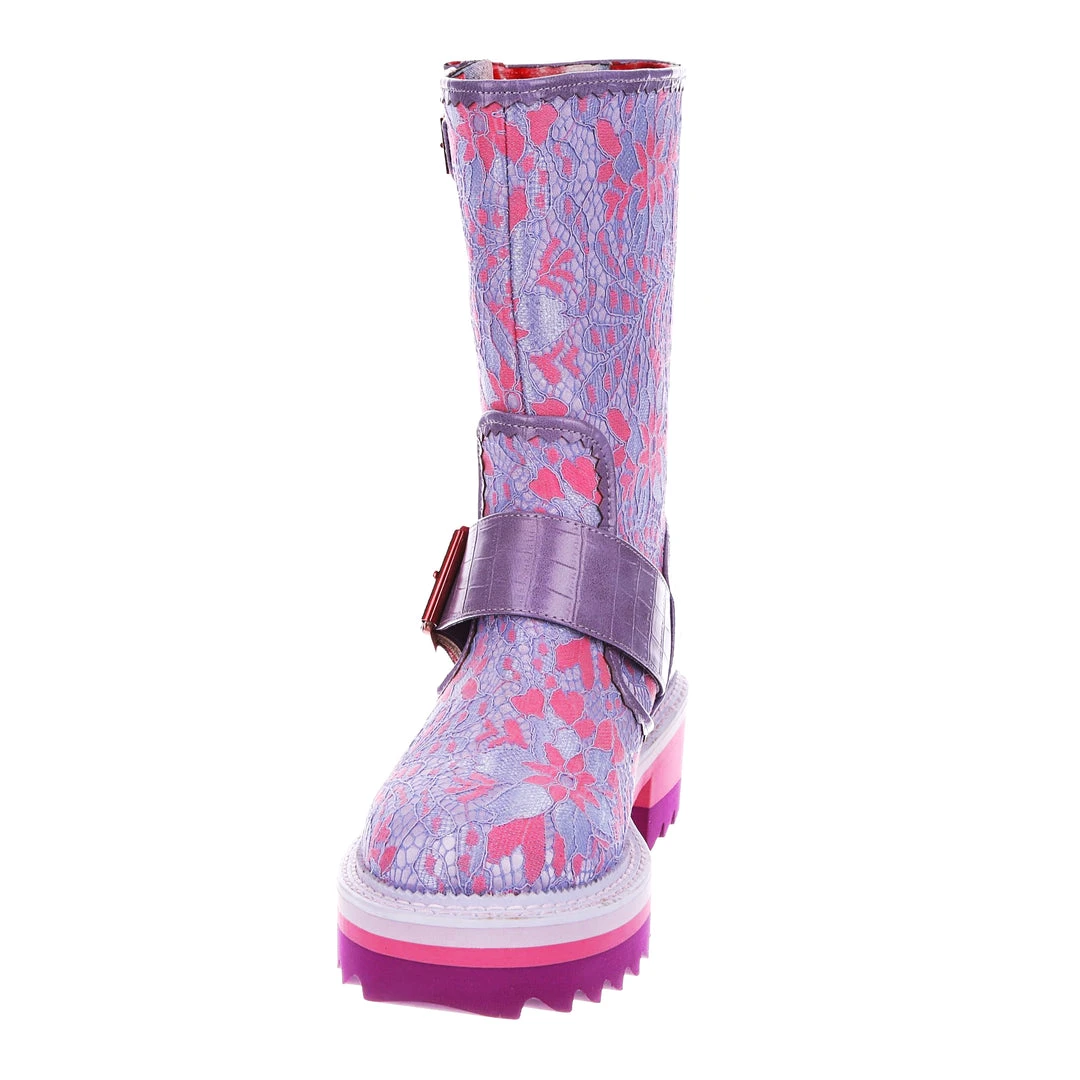 Perfect for those chilly walks, these boots are here to infuse some fun into your wardrobe for the colder months! Featuring a bright lilac and baby pink floral fabric, accented with lavender crocodile texture and rose gold buckles – these boots are sure to take any outfit to the next level! The chunky tread means that they are super comfortable and also create a great impact when worn! Perfect to pair with some fun tights or snazzy trousers, add them to your life today!