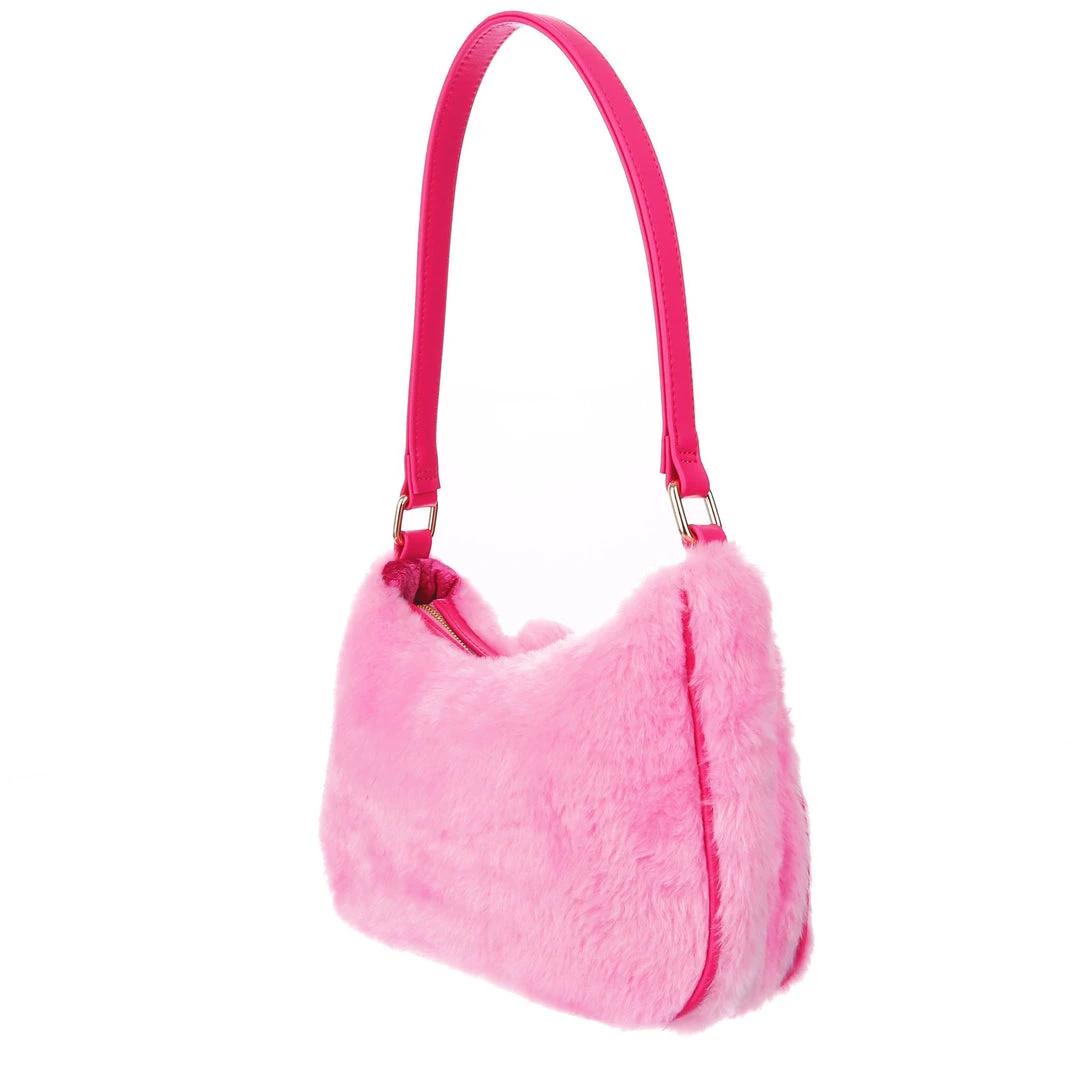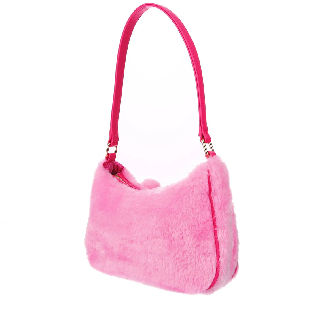 The cutest, fluffiest little friend! This little handbag has all the adorable vibes you want! A handheld strap and zip fastening adorn this cutie patootie, and the main fabric is a fabulous pink faux fur which is embroidered and embellished with all the details (including little 3D ears) to make it look like a teddy bear face! Cute, kitschy and perfect for you!