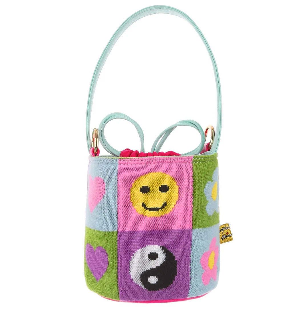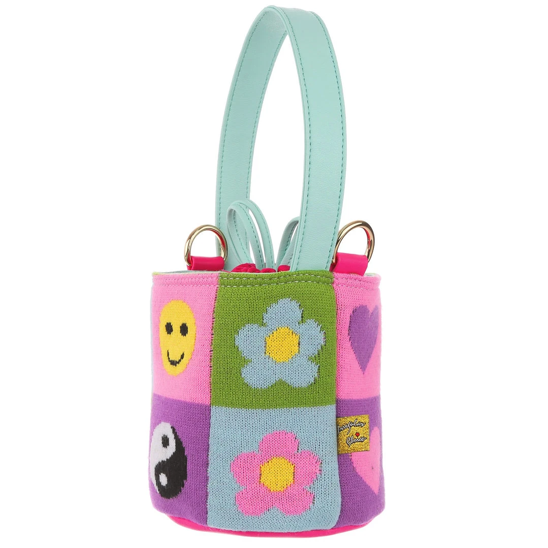 One for all the nineties fashion nostalgia lovers! Pastel patchwork bucket bag with a teal drawstring closure and matching handle that is surprisingly spacious for all your on the go essentials. Hit the street with this stylish and fun bag!
