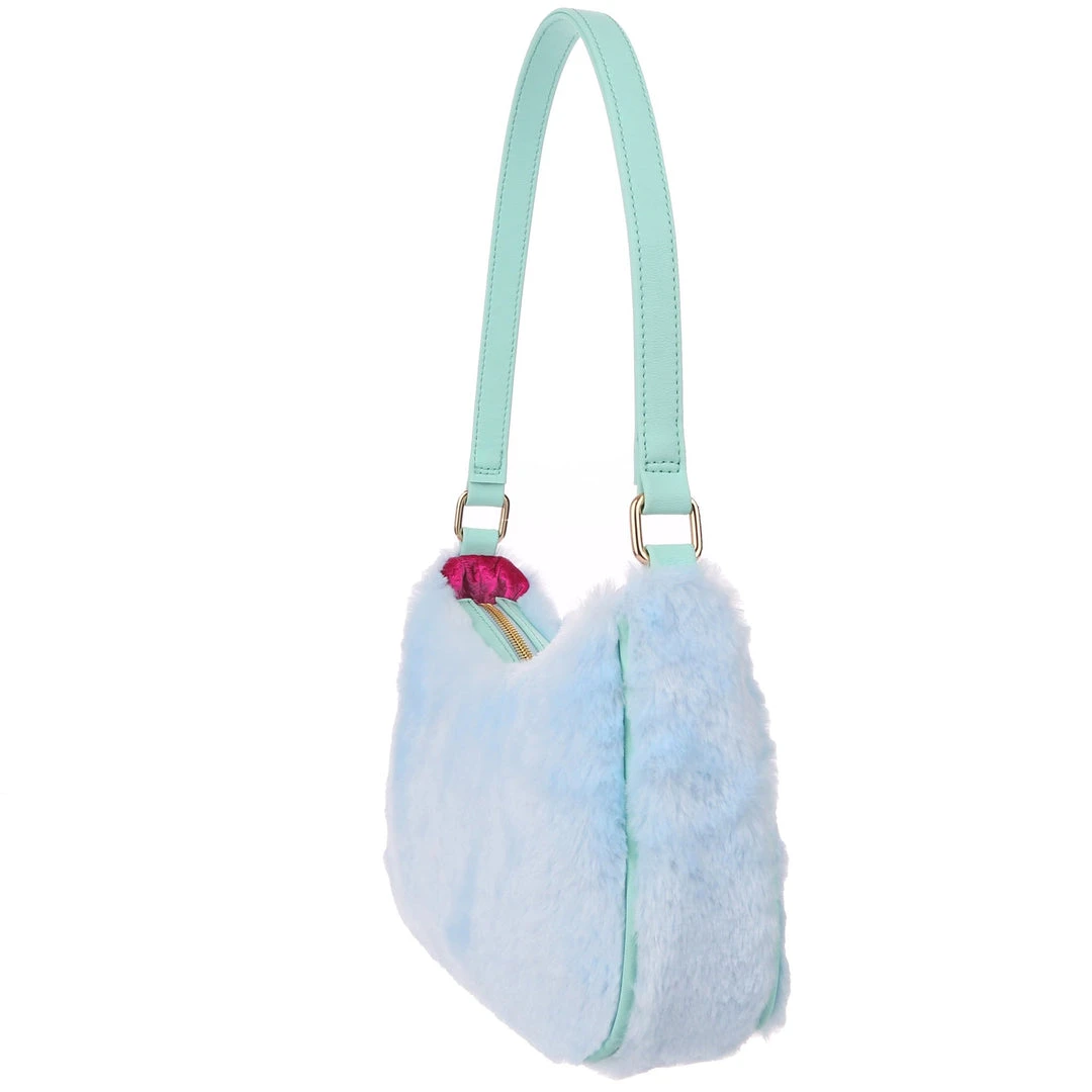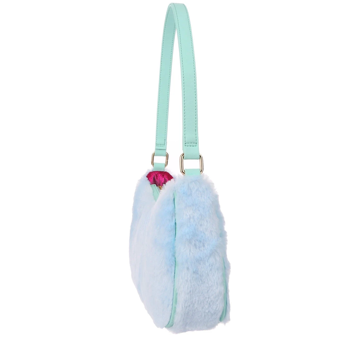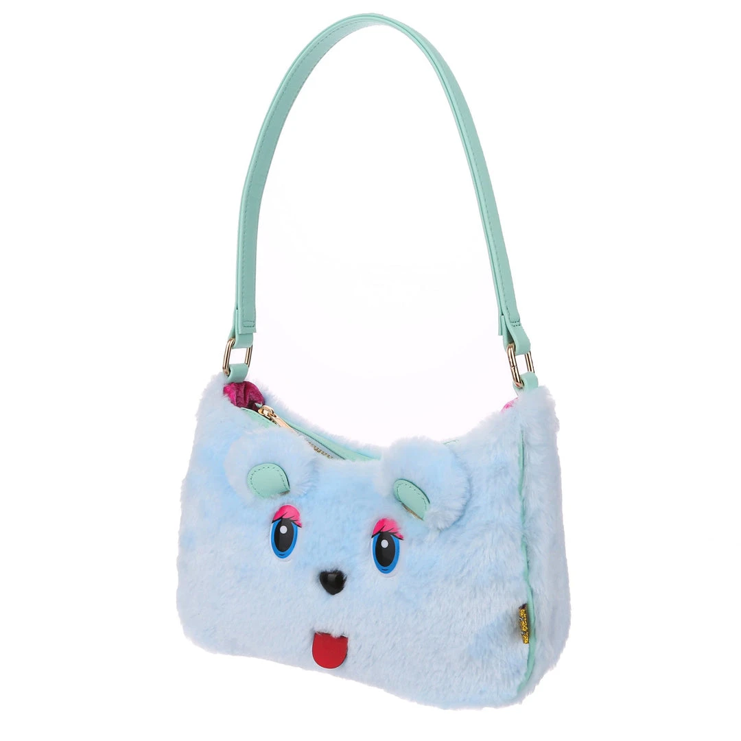 The cutest, fluffiest little friend! This little handbag has all the adorable vibes you want! A handheld strap and zip fastening adorn this cutie patootie, and the main fabric is a fabulous baby blue faux fur which is embroidered and embellished with all the details (including little 3D ears) to make it look like a teddy bear face! Cute, kitschy and perfect for you!