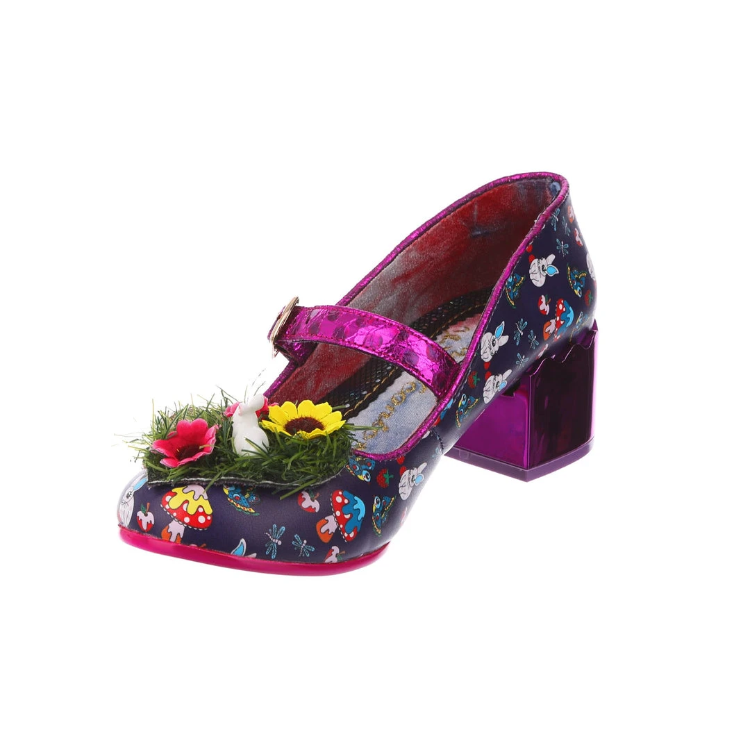 You’ll be hopping with excitement over these beauties! Adorable bunnies, friendly creatures and fruit are printed onto the navy blue leatherette and accented with a metallic magenta strap, piping and matching shiny block heel. All topped off with a heart shaped woodland scene on the toe, complete with 3D bunny, flowers and a mushroom! Feel at one with nature whenever you slip them on!