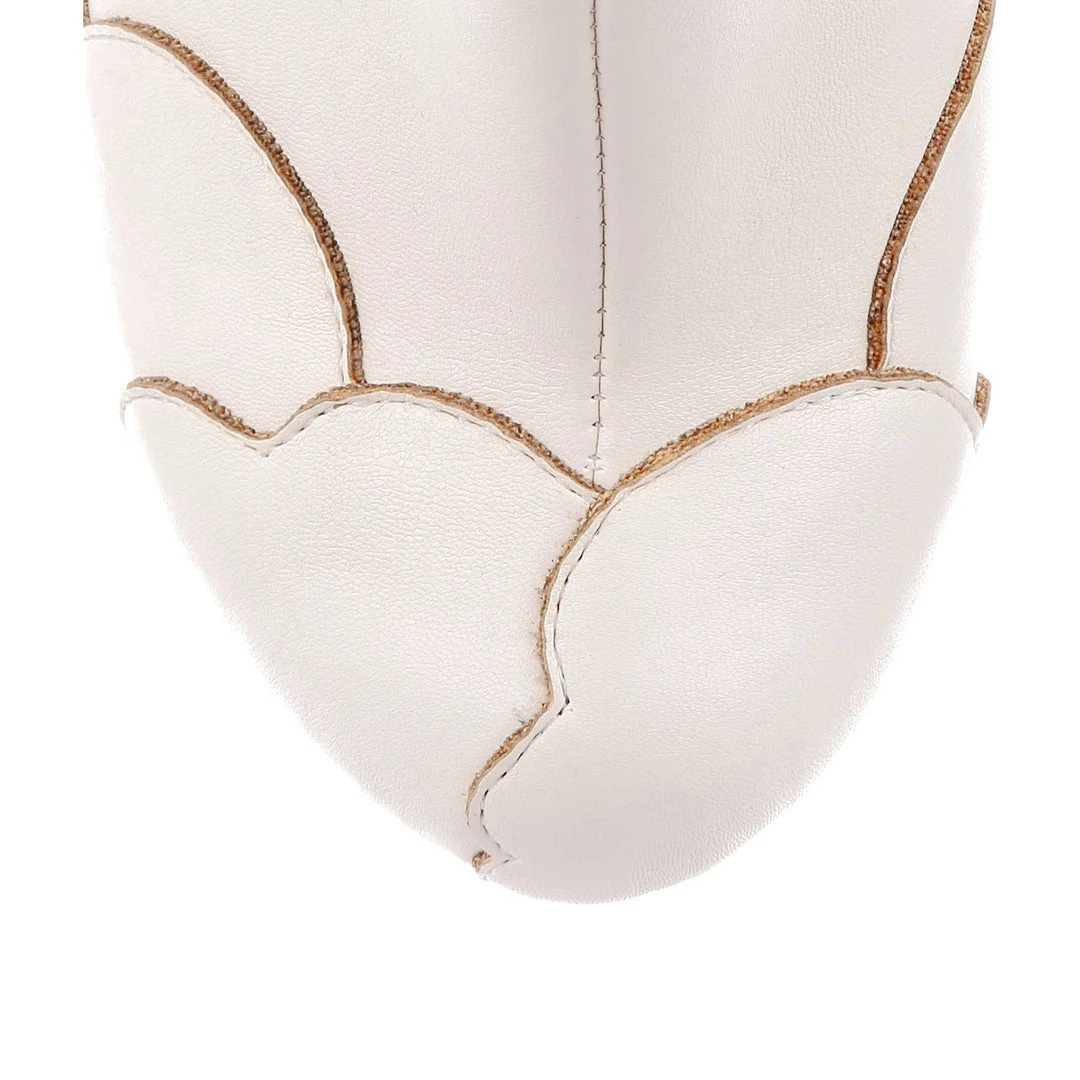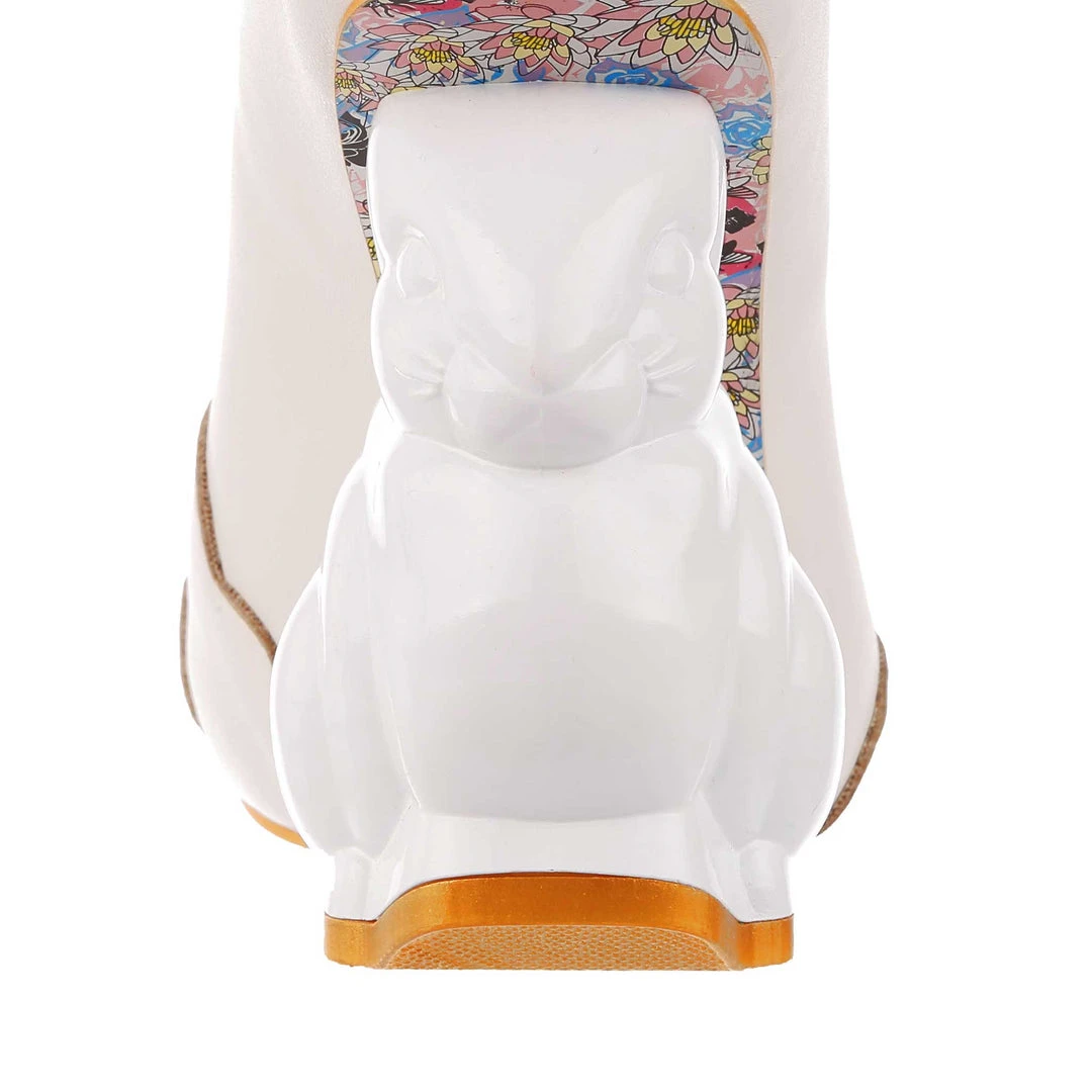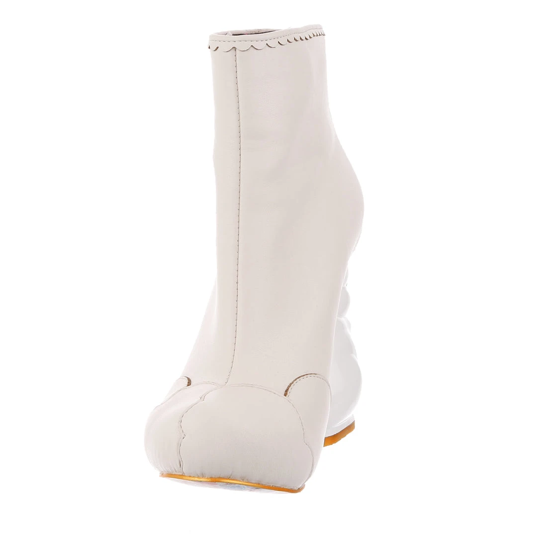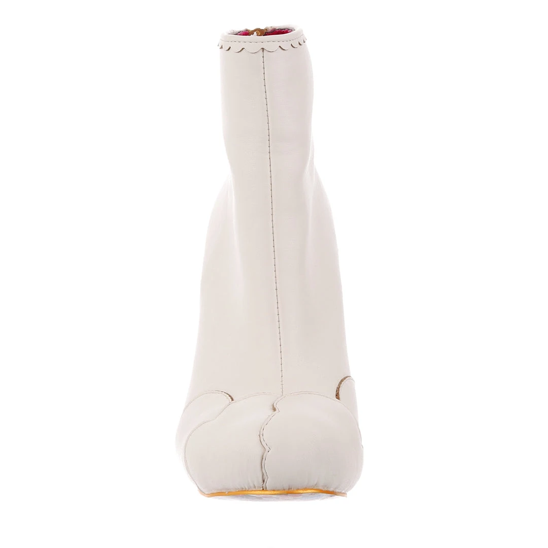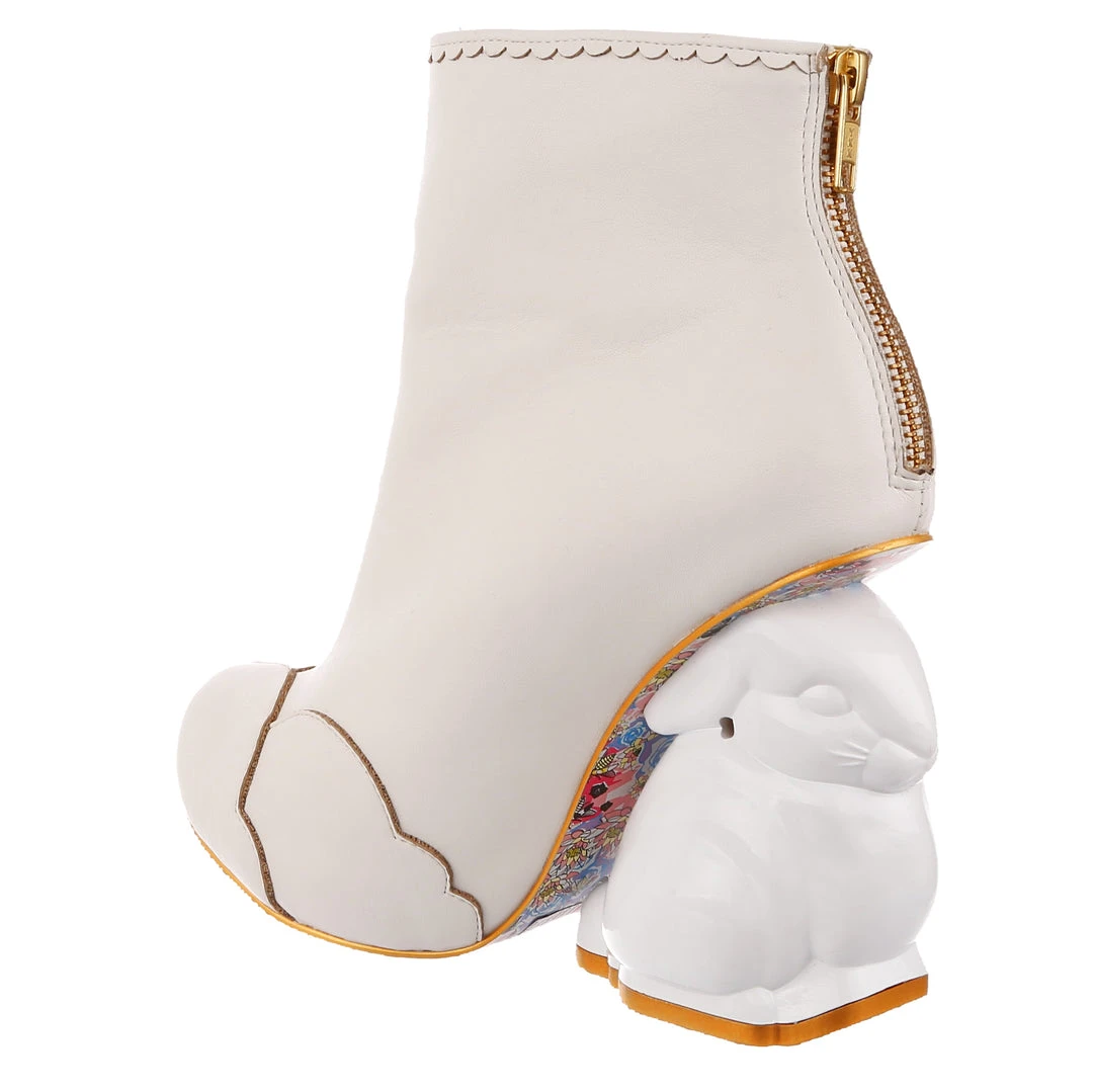 Get your paintbrush ready for these bunny boots! High heel ankle boots are left as a blank canvas for your creative designs, completed with a bunny heel, that has a hole ready for a bow of your choice! The zip fastening at heel makes these so easy to pop on and off. Finished with scallop detailing around the ankle and layered clouds on the toe, fulfil your bunny dreams with these fabulous boots today!