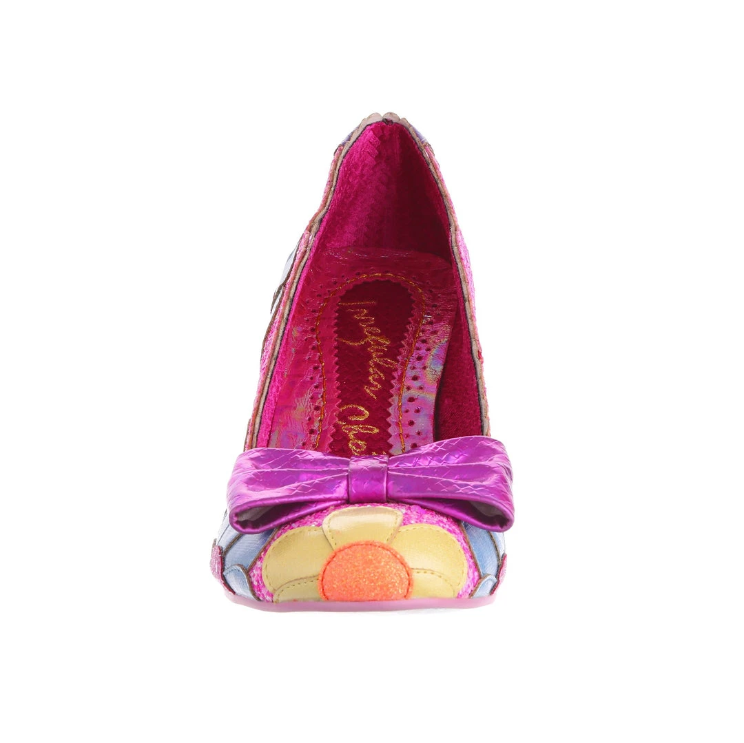 A bit of a retro twist, these daisy-tastic mid heels are the cutest addition to your outfit in decades! Blue and yellow daisies dance along the hot pink glitter encrusted upper – which is accented with the most gorgeous metallic pink bow on the toe! The perfect little mid heels to brighten your day!