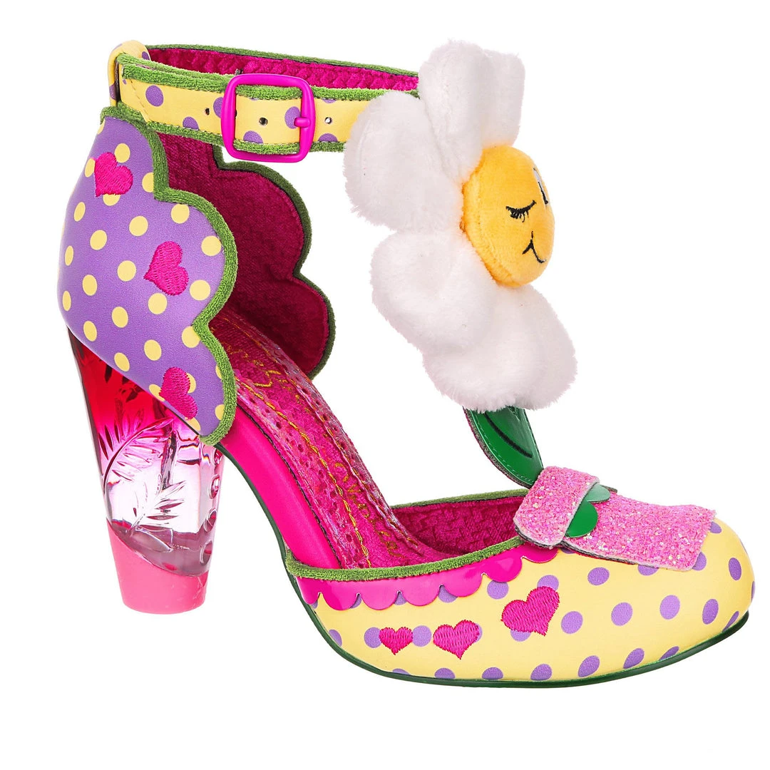 Bloomin’ wonderful! That’s what these beauties are! Buckle up with gorgeous strappy sandals and a transparent pink ombre high heel, perfect for making a statement! Mounted on a T-Bar strap, these plush grinning flowers are the perfect pick-me-up, paired with our favourite ombre lucite heel, they are wearable, fun and fabulous! The pastel colour palette of the panelling just makes you think of flowers, springtime and sunshine, what more could you want?