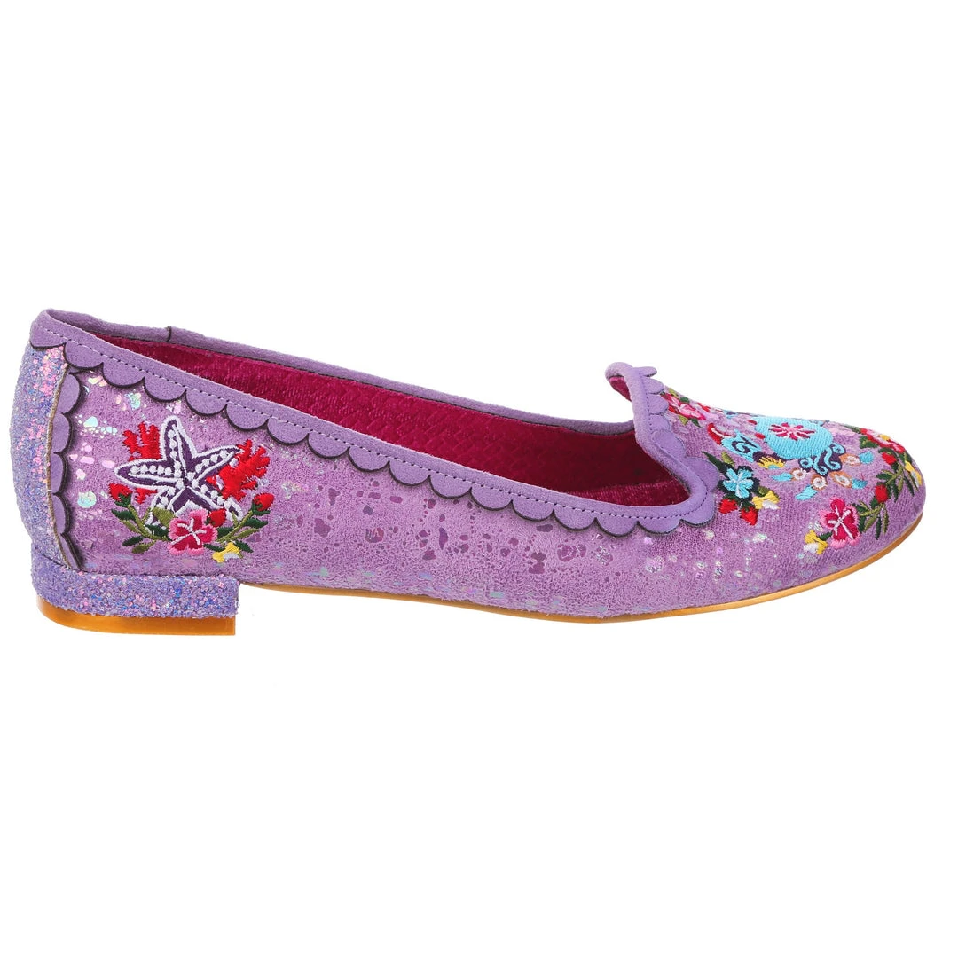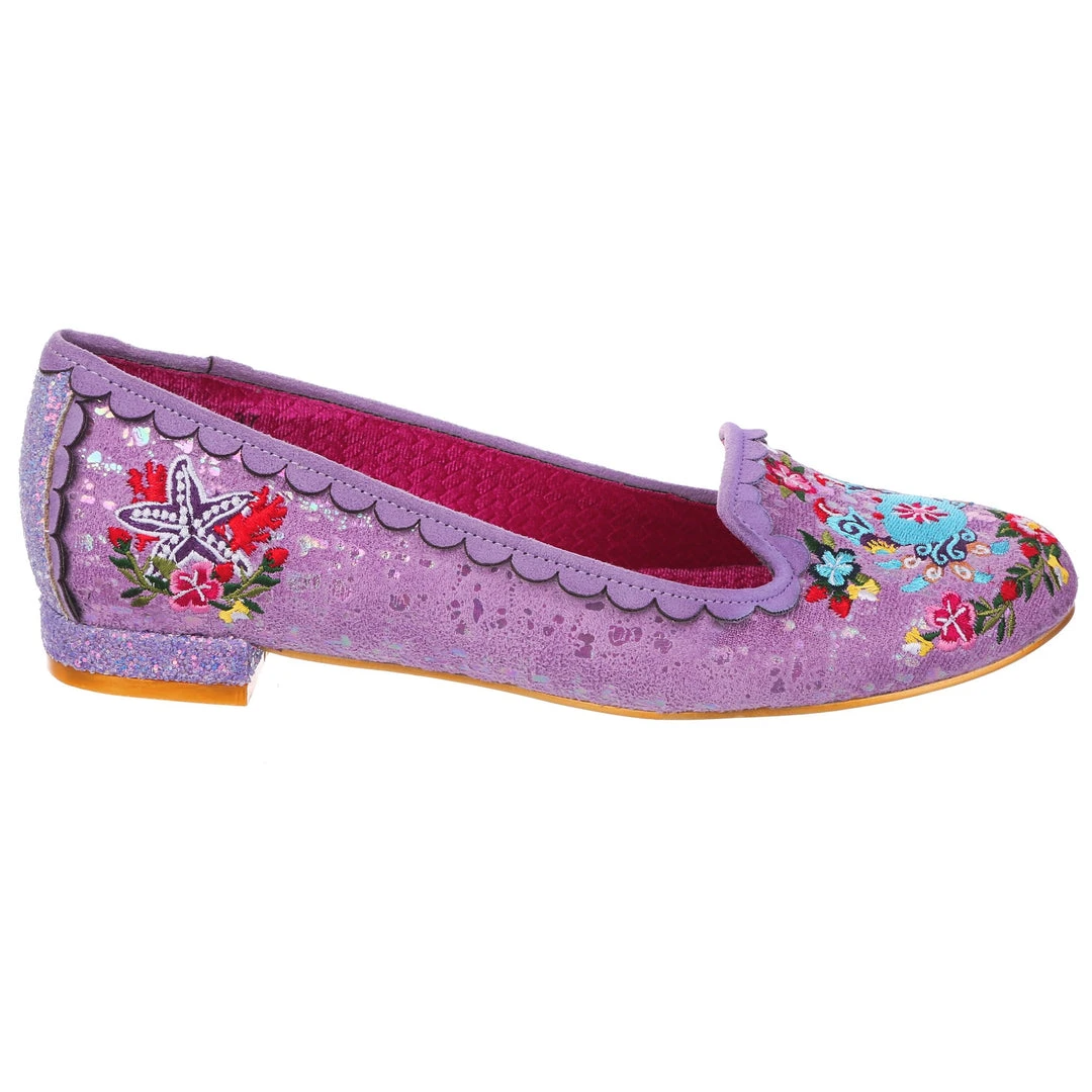 Want something comfortable but still crab-u-lous? These flats are for you! A base fabric of gorgeous pink iridescent reptile print is adorned with gorgeous embroidery of a crab on the toe, and a starfish on the heel! Paired with the lilac scalloped edging around the top of the shoe, these are a must have for all you aquatic angels! Add them to your treasure chest today!