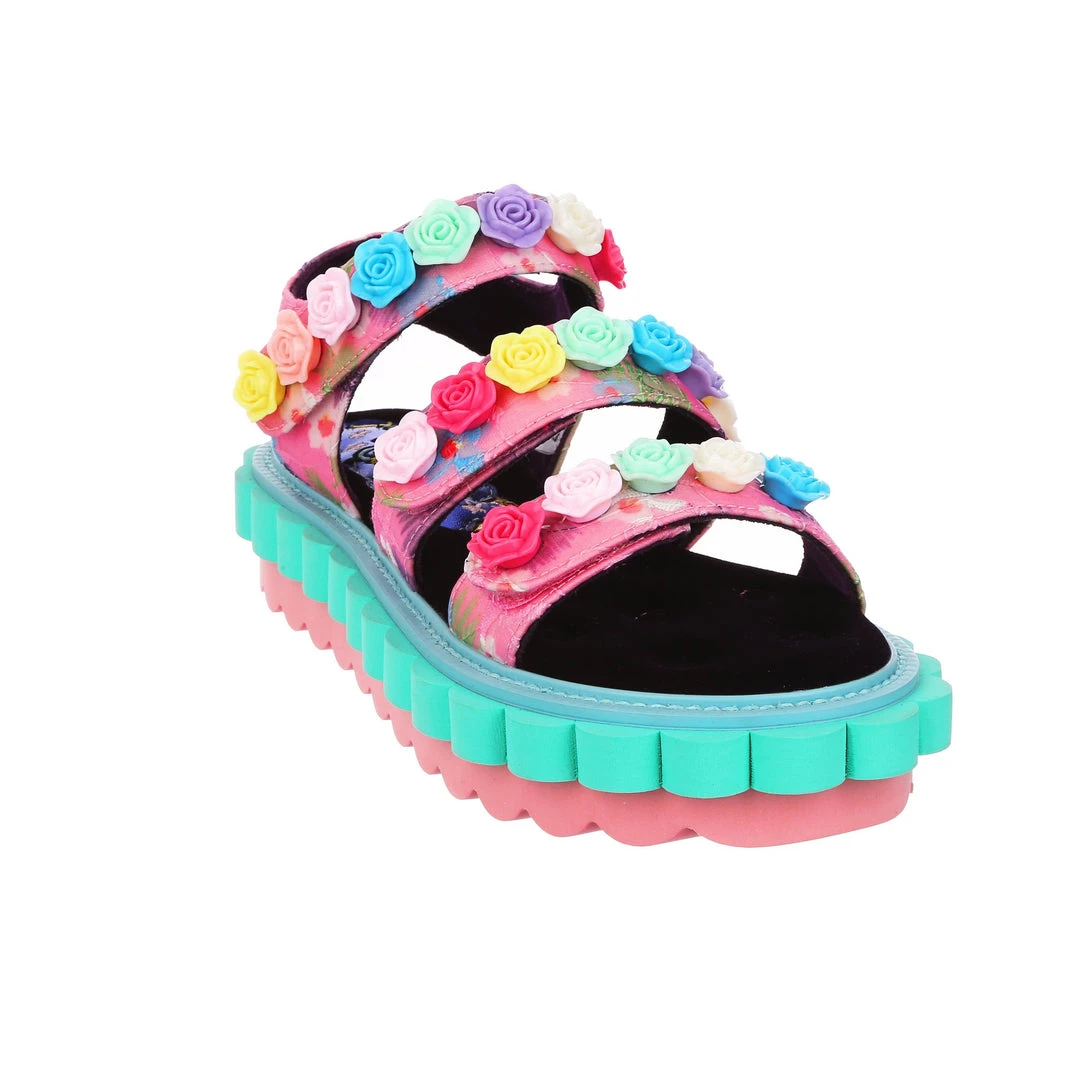 Sandals? Flowers? Platforms? The shoes of your dreams? Check, check, check and CHECK! These cuties are here to make your summer months fabulous! A gorgeous pink brocade is paired with magical multicoloured rose buds along the straps, which match the fabulous pastel teal and pink double stacked scalloped sole! Perfect to add a bit of wow to any outfit, grab them today!