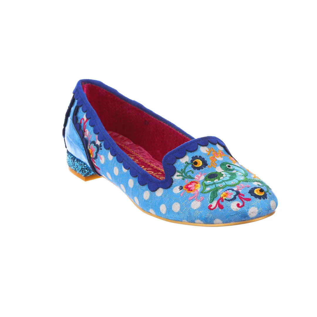 Shell yeah! These totally turtle-tastic flats are here to make your day! Shimmering blue and white polka dot flats are combined with royal blue scalloping and amazing metallic. Fabulous embroidery on the toe to make the perfect pair of pumps for when you want a bit of fabulous fun but also want to stay comfortable too. Snap up these aquatic embroidered flats before they swim away!