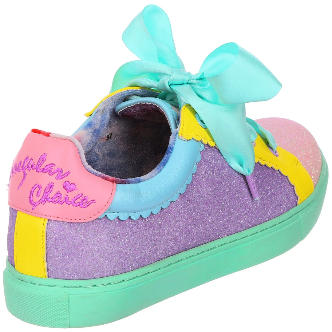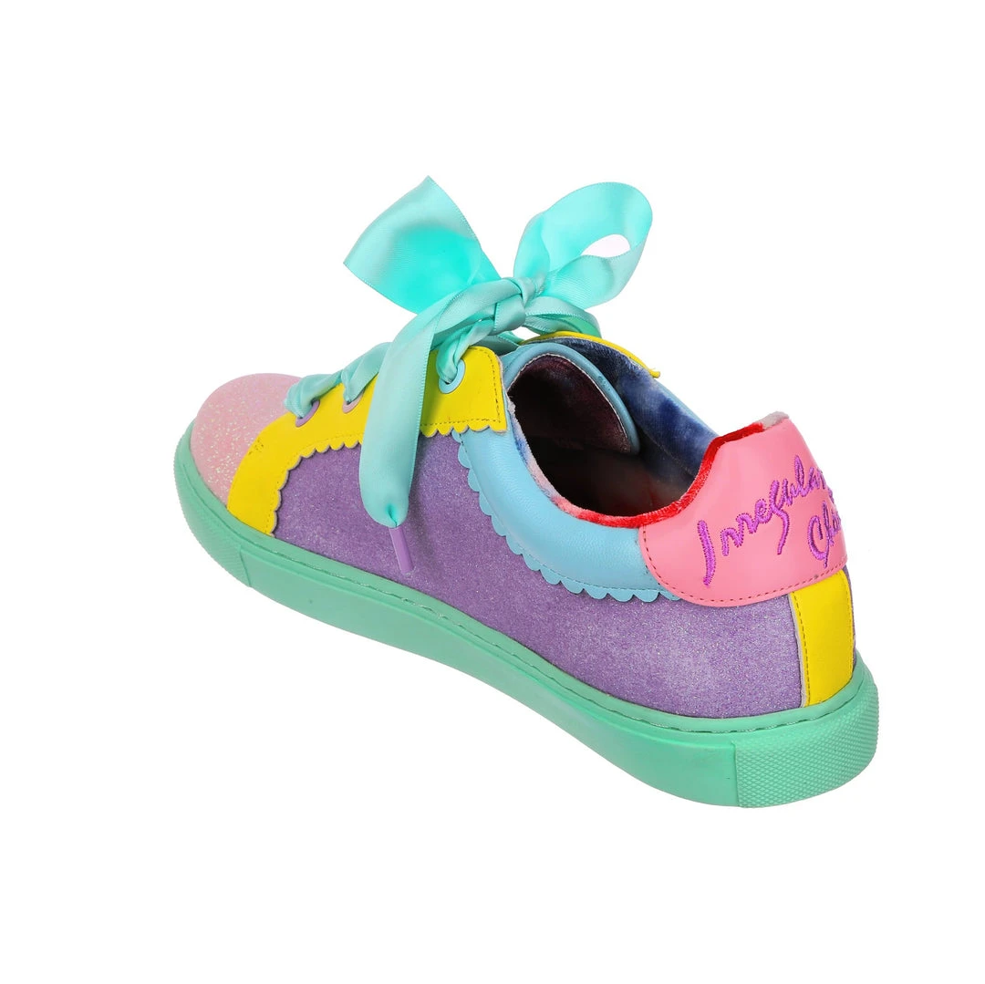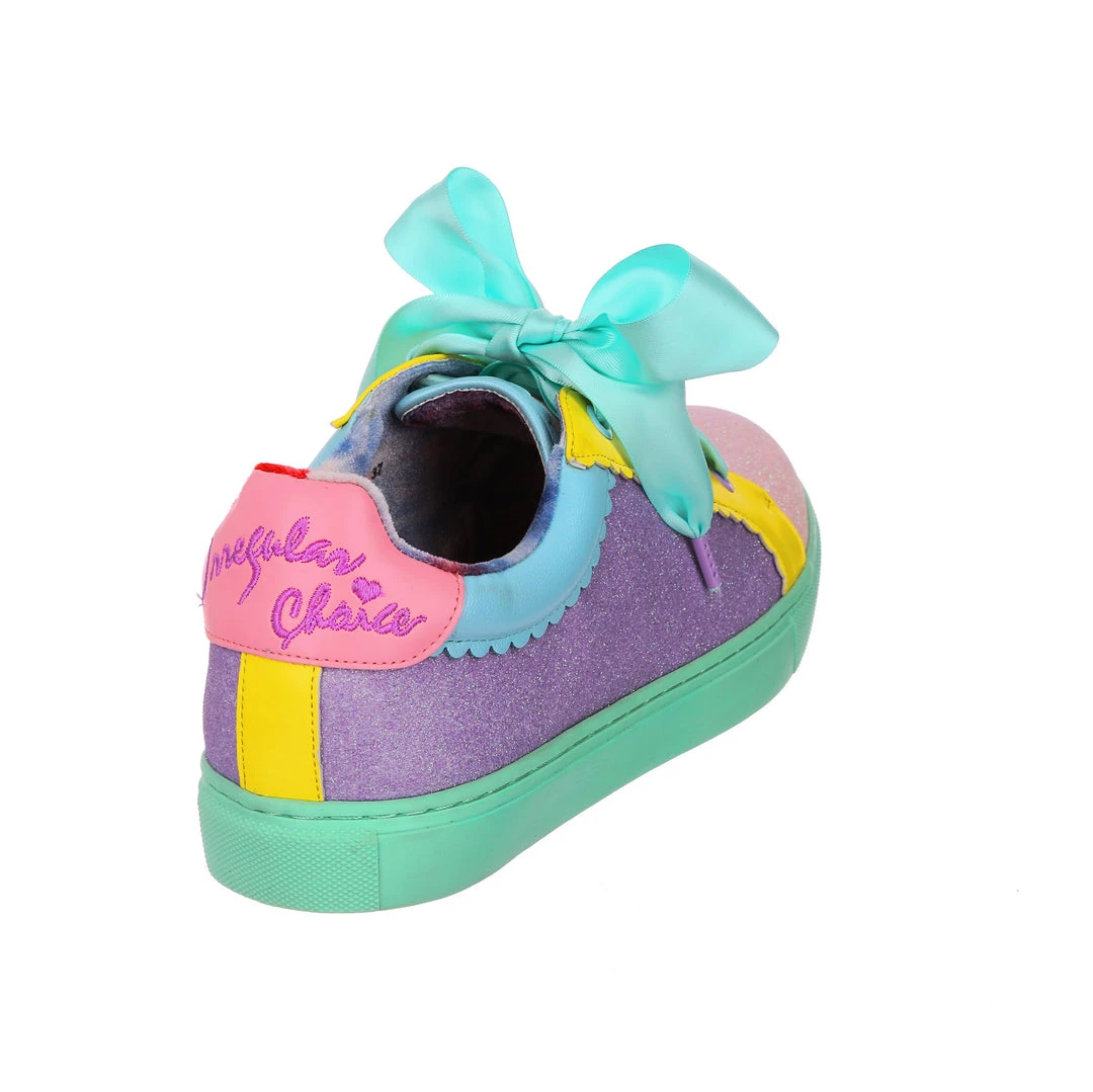 Wanting something comfy and casual but still with some irregular flair, these are the shoes for you! A comfy lace up sneaker style, these pumps are all decked out in a shimmering mismatch patchwork of pastel glitter tones, with bright yellow details and a sumptuous sea foam satin ribbon lace! Absolutely perfect to lace up, step out and show the world what you are made of!
