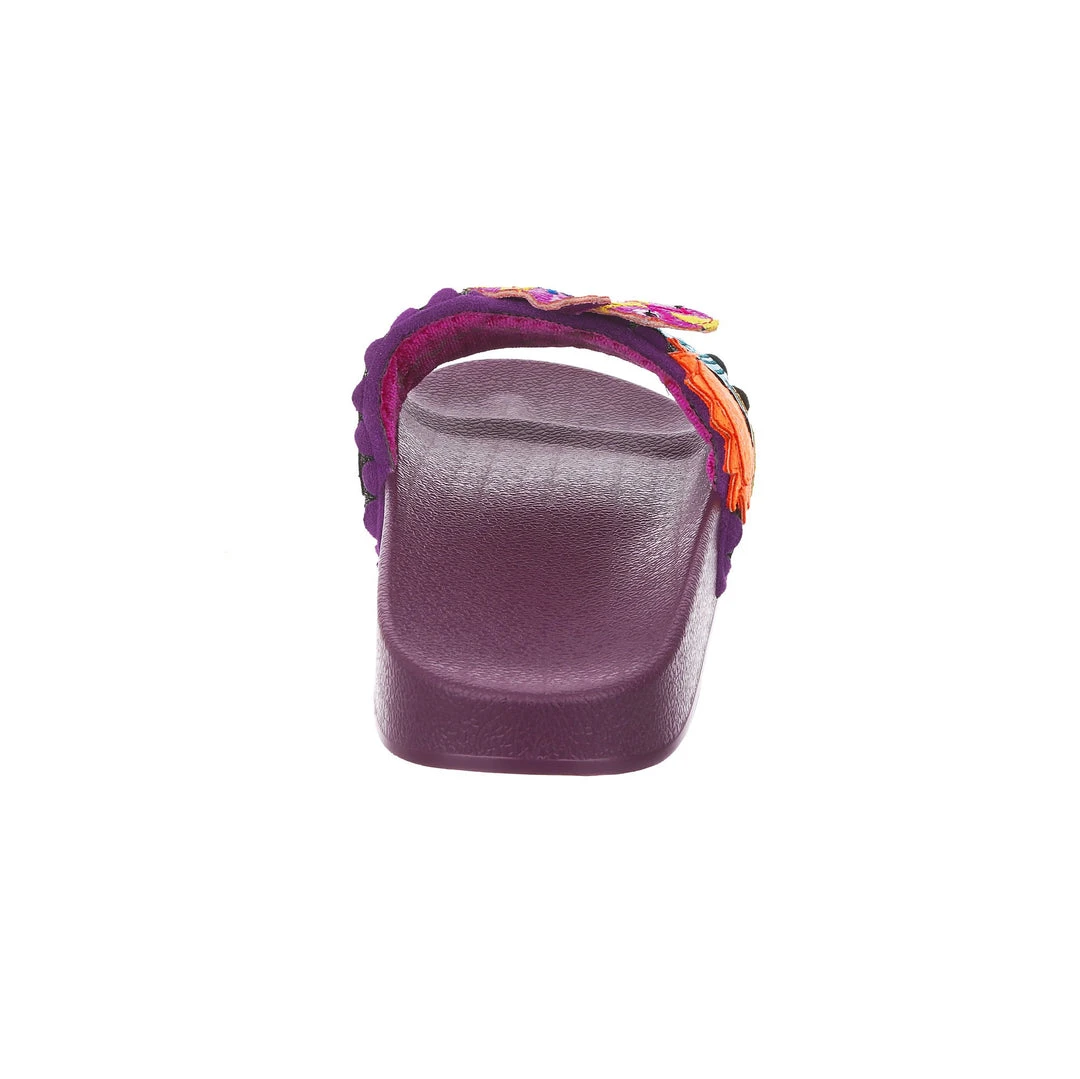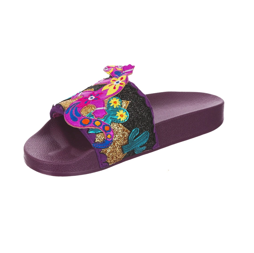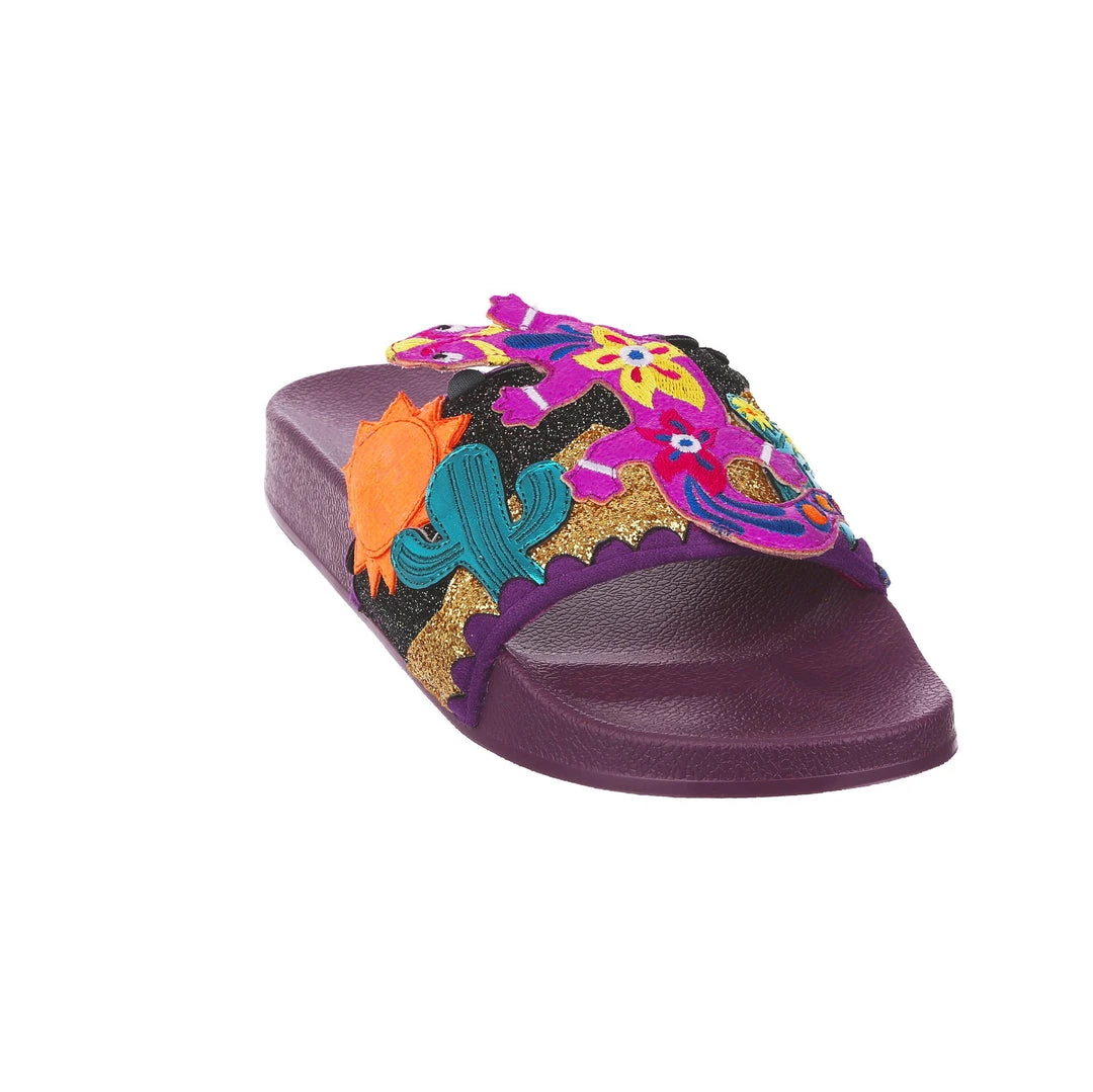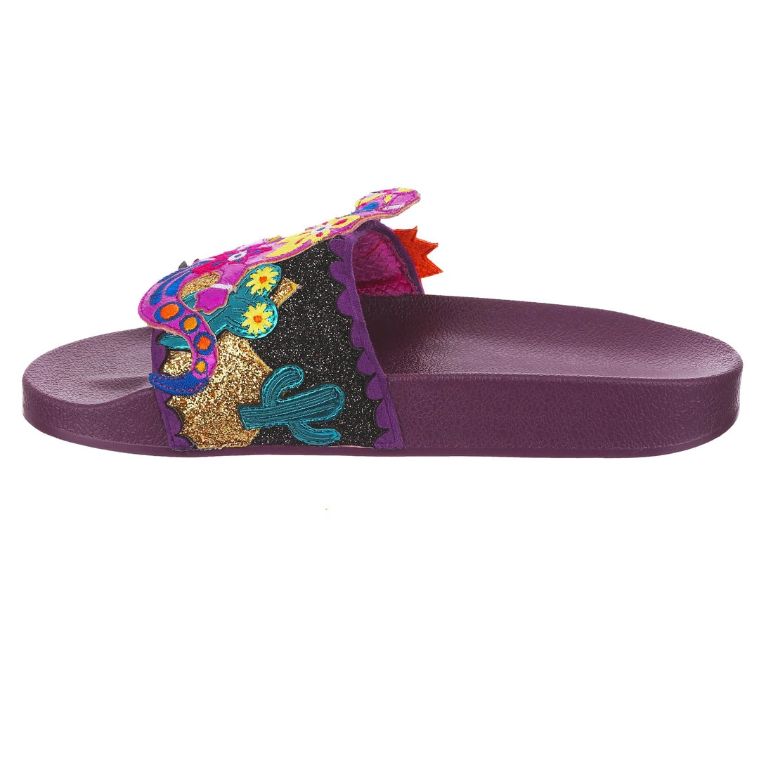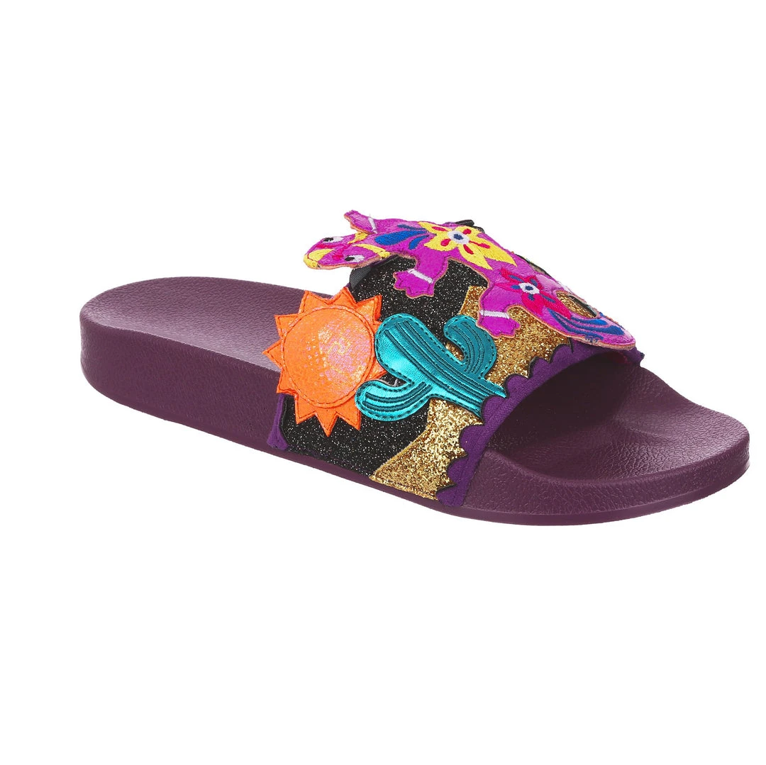 Want to slip in to something so salamader cool? These slides are ready to get up and gecko whenever you are! The aubergine coloured comfy footbed is combined with bright and eyecatching lizard applique, complete with a cactus and sun too! So what are you waiting for? You know you iguana have them in your life!
