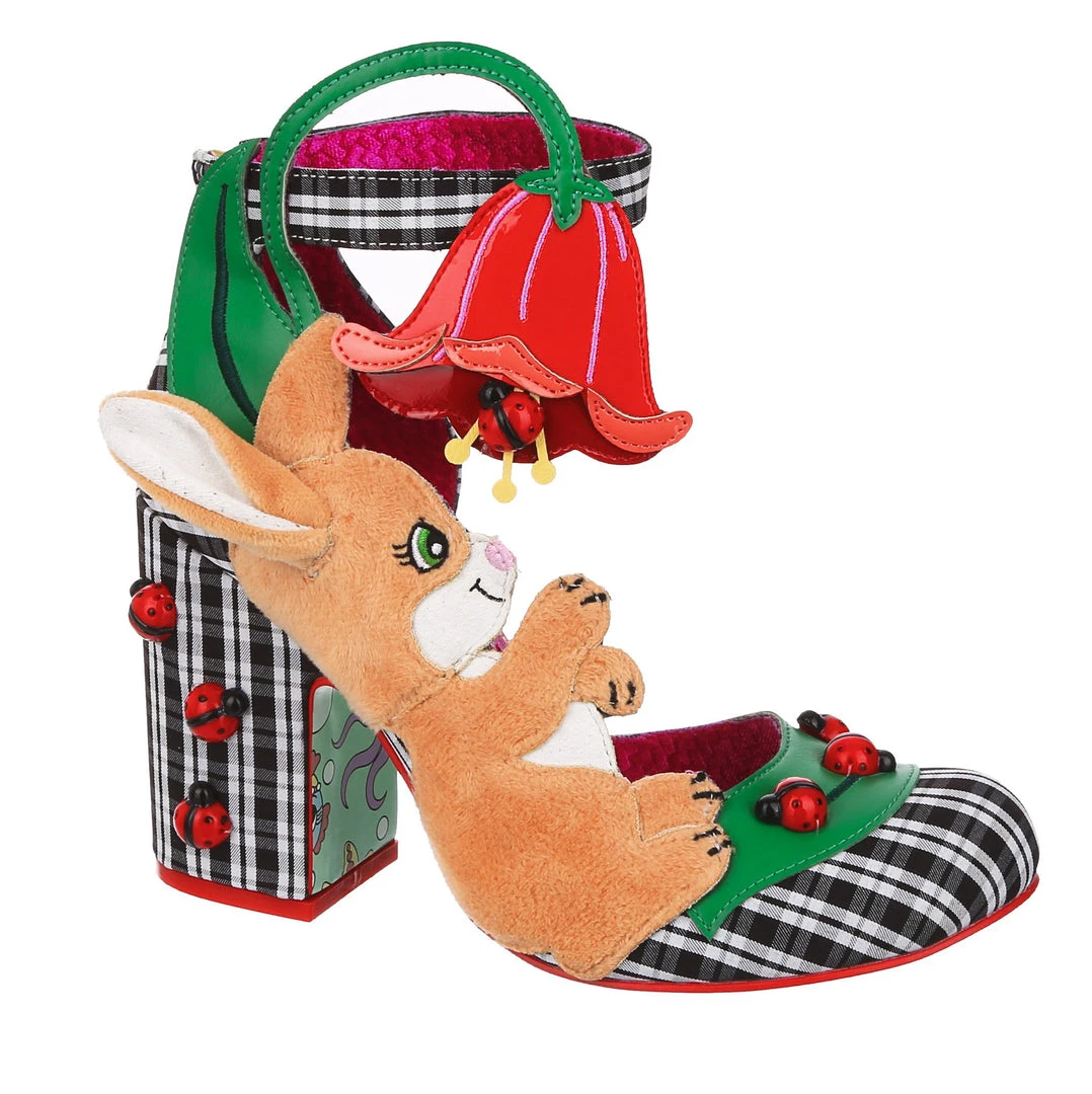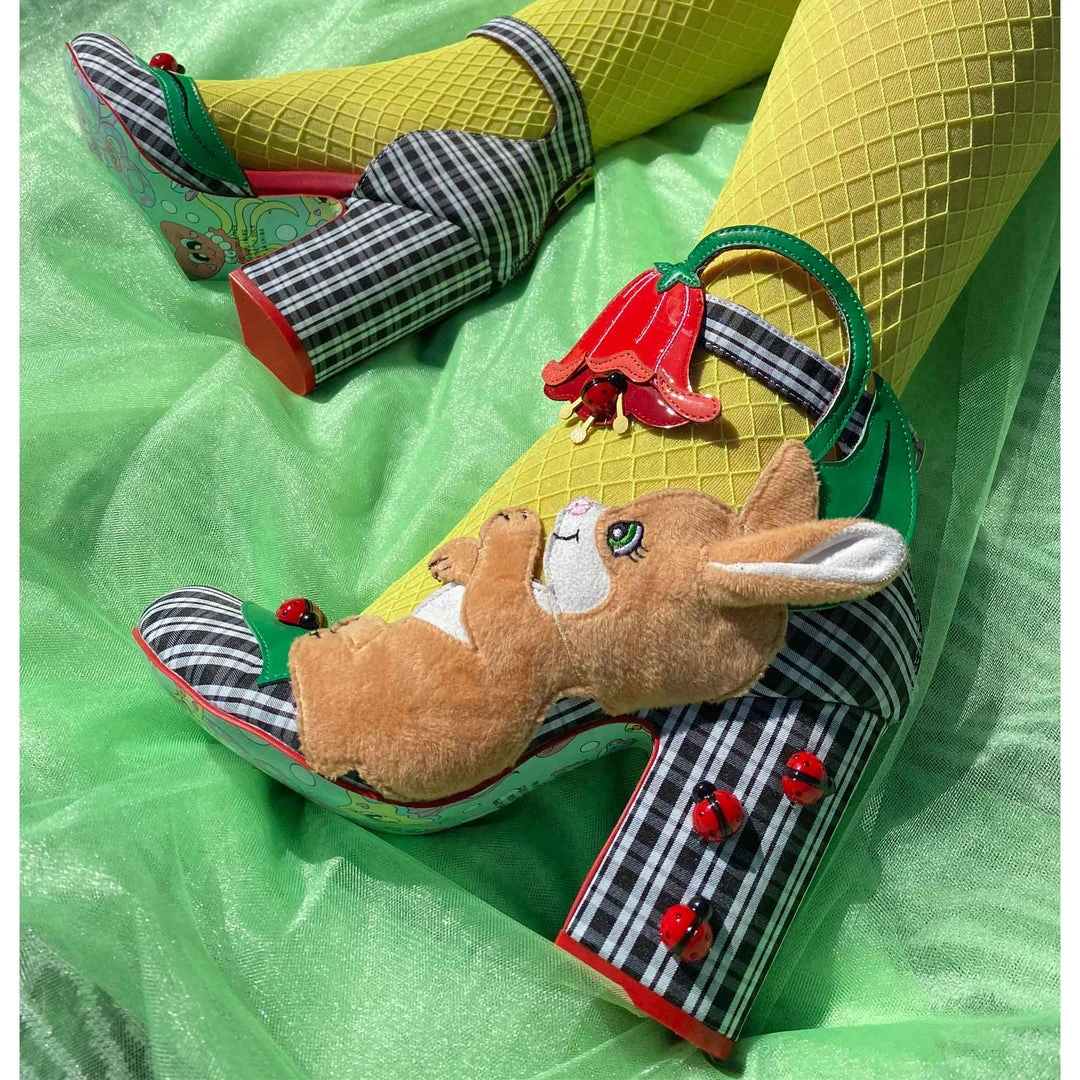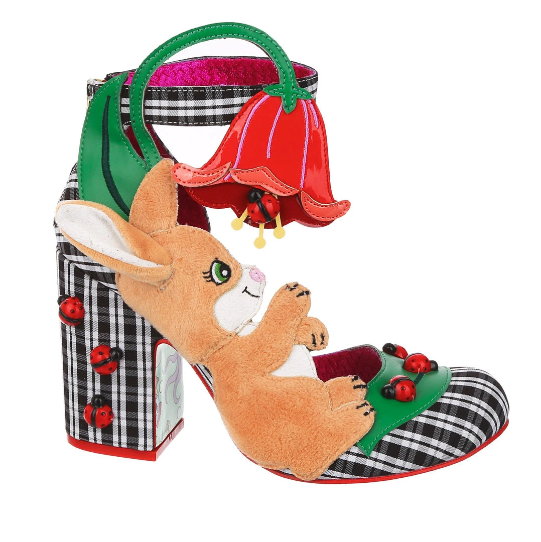 Oh to be a bunny playing with ladybirds on a flower… These whimsical wonders are one for all you animal lovers! A gorgeous chunky heel is wrapped in a classic black and white check, and dotted with adorable 3D ladybird charms! The ankle strap is combined with the large pink flower and also makes these beauties comfortable and wearable, whilst the fuzzy and adorable bunny on the side of the shoe is sure to make you smile!