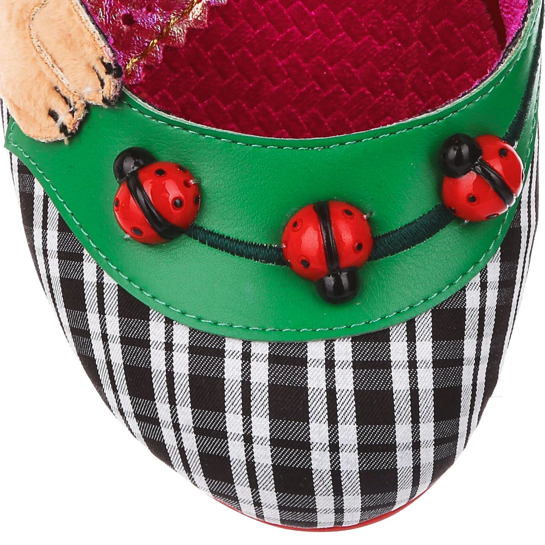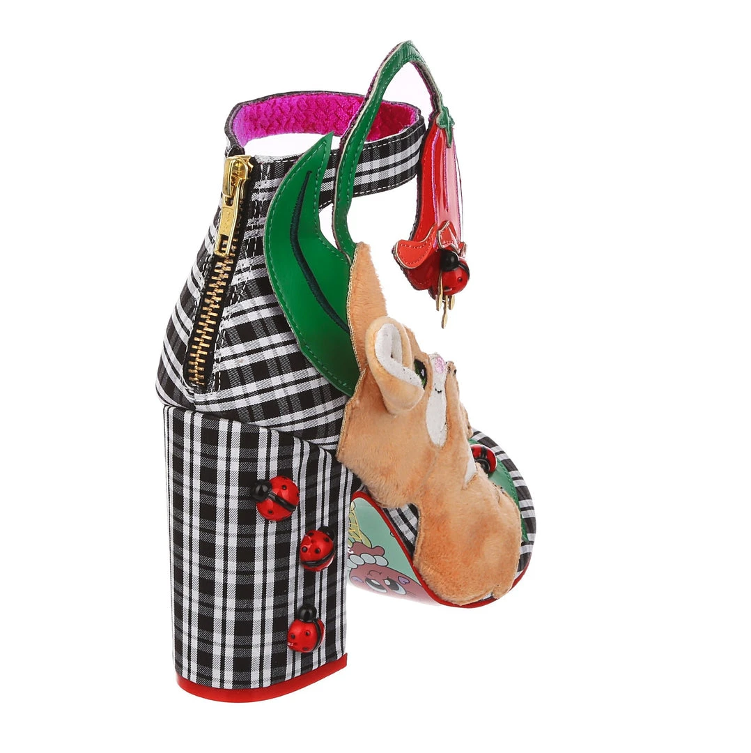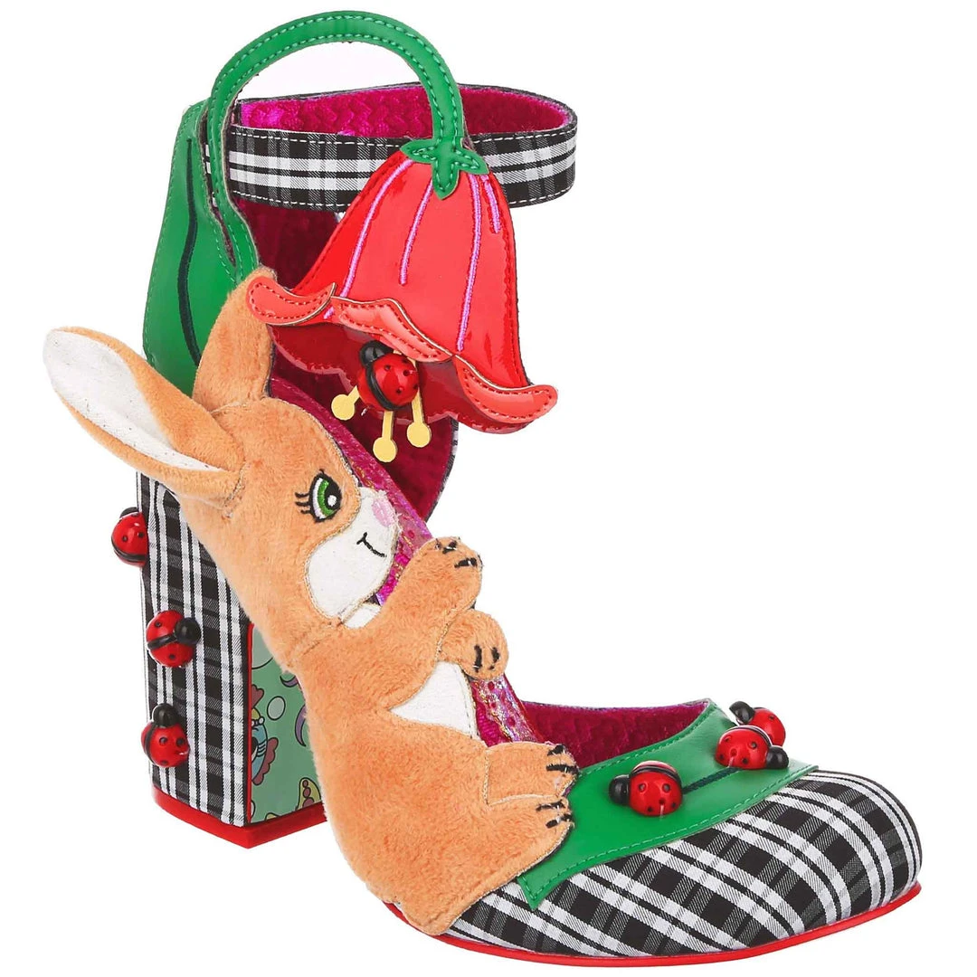 Oh to be a bunny playing with ladybirds on a flower… These whimsical wonders are one for all you animal lovers! A gorgeous chunky heel is wrapped in a classic black and white check, and dotted with adorable 3D ladybird charms! The ankle strap is combined with the large pink flower and also makes these beauties comfortable and wearable, whilst the fuzzy and adorable bunny on the side of the shoe is sure to make you smile!