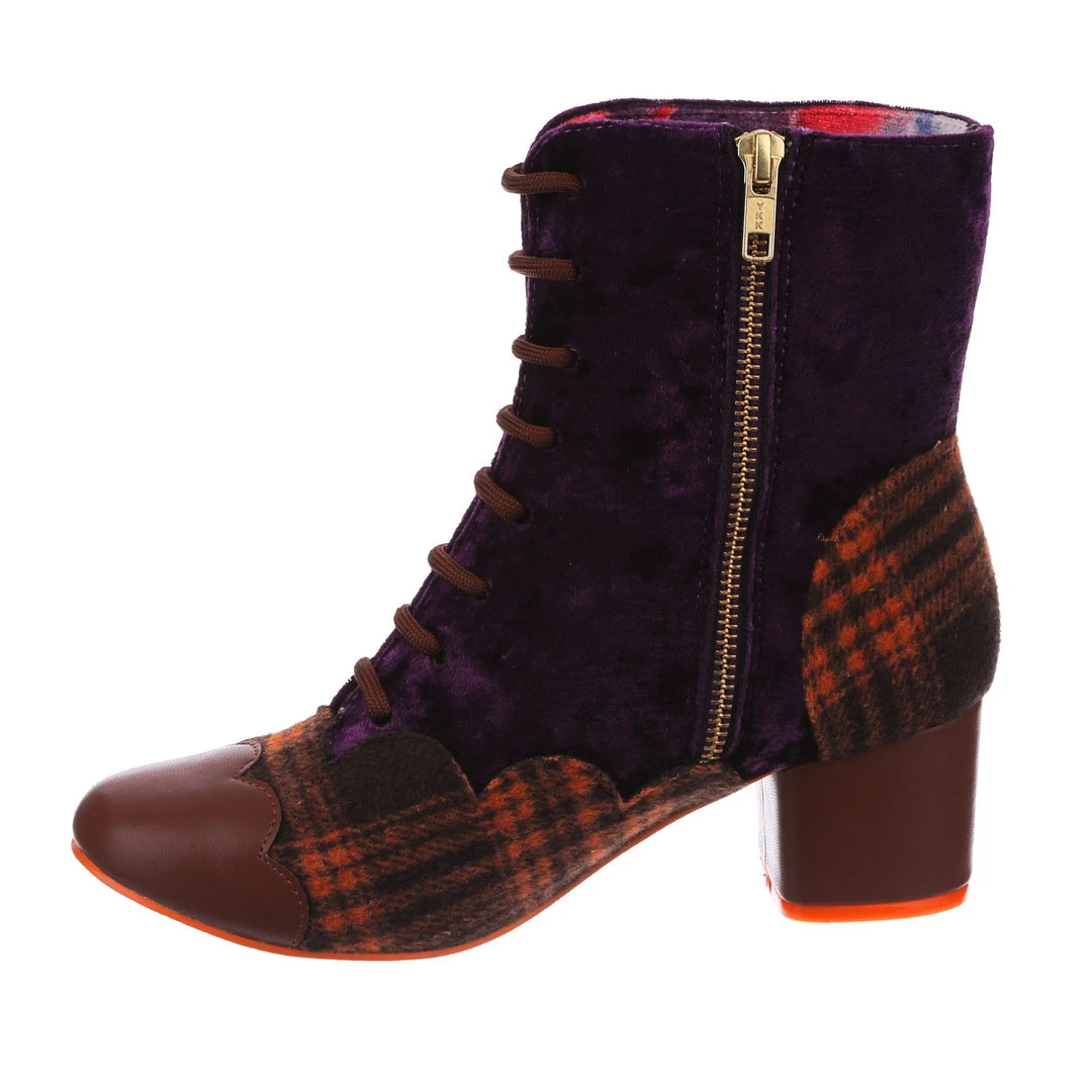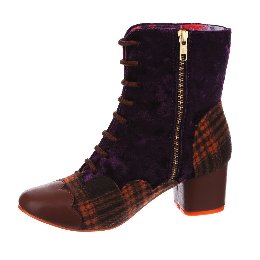 Wander through the forest and say hello to the wilderness! These adorable boots feature a 3D fluffy hedgehog, statement flowers and gorgeous floral embroidery. The whimsical orange tones of the flowers contrast beautifully to the purple velvet on the upper, and are harmonious with the cosy brown tone plaid which wraps around the rest of the boot. Lace up these beauties and have some fun today!
