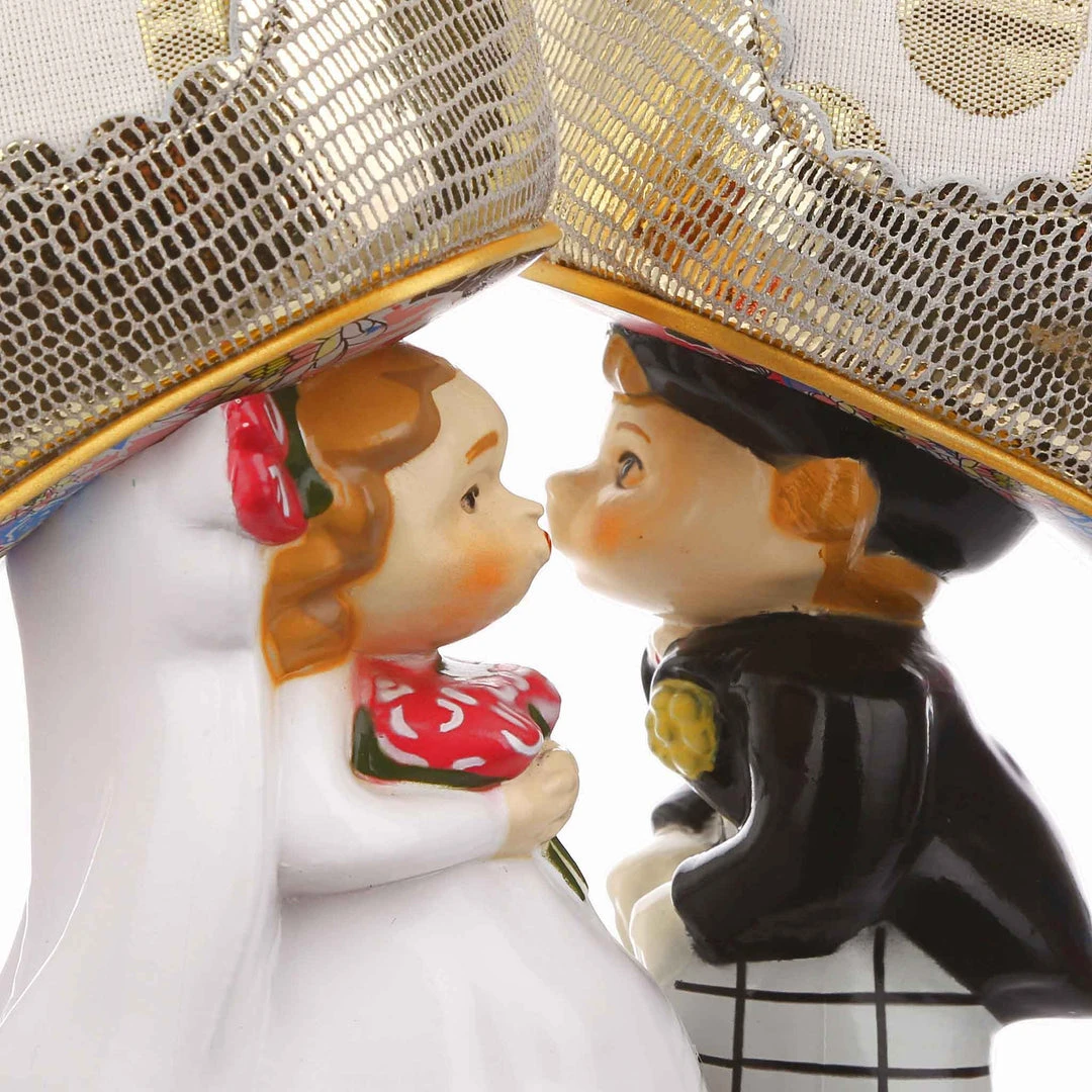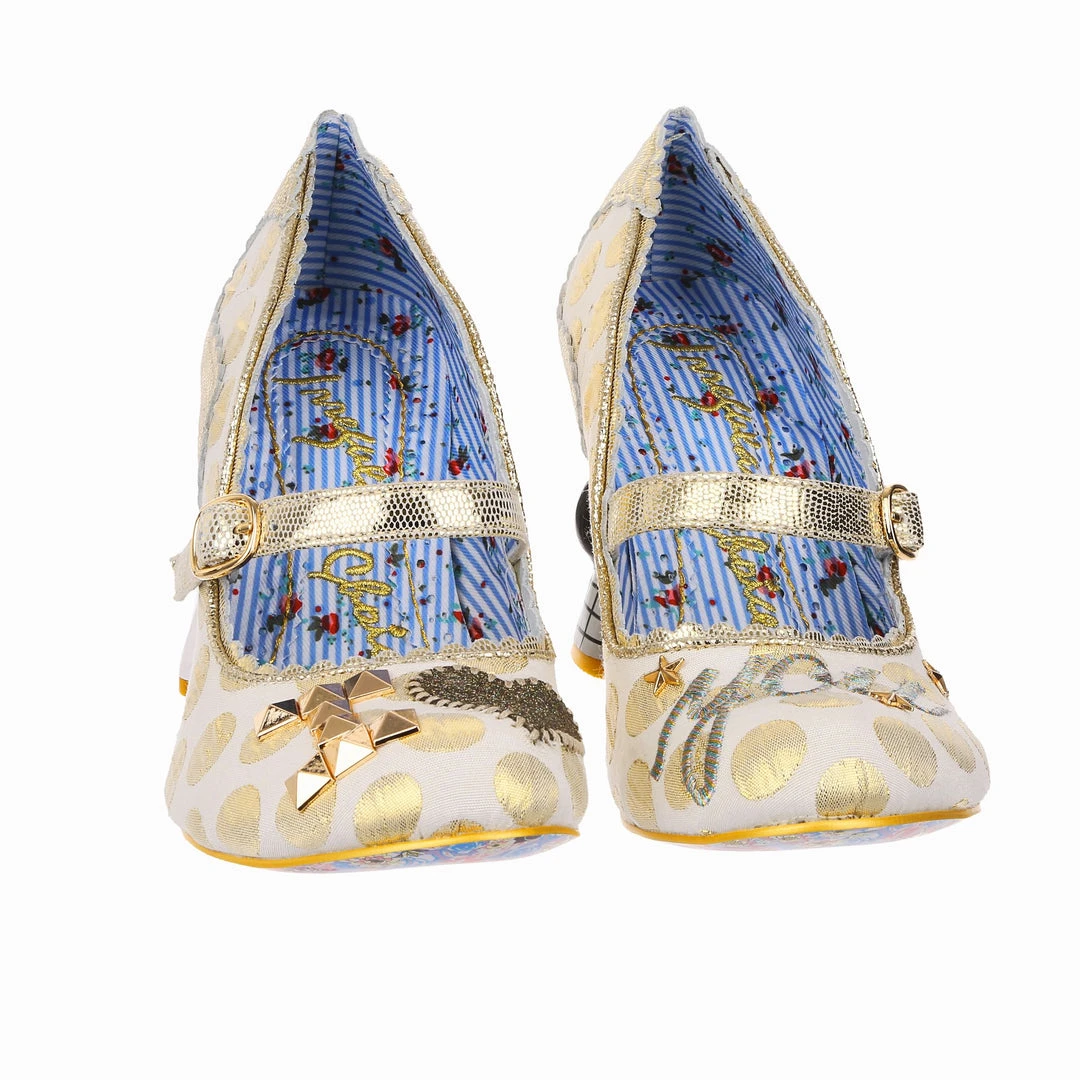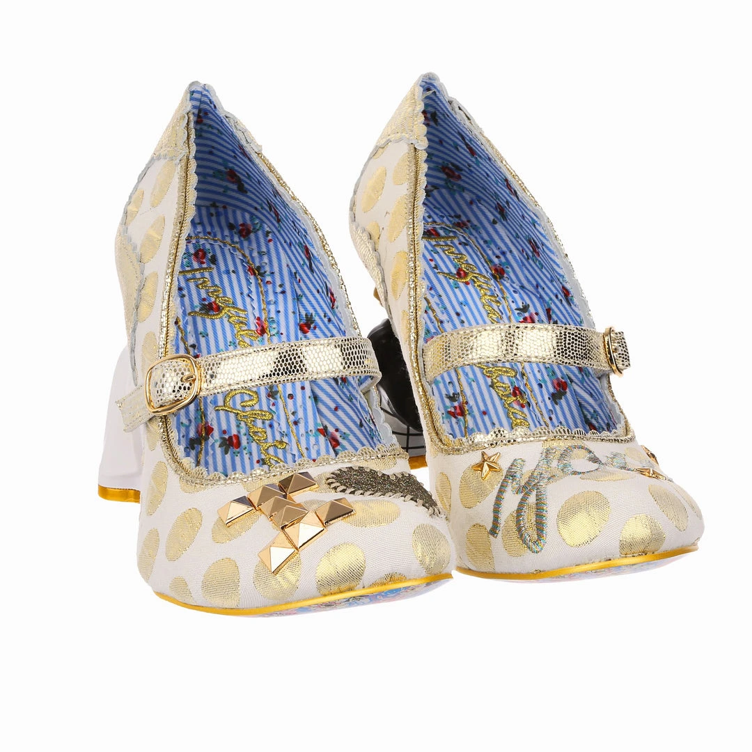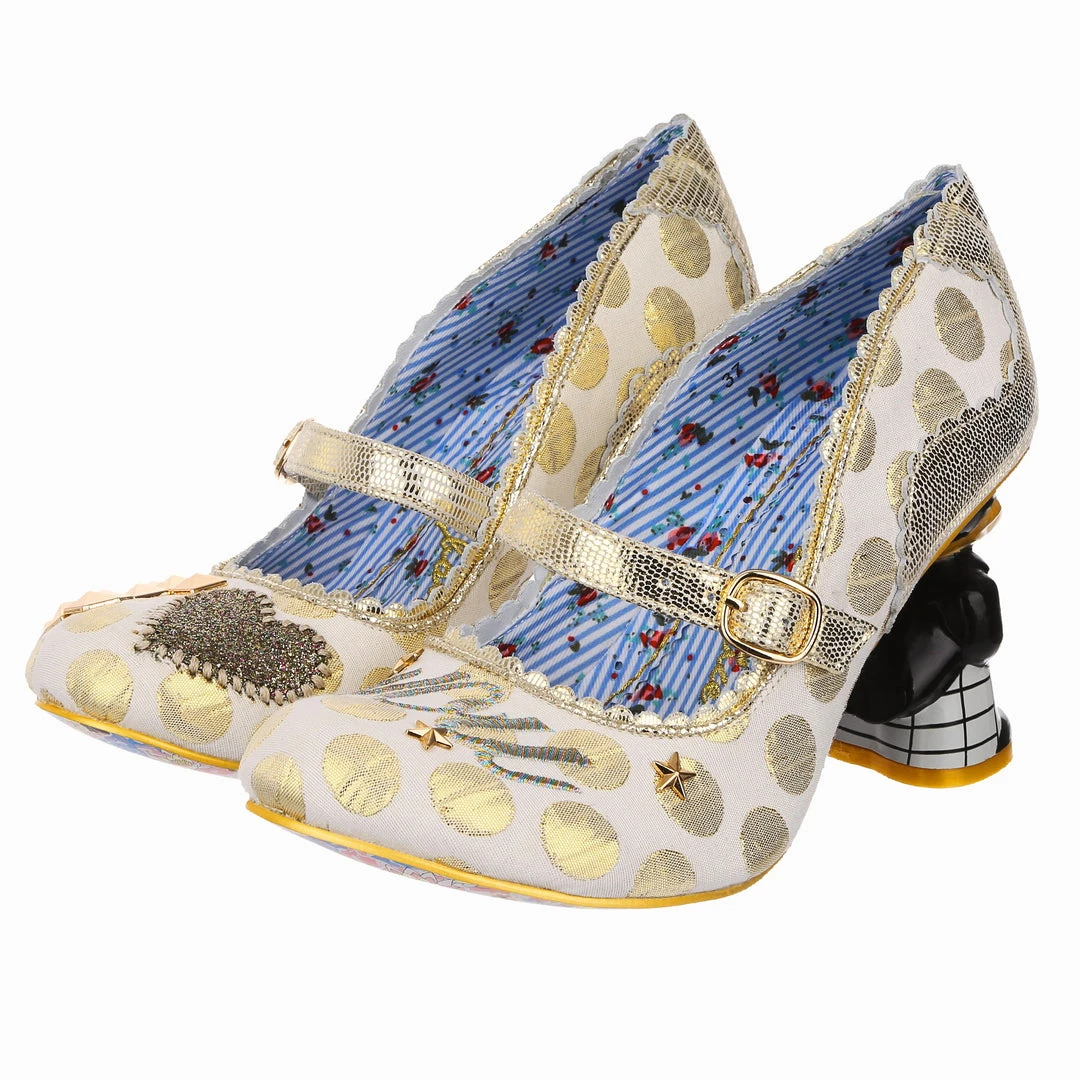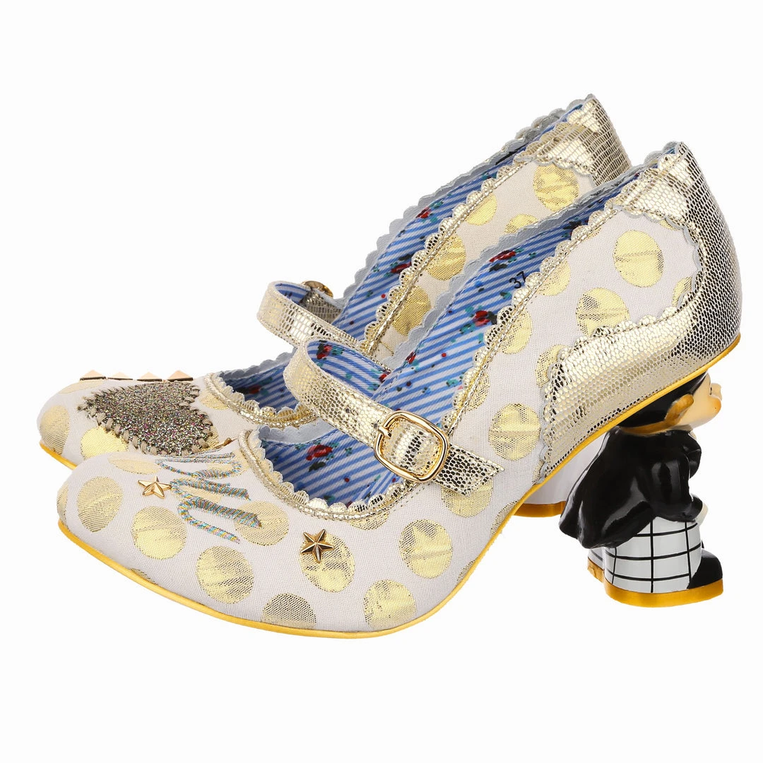 Say I love you with your shoes, literally! Wow guests as you walk down the aisle with bride and groom heels that are ready to say I do! Accented with matching metallic gold dots, edging and Mary-Jane strap, that fastens with a buckle. The ‘I ♡ You’ on the toe is a combination of shiny gold studs, appliquéd gold glitter heart and gold thread embroidery, covering all textural bases! The blushing bride and dapper groom heels really make these shoes stand out from the crowd, both are puckering up for their first kiss as Mr and Mrs. Make sure everyone knows how you feel with these stunning wedding shoes!