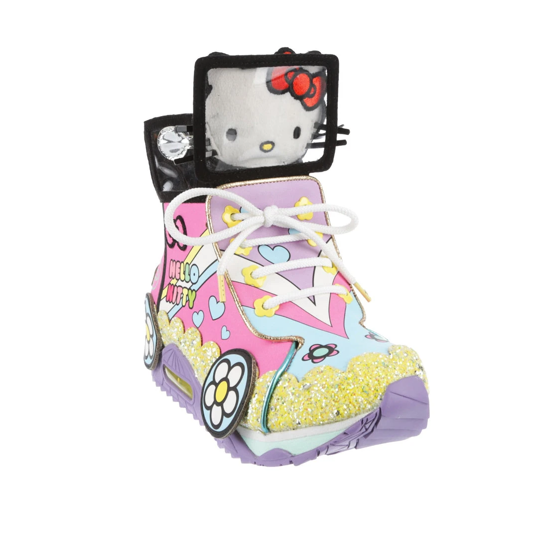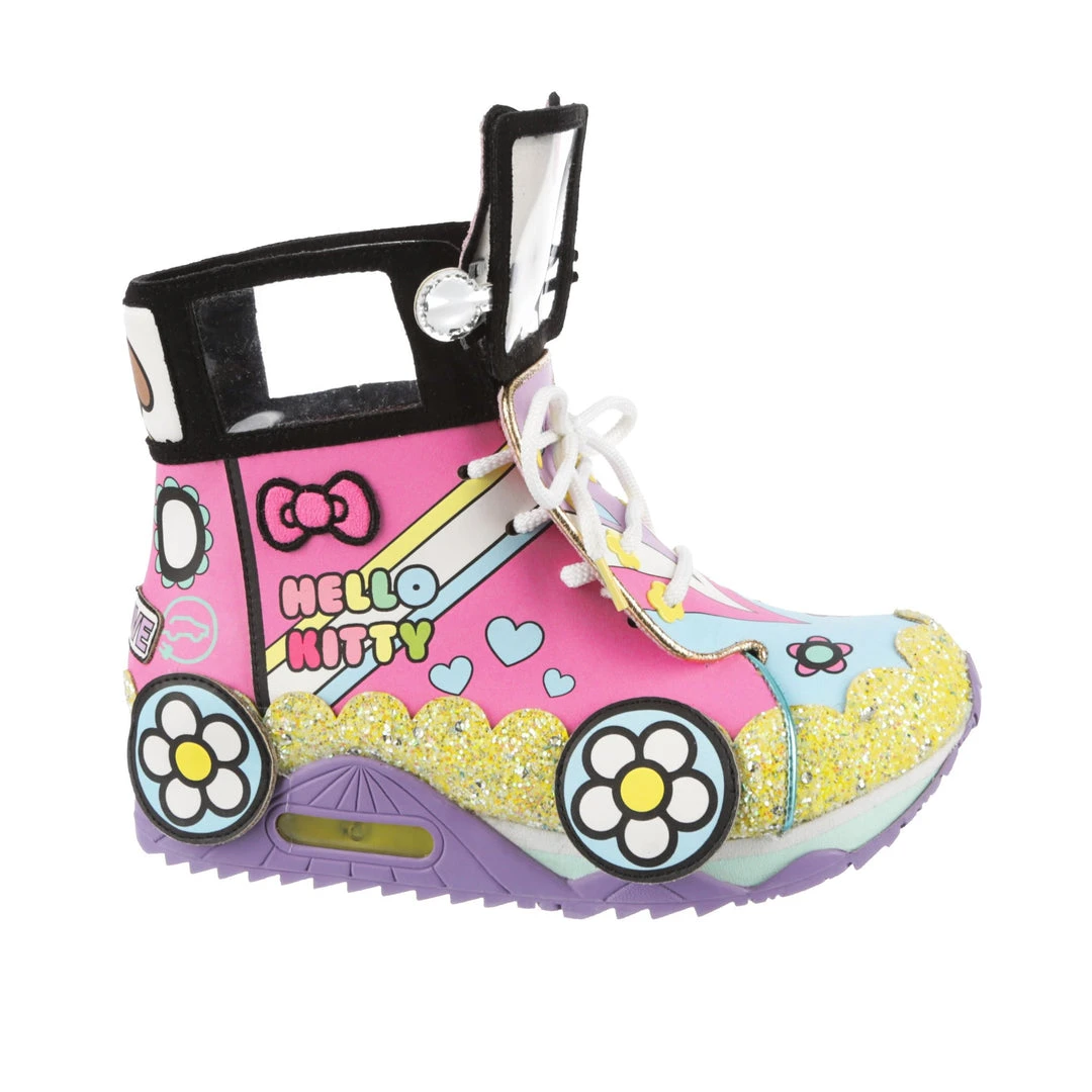 Beep! Beep! Hop in we are going shopping! These kitschy cute trainers are ready to take you on an adventure! Featuring Hello Kitty in the driver’s seat, and cute 3D flower wheels on a magical pastel patterned upper, these are a real showpiece! Make sure to add them to your collection today!