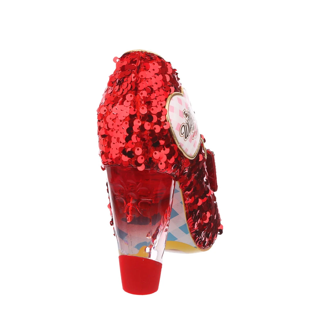 And you were there, and you were there… And these shoes were definitely there! We are talking about our dream wardrobe of course. A bit of a modern take on the Ruby Slippers™, these lucite heeled beauties are the perfect update to the iconic magic shoes! Dripping in ruby sequins, the front bow of these beauties twinkles and lights up with fabulous LED lights! The hearts on the back feature the Wizard of Oz™ logo, as well as a movie photo framed by stunning baby pink gingham. Make sure you add them to your life before they are whisked away by a tornado!
