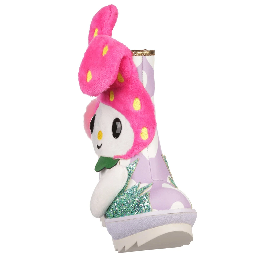 Hop skip and jump your way to cute in these adorable boots! Featuring My Melody, these boots are a mix of metallics, plush and fluffy textures with a 3D pom pom tail and floppy ears too! The chunky heel and tread make these a striking pair of shoes, perfect to take any outfit to the next level and also show your love of My Melody! Add them to your wardrobe today!