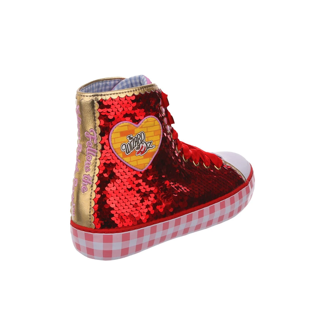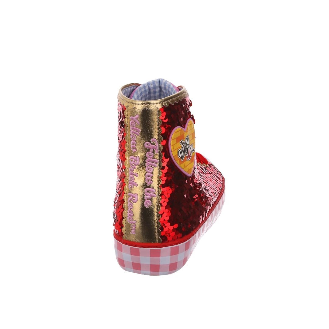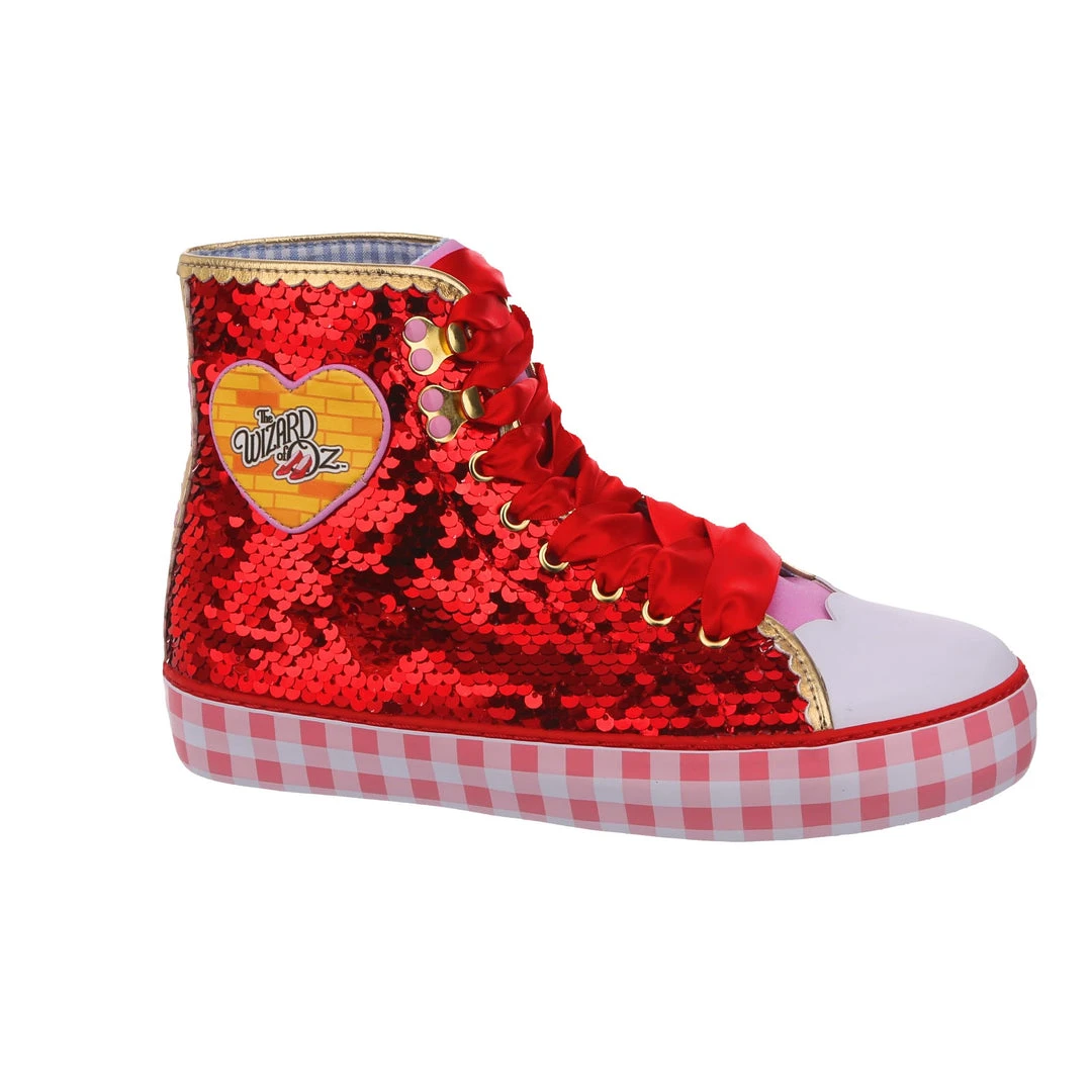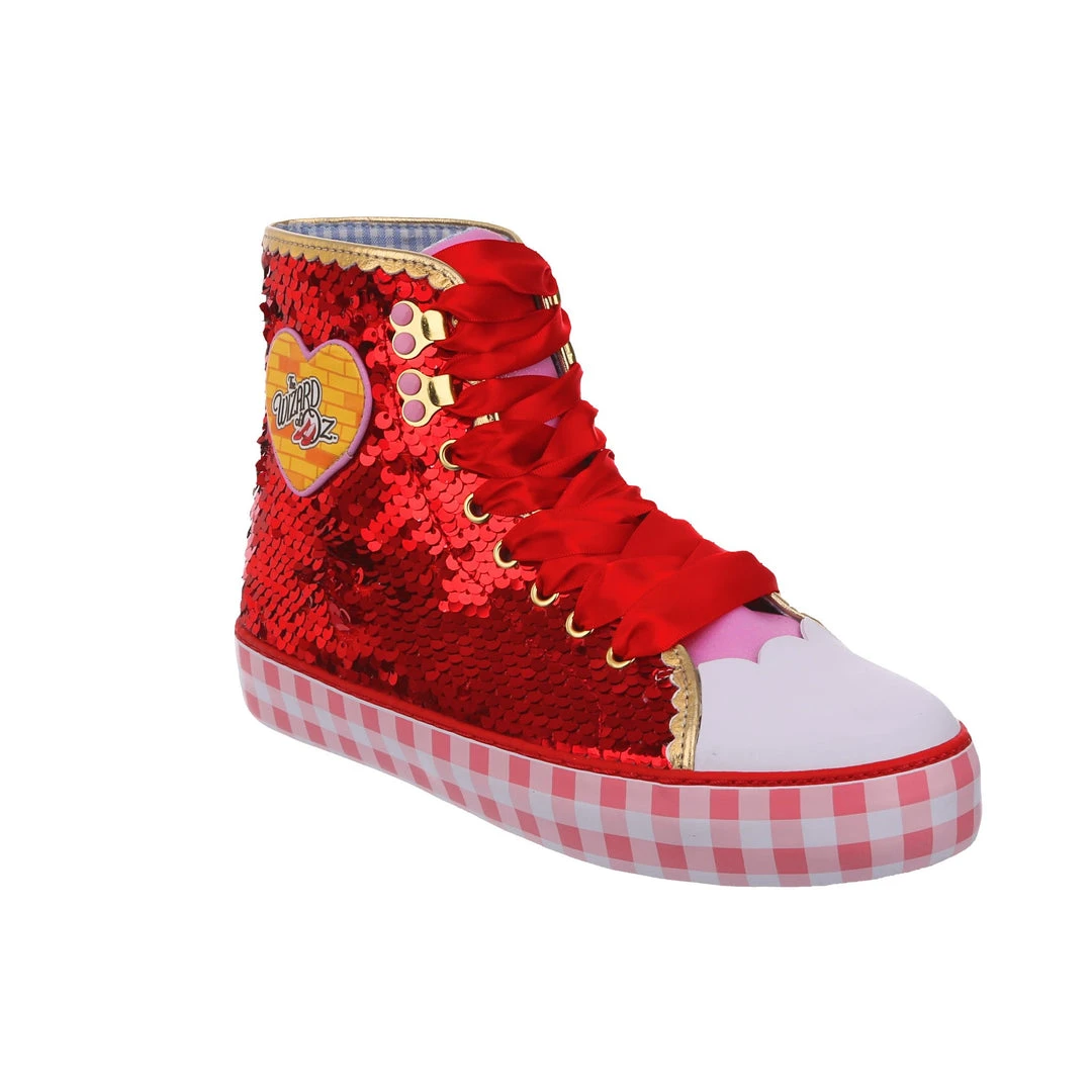 Want all the magic of the Ruby Slippers™, but not really a heels person? We got you covered! These ruby sneakers take all that glitz, glamour and gorgeousness and give it a wearable street style twist! With a pink gingham sole for a bit of extra Dorothy™ dazzle, and hearts on the side featuring the Wizard of Oz™ logo as well as a movie still for that extra nostalgia. Perfect to take your adventure on the go, get ready to click your heels three times!