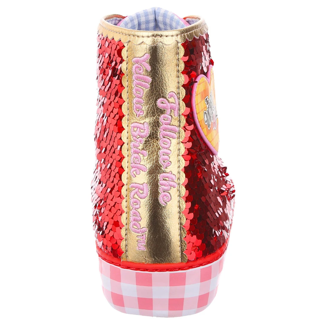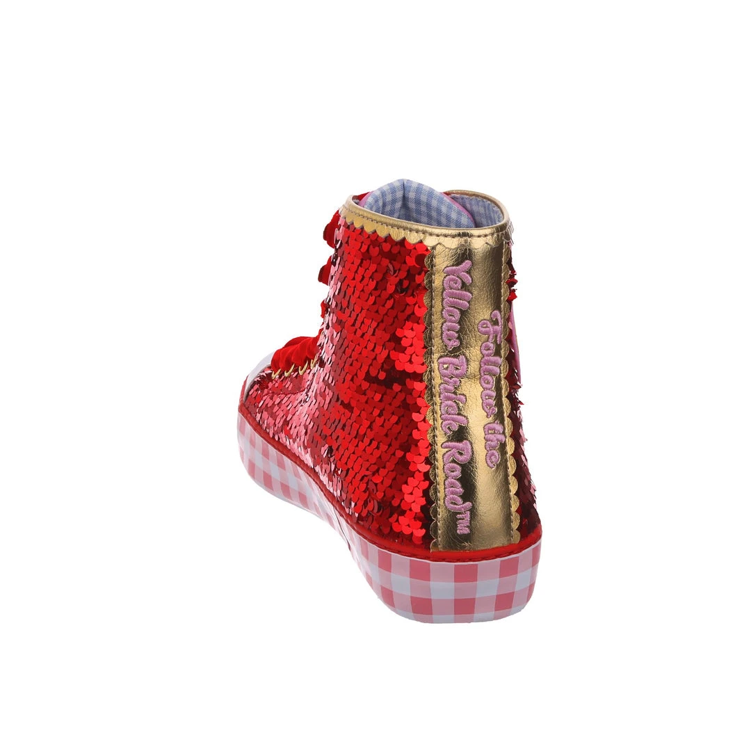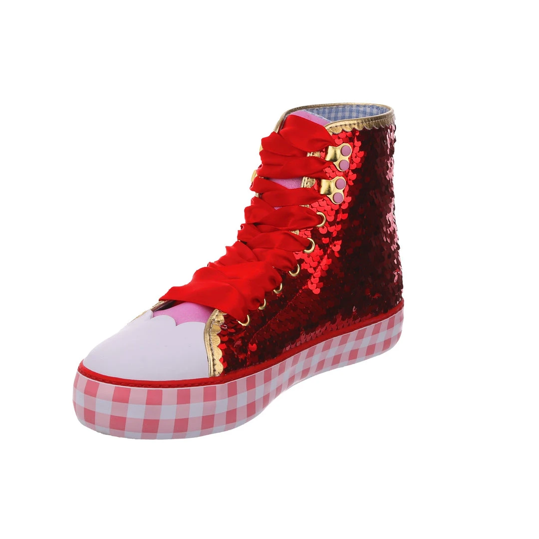 Want all the magic of the Ruby Slippers™, but not really a heels person? We got you covered! These ruby sneakers take all that glitz, glamour and gorgeousness and give it a wearable street style twist! With a pink gingham sole for a bit of extra Dorothy™ dazzle, and hearts on the side featuring the Wizard of Oz™ logo as well as a movie still for that extra nostalgia. Perfect to take your adventure on the go, get ready to click your heels three times!