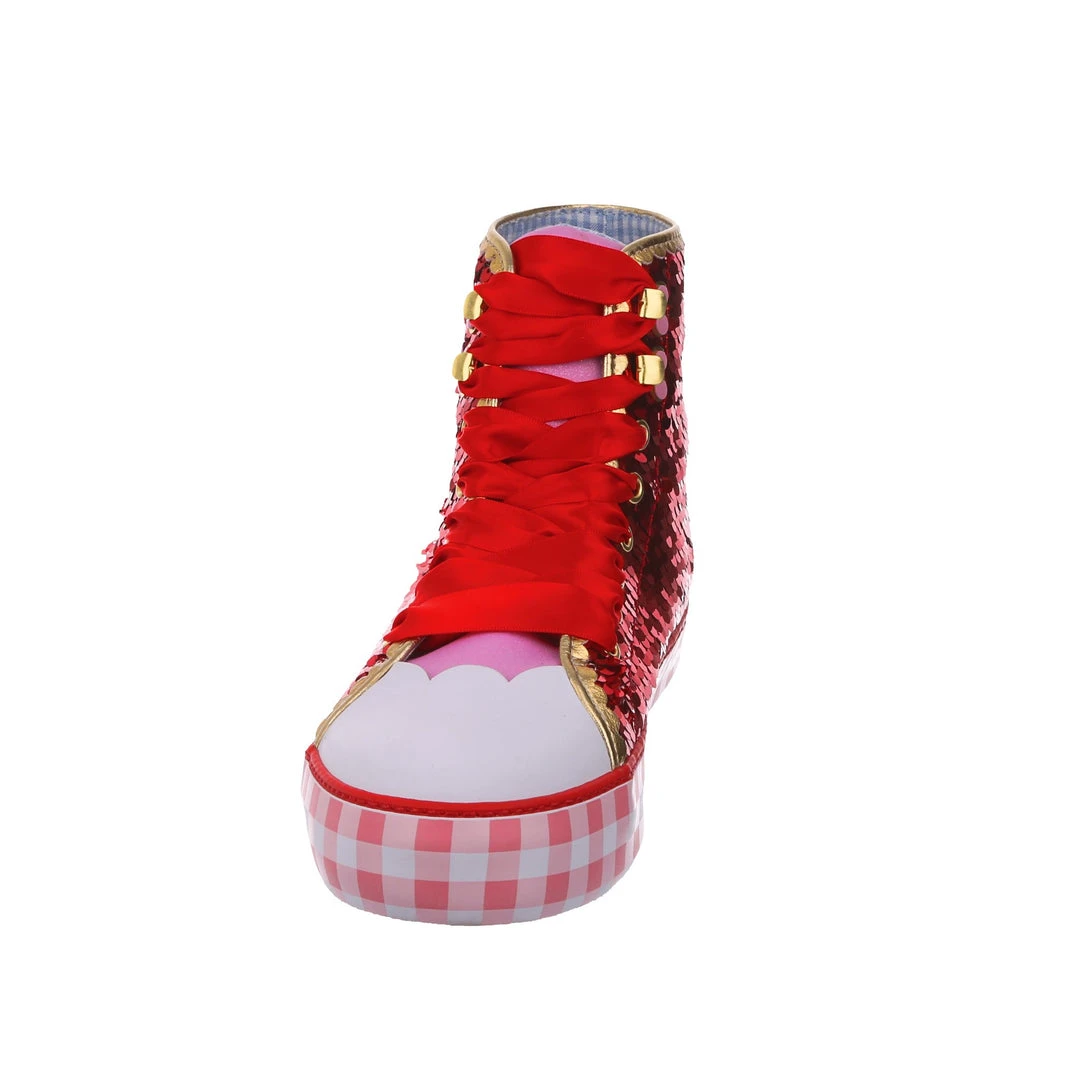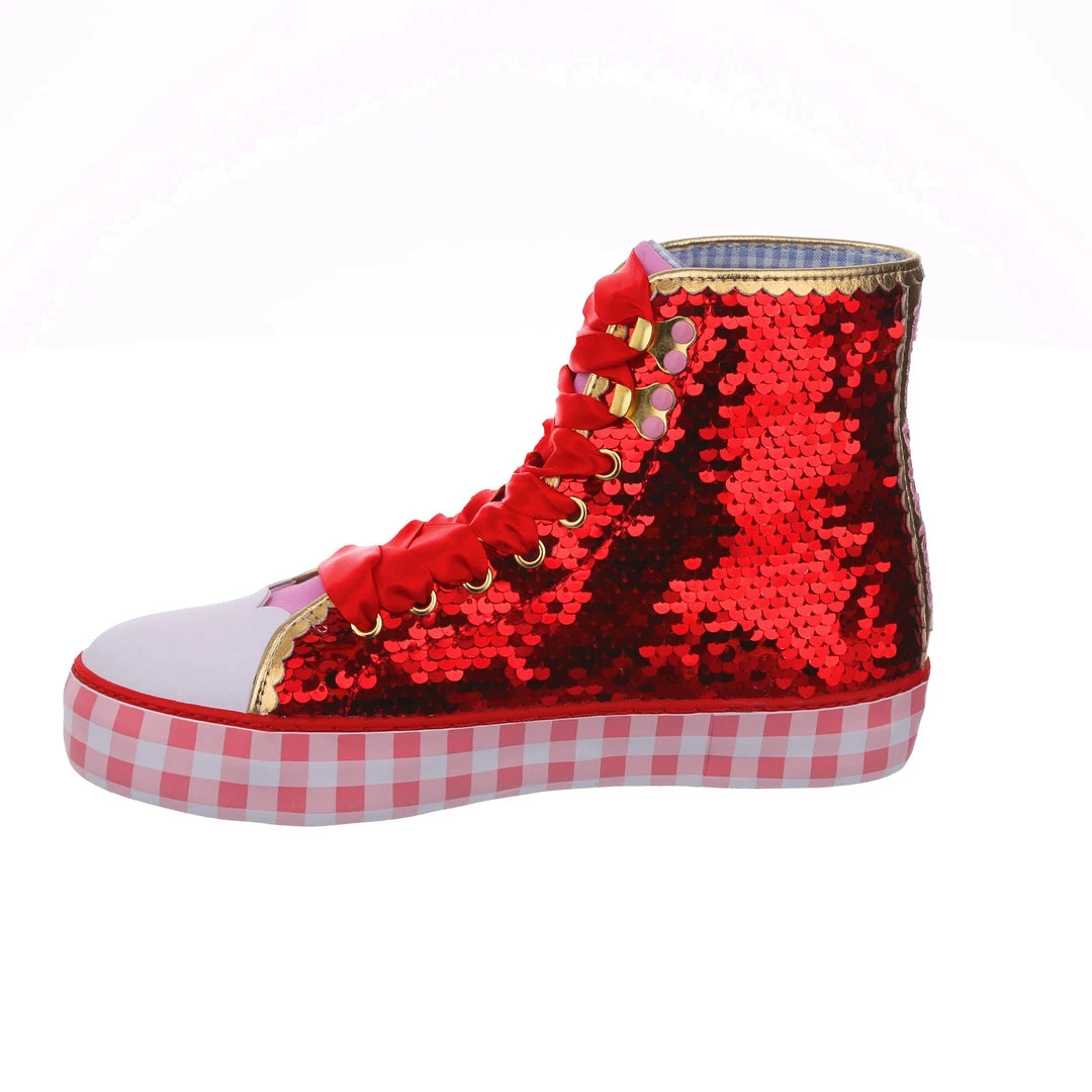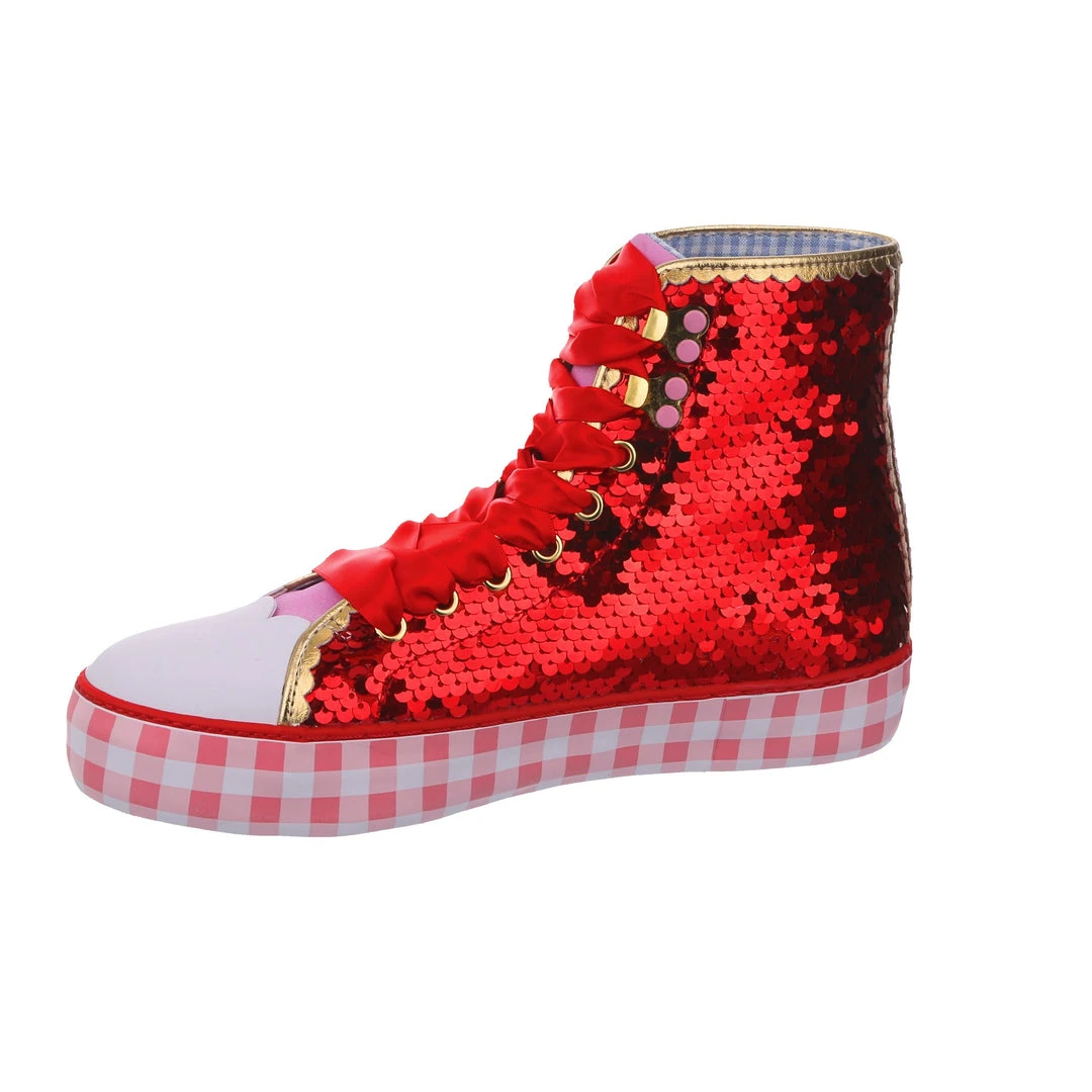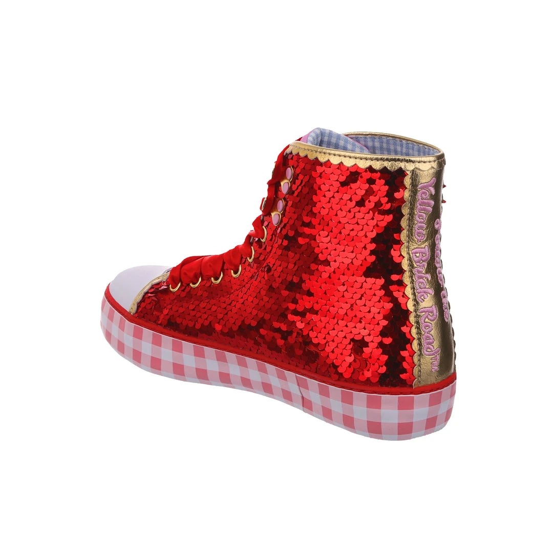 Want all the magic of the Ruby Slippers™, but not really a heels person? We got you covered! These ruby sneakers take all that glitz, glamour and gorgeousness and give it a wearable street style twist! With a pink gingham sole for a bit of extra Dorothy™ dazzle, and hearts on the side featuring the Wizard of Oz™ logo as well as a movie still for that extra nostalgia. Perfect to take your adventure on the go, get ready to click your heels three times!