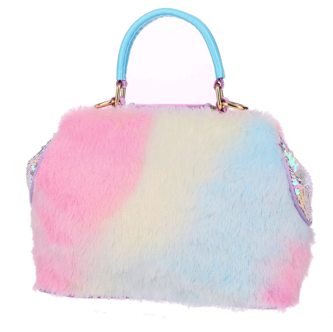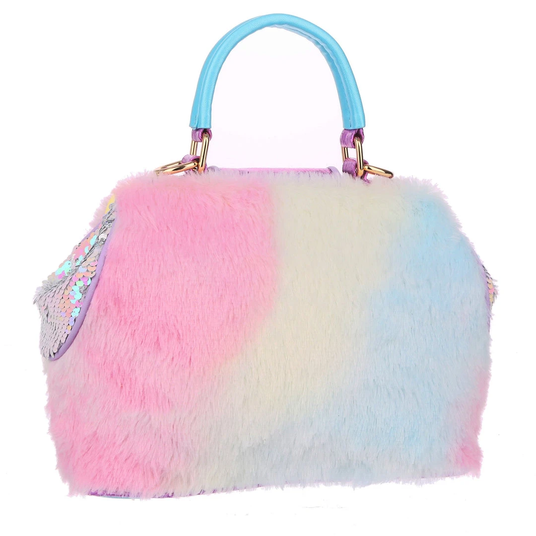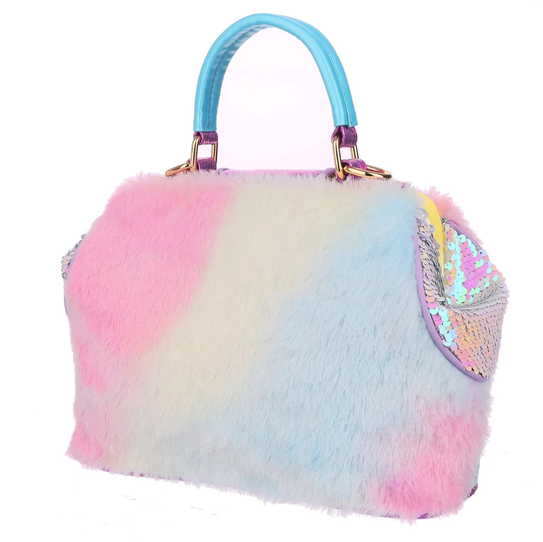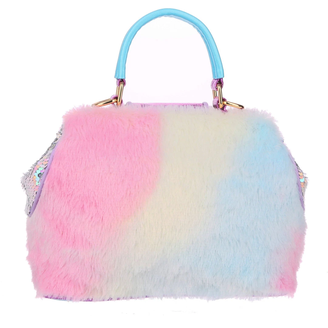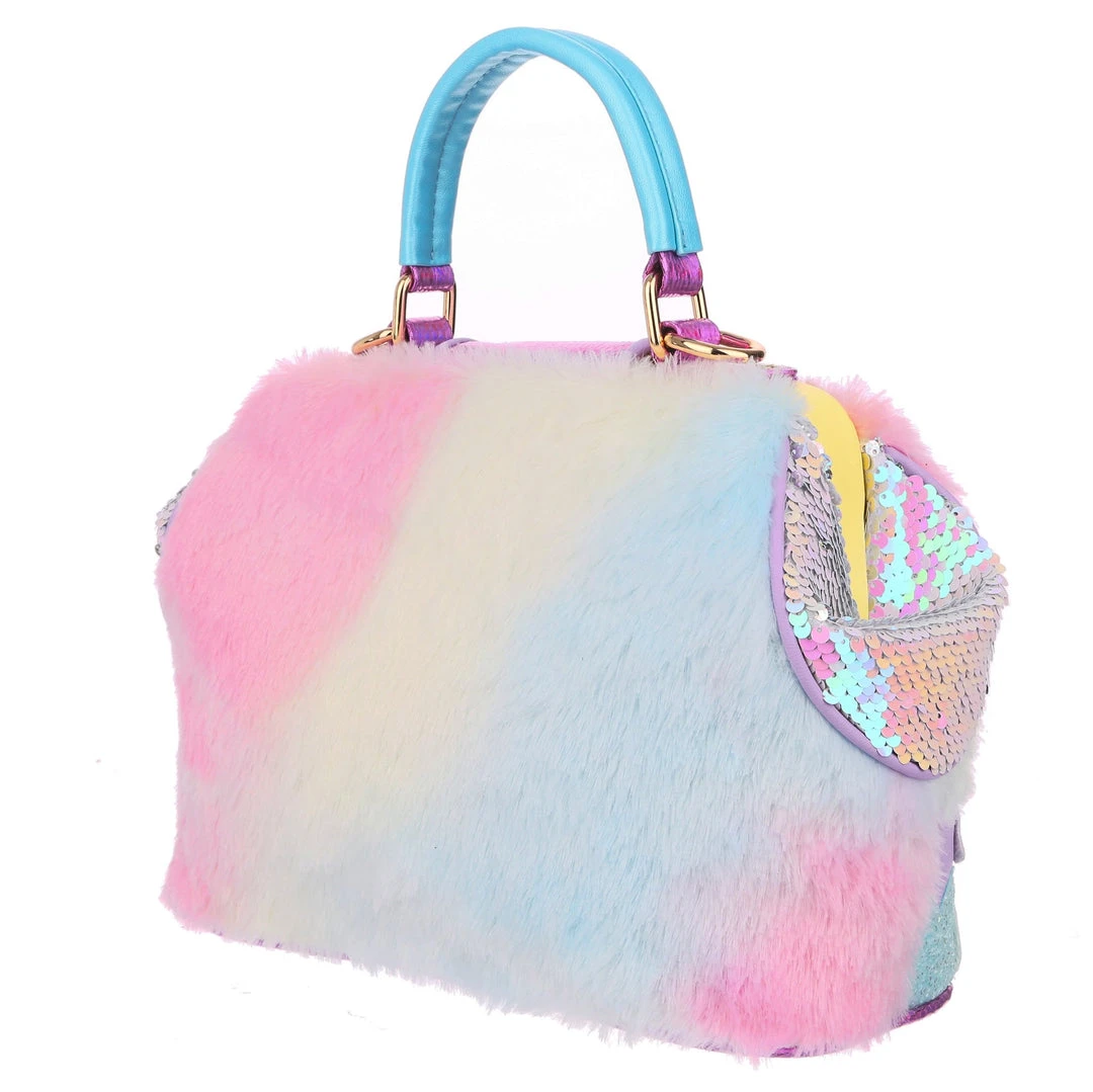 Give yourself a little fairy magic with this darling handbag! A fabulous pastel ombre faux fur is topped with matching scalloped panelling along the bottom and the fabulous Jigglypuff and Togepi are in pride of place on the front. The magnetic fastening features a stunning lenticular image of a star shaped Poké Ball, which shifts to the cutest Sylveon ever! Complete with a top handle, as well as a detachable removable shoulder strap, this bag is sure to give you a little boost whenever you wear it! Featuring Jigglypuff, Togepi, & Sylveon.