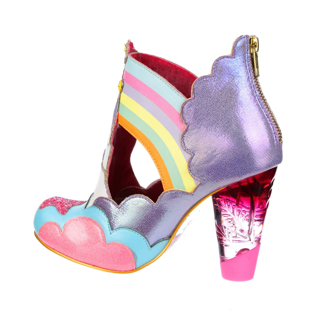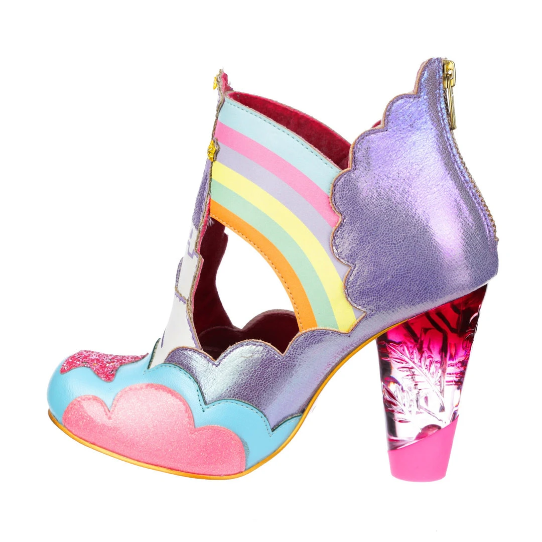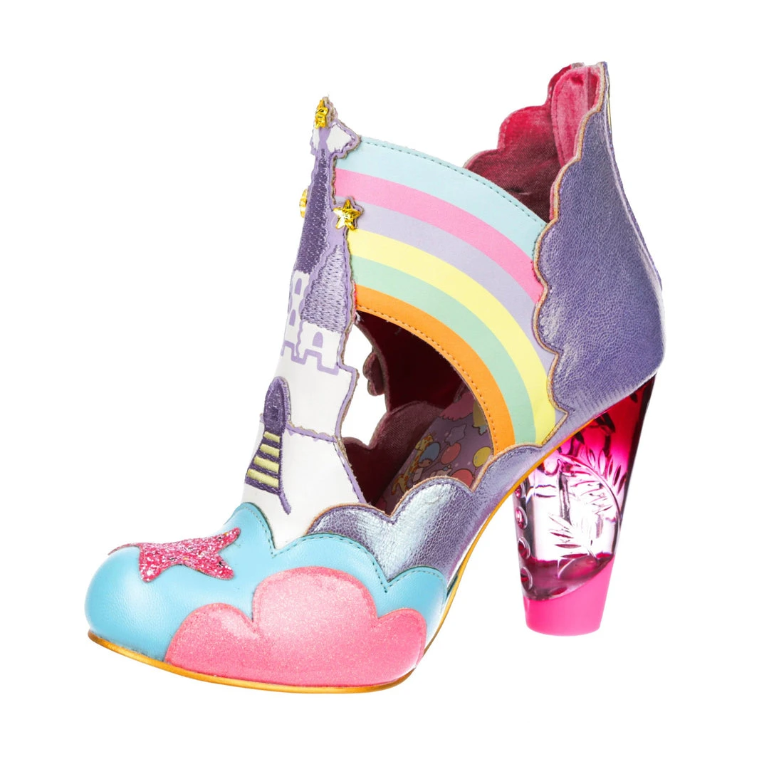 Rainbows, clouds, castles and dreams – that sums these beauties up! Kiki and Lala are flying across the side of the pastel metallic and flitter textures that make up these shoes! A magical castle sits in the middle of each shoe, creating a beautiful silhouette. which is complemented by our ombre lucite heel! Make sure to add these to your collection today!