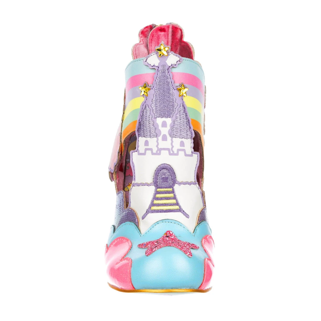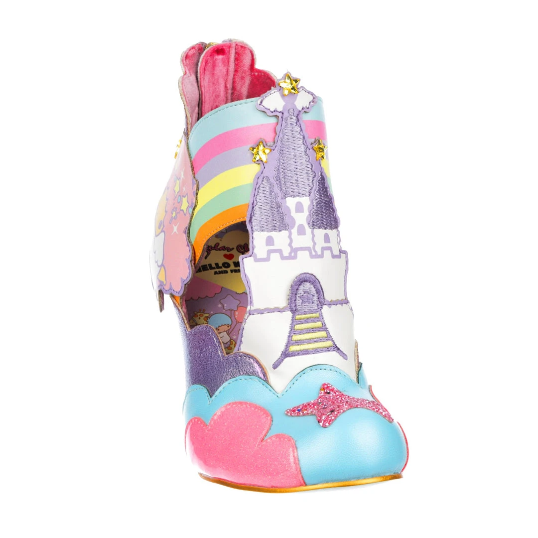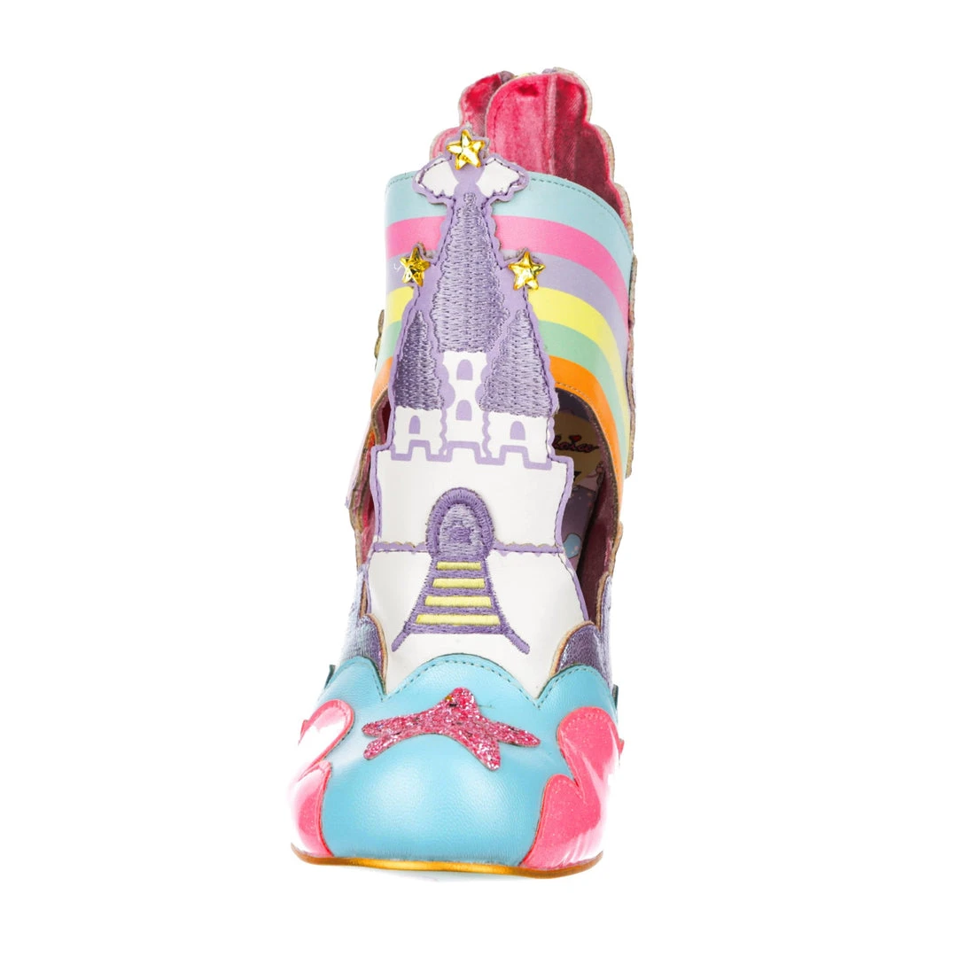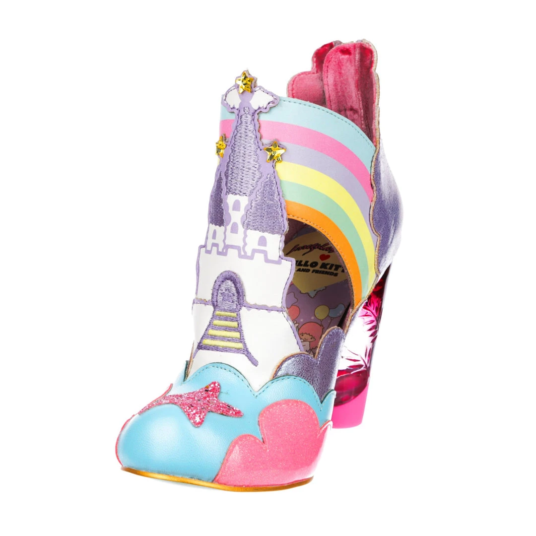 Rainbows, clouds, castles and dreams – that sums these beauties up! Kiki and Lala are flying across the side of the pastel metallic and flitter textures that make up these shoes! A magical castle sits in the middle of each shoe, creating a beautiful silhouette. which is complemented by our ombre lucite heel! Make sure to add these to your collection today!