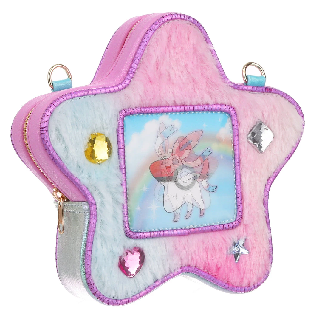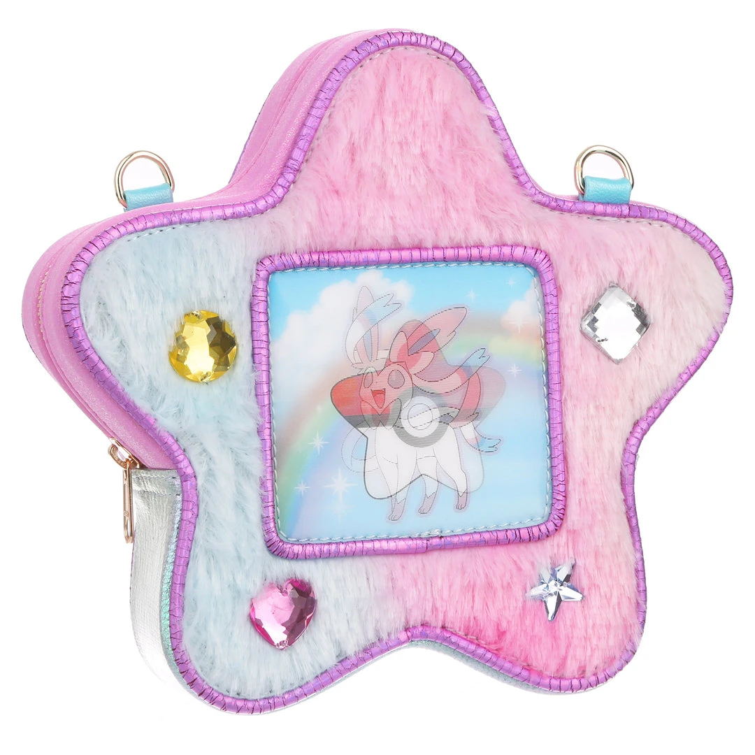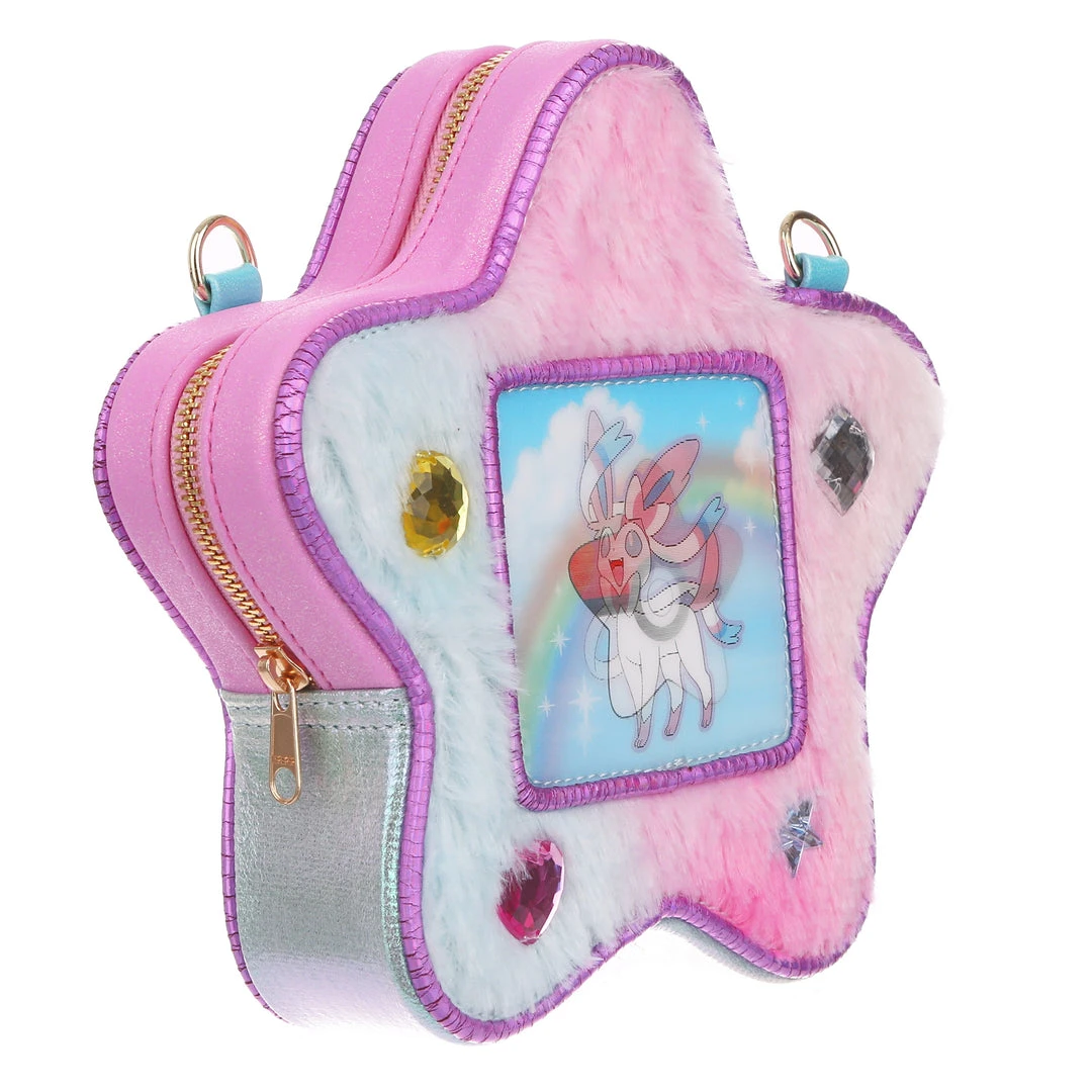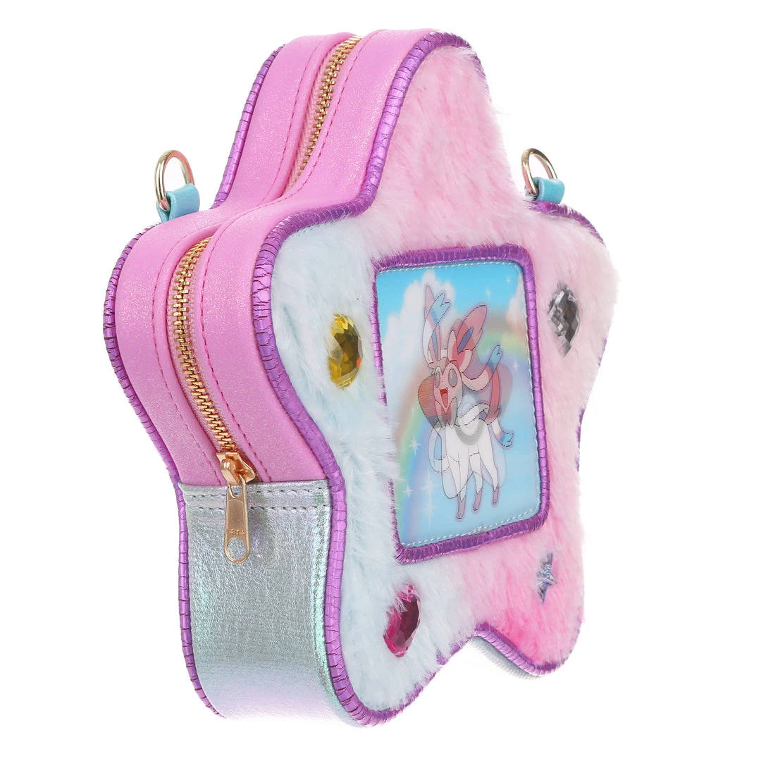 The star of your collection – this fluffy mini bag is perfectly shaped and adorned with fabulous metallic gem details. An amazing little lenticular image features a Poké Ball and Sylveon, it magically flips between the two! Fastened with a zip and fully lined, this cutie is not to be missed! Featuring Jigglypuff & Sylveon.