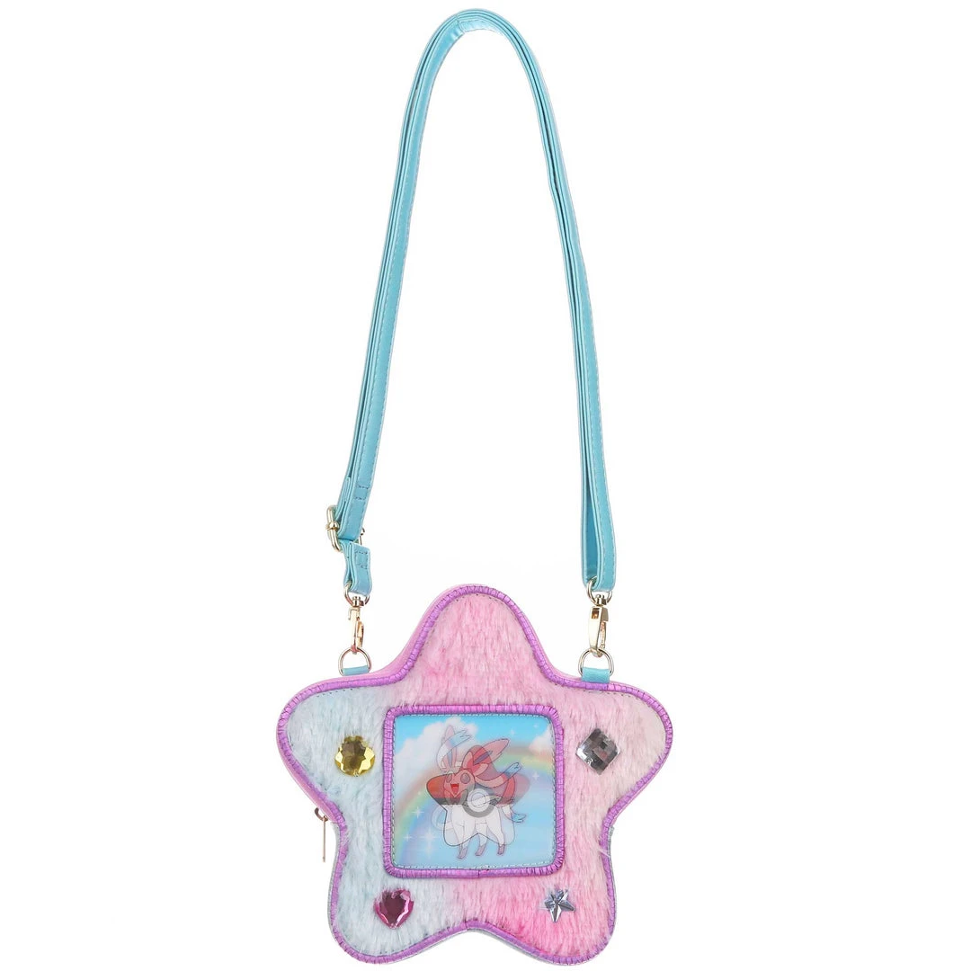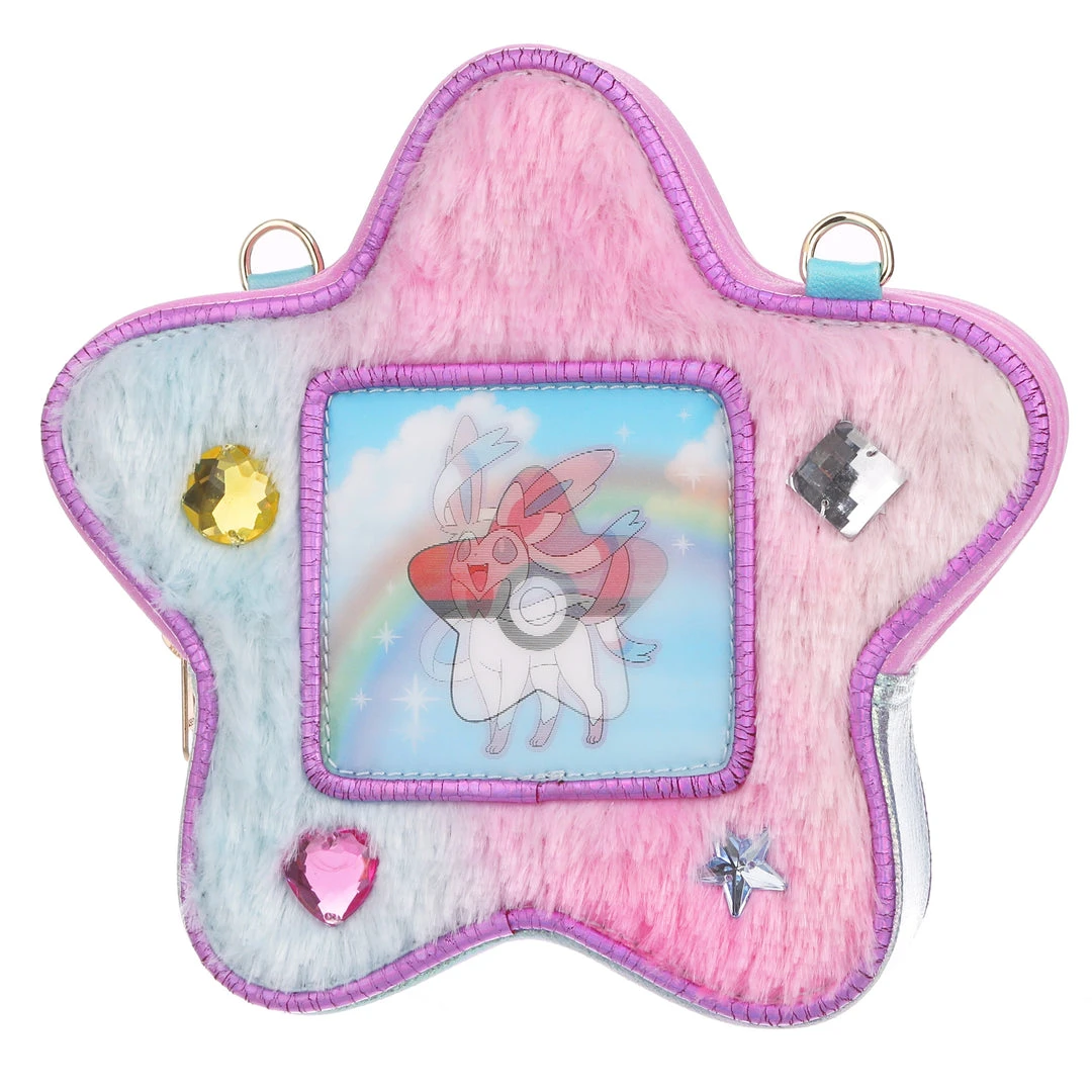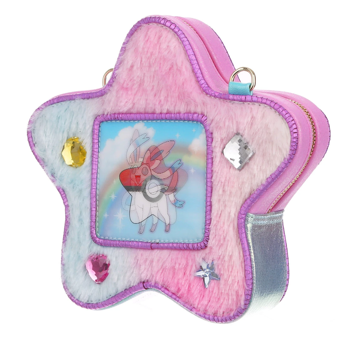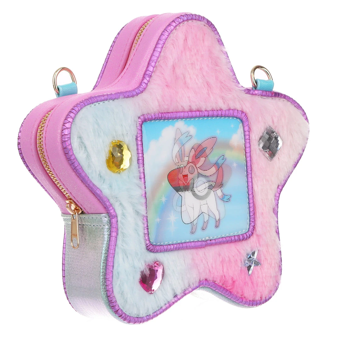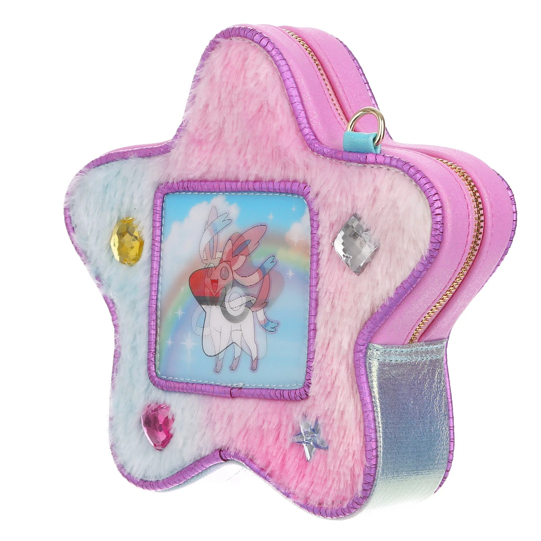 The star of your collection – this fluffy mini bag is perfectly shaped and adorned with fabulous metallic gem details. An amazing little lenticular image features a Poké Ball and Sylveon, it magically flips between the two! Fastened with a zip and fully lined, this cutie is not to be missed! Featuring Jigglypuff & Sylveon.