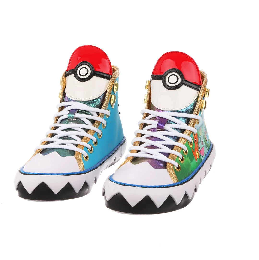 Want to show your love for Pokémon on the go? These sneakers are the perfect comfy cool addition to your wardrobe. Featuring a classic athletic silhouette with a graphic twist, the zig-zag pattern of the sole is a great contrast to the striking gold trim, and of course, the adorable Pokémon print on the side! Add them to your trainers kit today, before they disappear into the long grass! Featuring Pikachu, Butterfree, Squirtle, Bulbasaur, & Charmander.