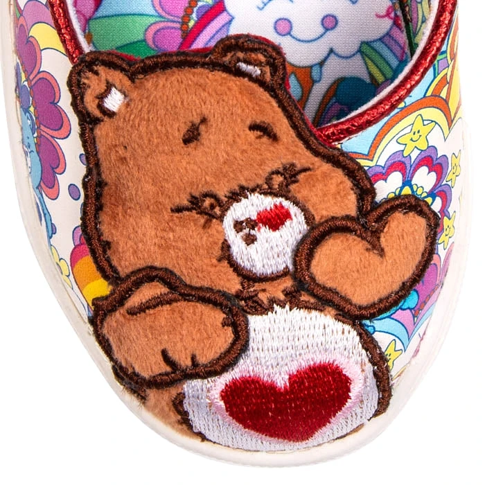 Spread the love and hug it out in a pair of these adorable kids flats. Tenderheart Bear and Share Bear adorn these charming little shoes whilst the Mary Jane style hook and loop fastening and a Care Bear printed pattern make these perfect addition to your little bear’s attire.