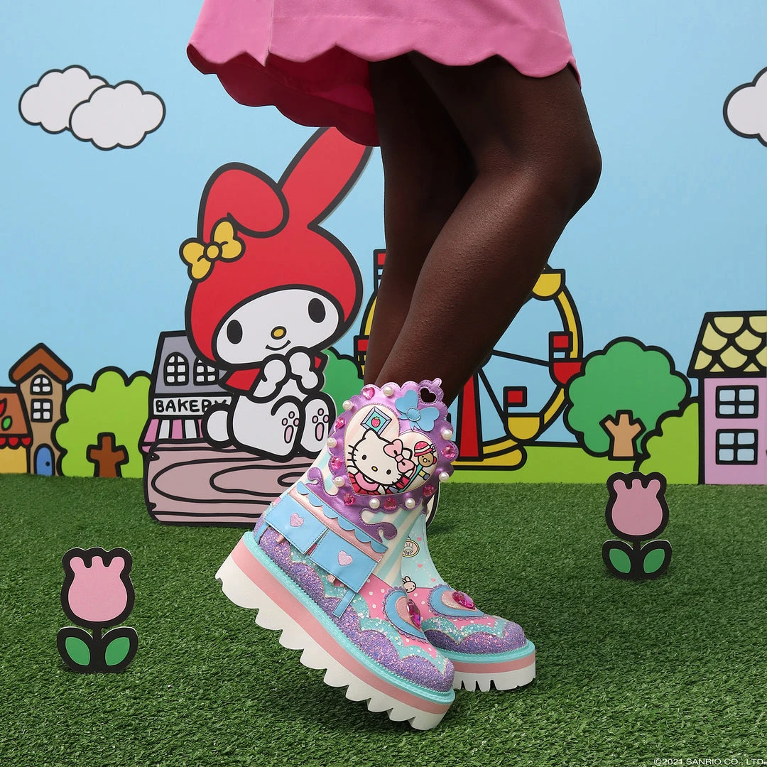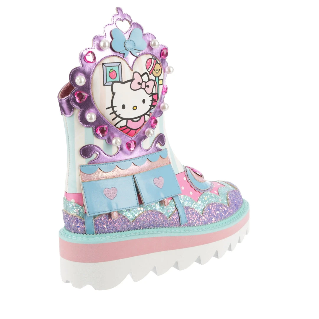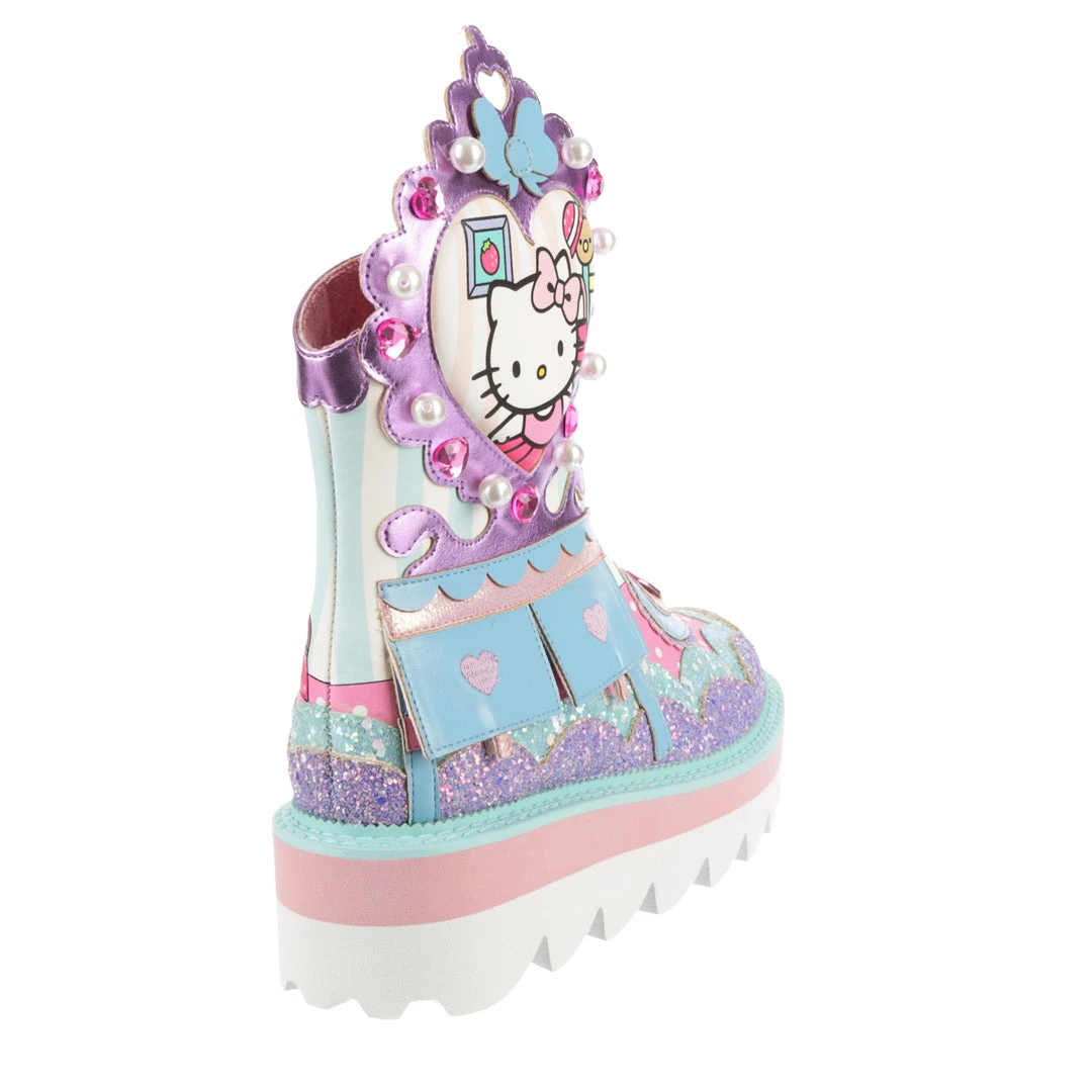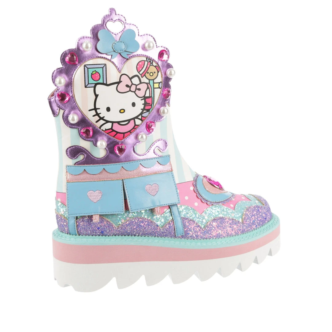 Getting ready can be so much fun, especially with a friend! These adorable boots feature Hello Kitty and My Melody in heart-shaped mirrors, surrounded by stunning pearls and gems! Open up the drawers underneath to see a cute surprise! Swathed in pastel colours and metallic textures – these statement boots aren’t to be missed!