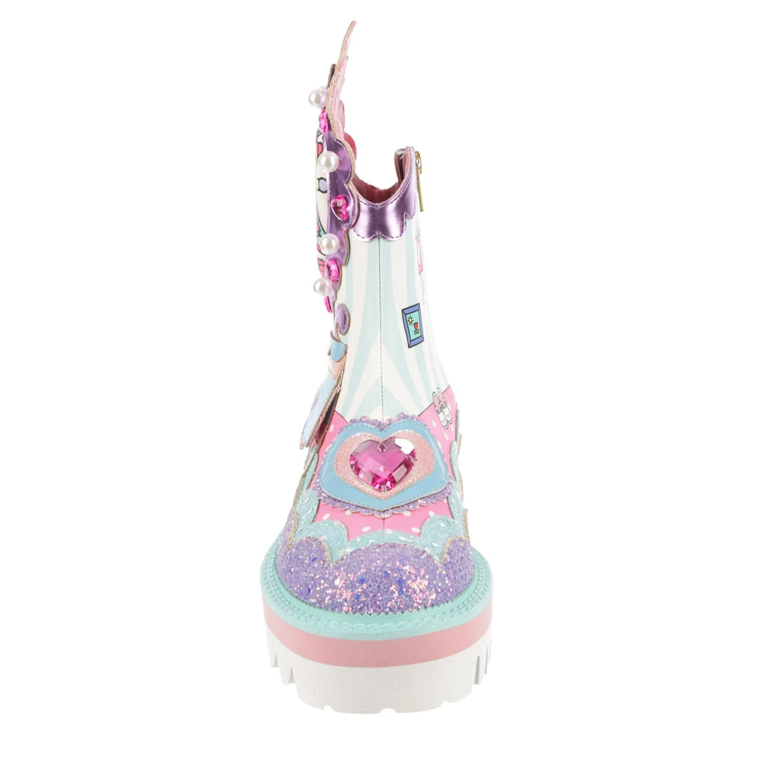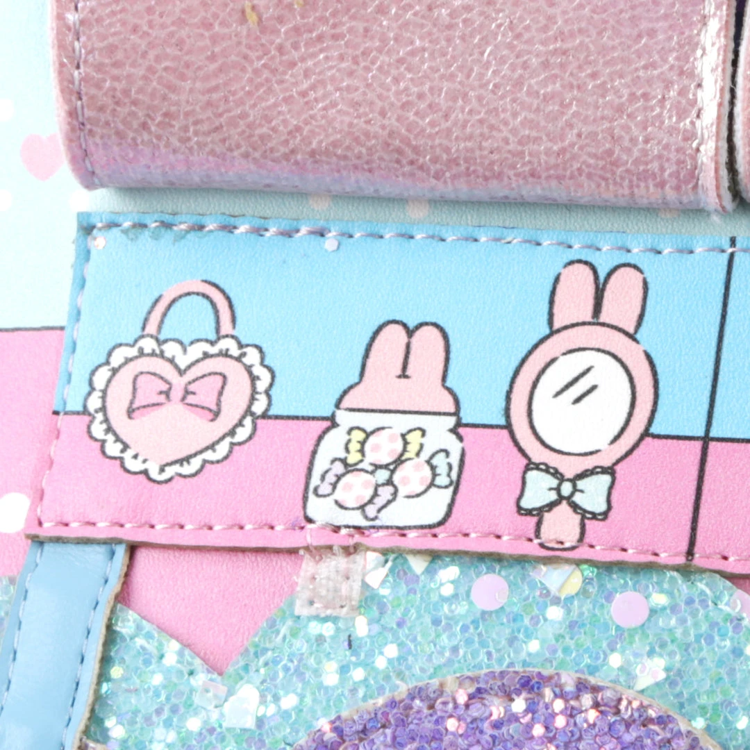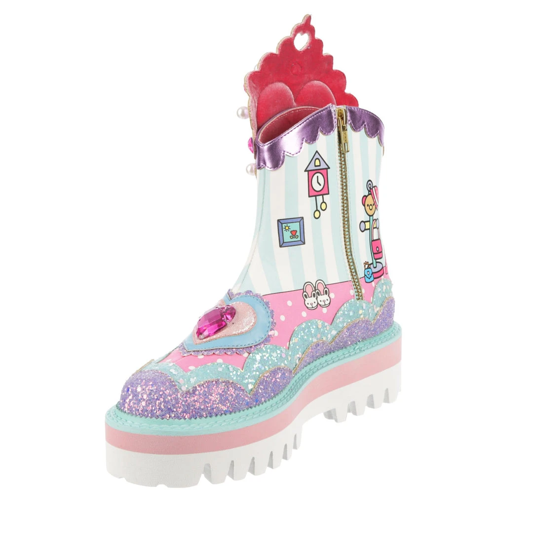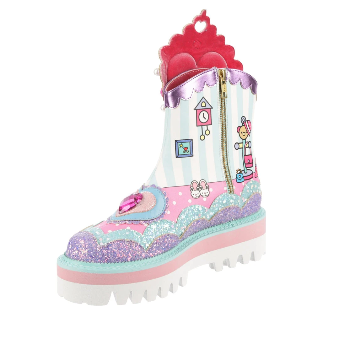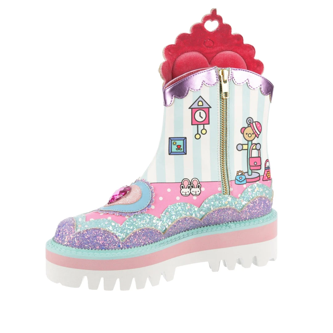 Getting ready can be so much fun, especially with a friend! These adorable boots feature Hello Kitty and My Melody in heart-shaped mirrors, surrounded by stunning pearls and gems! Open up the drawers underneath to see a cute surprise! Swathed in pastel colours and metallic textures – these statement boots aren’t to be missed!