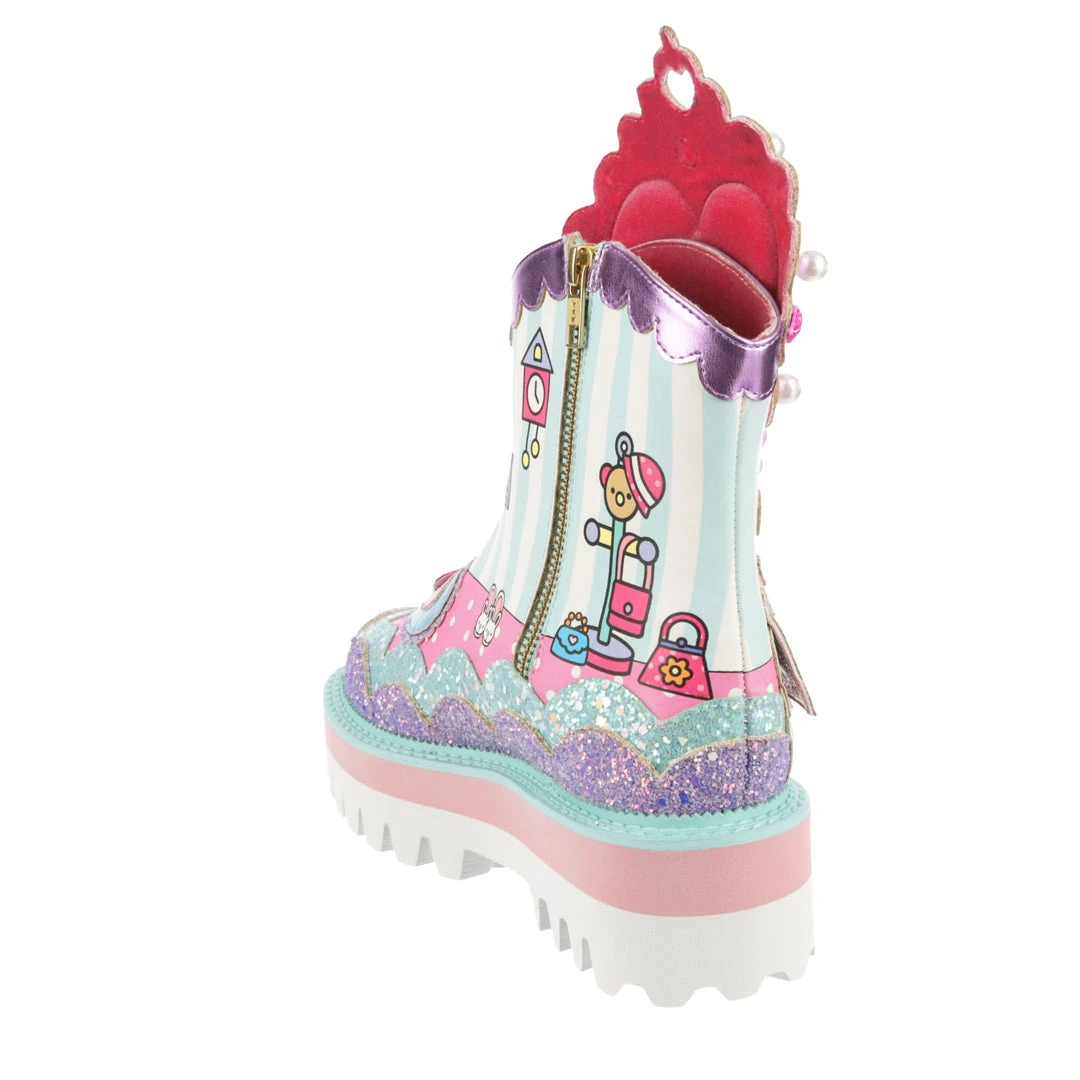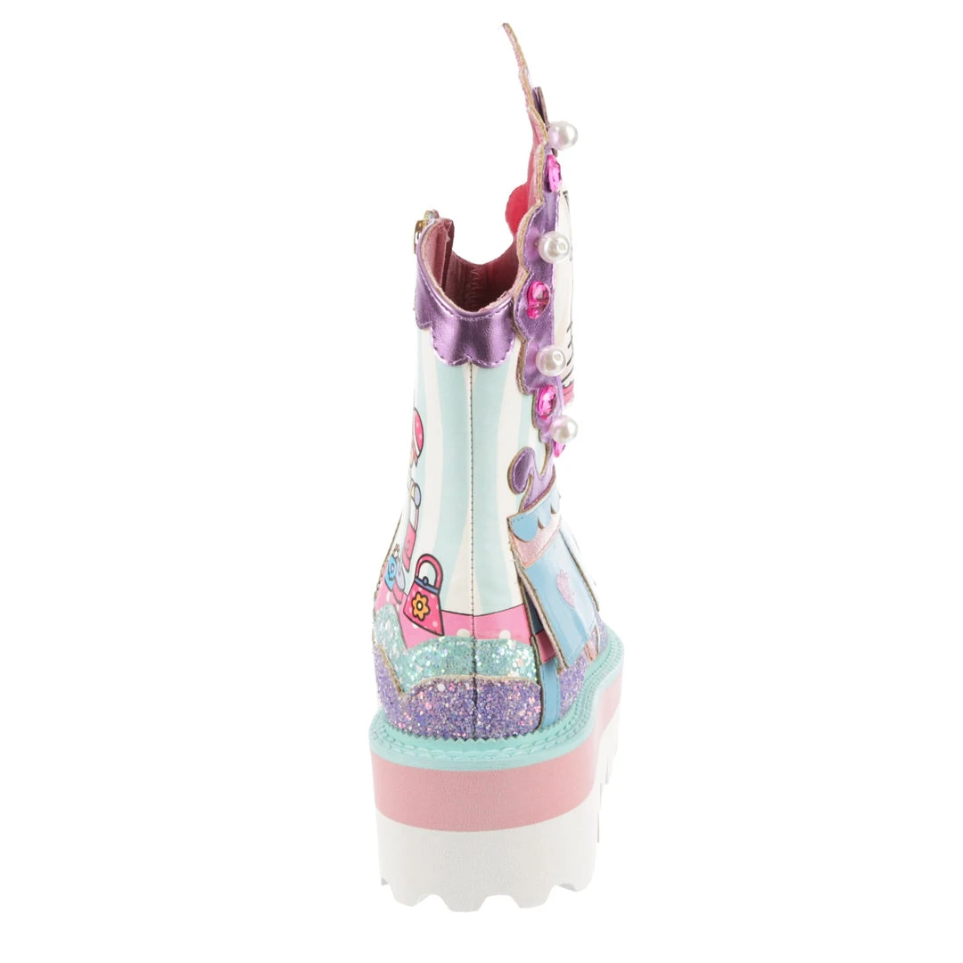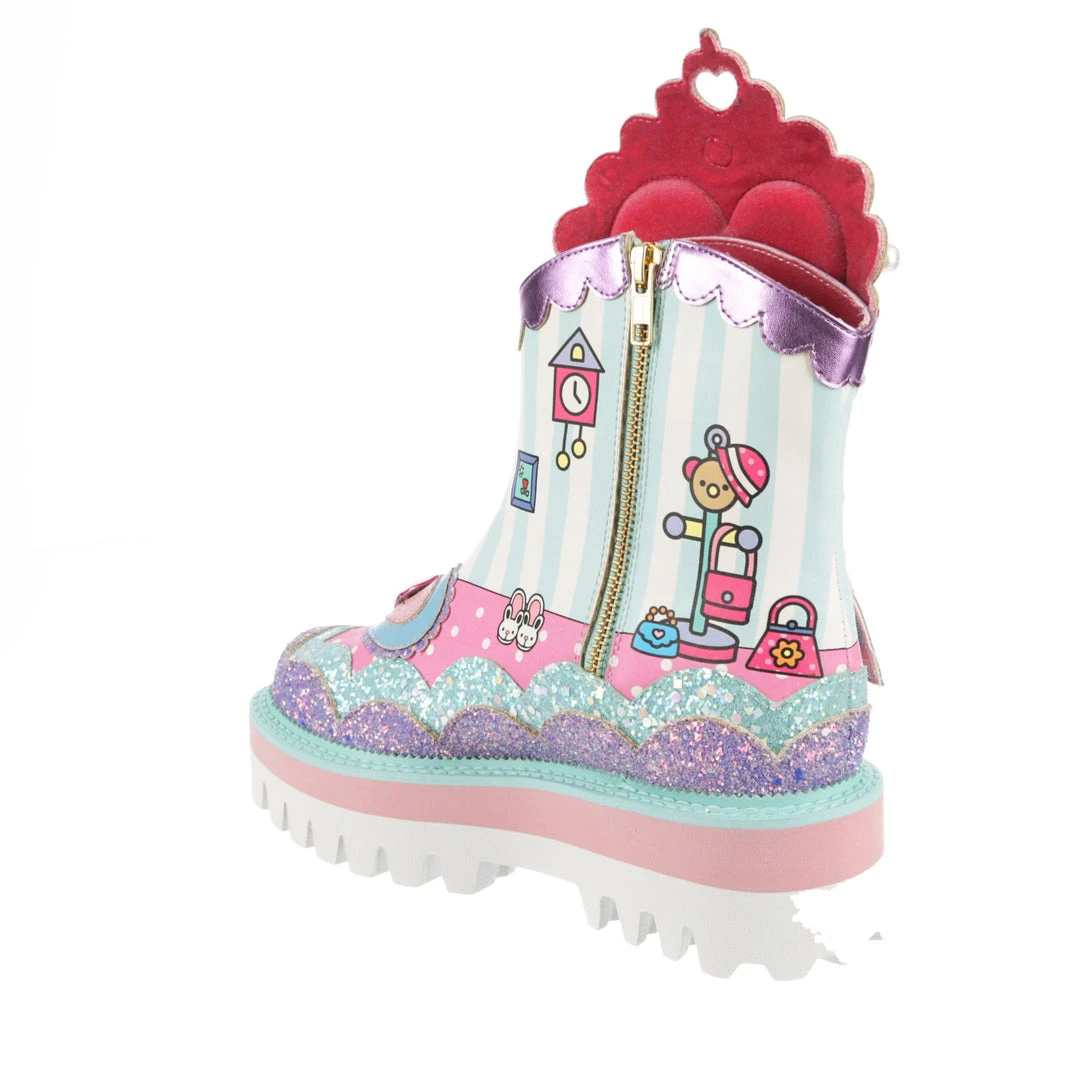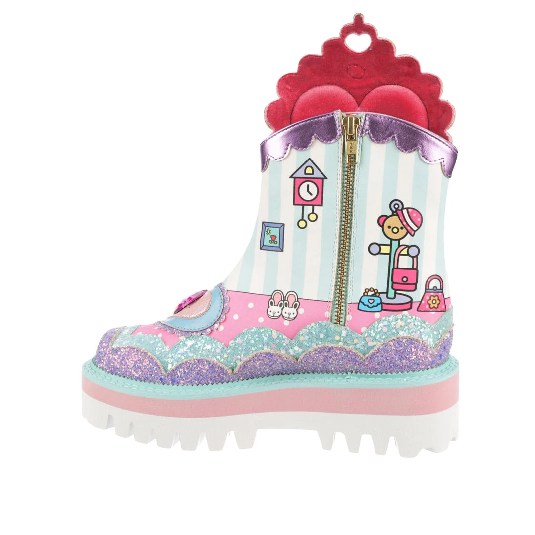 Getting ready can be so much fun, especially with a friend! These adorable boots feature Hello Kitty and My Melody in heart-shaped mirrors, surrounded by stunning pearls and gems! Open up the drawers underneath to see a cute surprise! Swathed in pastel colours and metallic textures – these statement boots aren’t to be missed!
