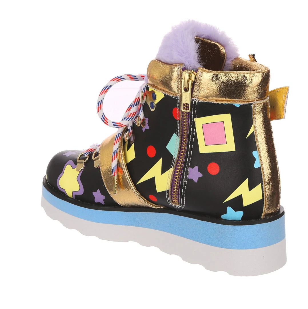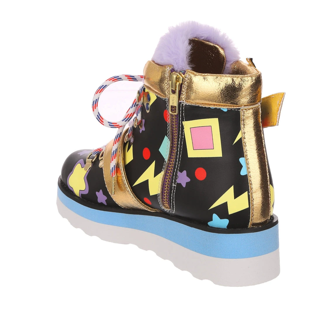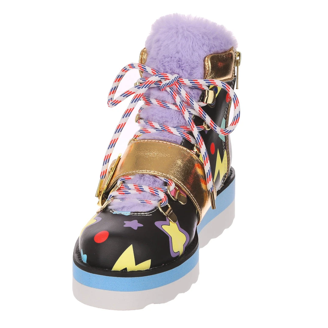 Who is ready for a Pokémon party? These shoes certainly are! Featuring an eye-catching multicoloured retro graphic print, metallic gold details, and a fluffy tongue, they aren’t your average boot. Pikachu is in pride of place on the side, sure to have you smiling all day long! The comfy stacked sole is practical and wearable, and the shoes are fastened with an awesome multicoloured lace – new faves alert!