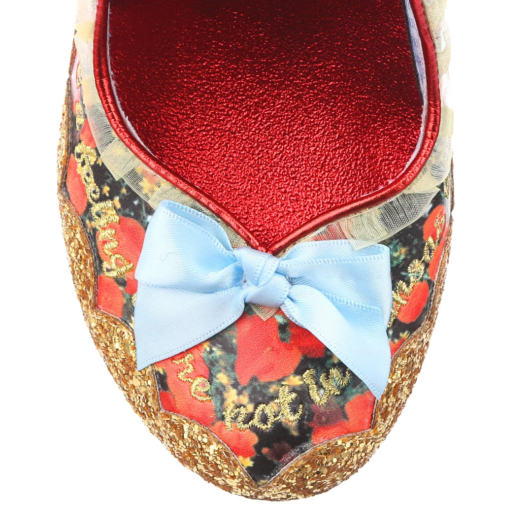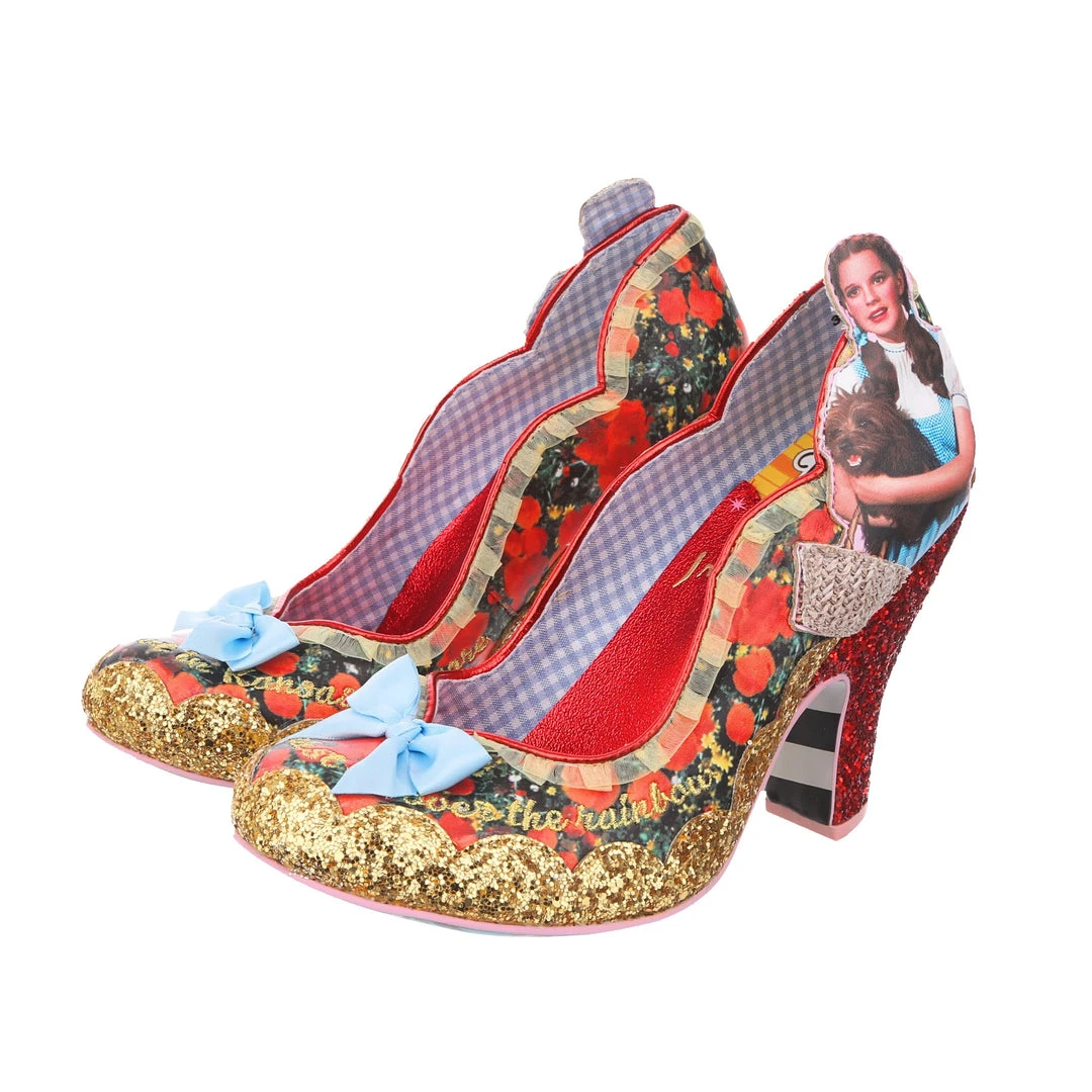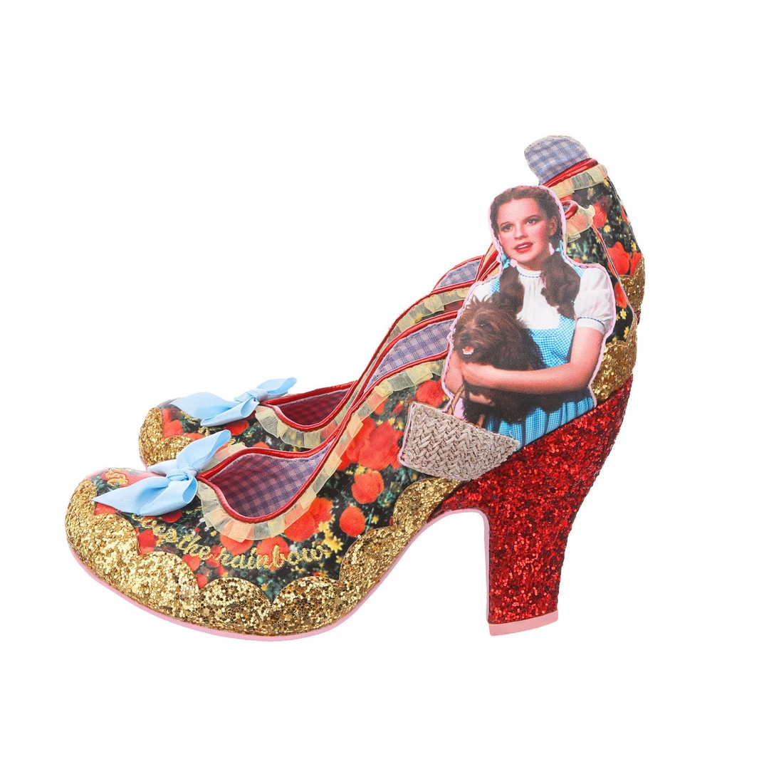 Are you feeling sleepy? Maybe its just these dreamy heels! Featuring a striking print of the iconic poppy field, these courts are bursting with character! A print of Dorothy and Toto™ is paired with embroidered phrases from the movie and an adorable baby blue bow to the toe. Sure to show the world that you love the Wizard of Oz™ but also have mega style!