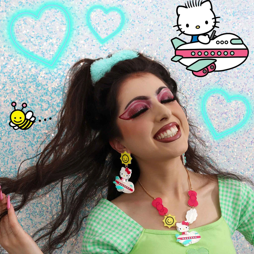 Fly through your dreams with this adorable necklace from our Hello Kitty and Friends collection! Stunning details of bows, a cloud, the sun and, of course, Hello Kitty sitting in the middle riding on a plane! Super cute and sure to make you smile! Perfect to pair with our Hello Kitty and Friends collection or to wear alone!
